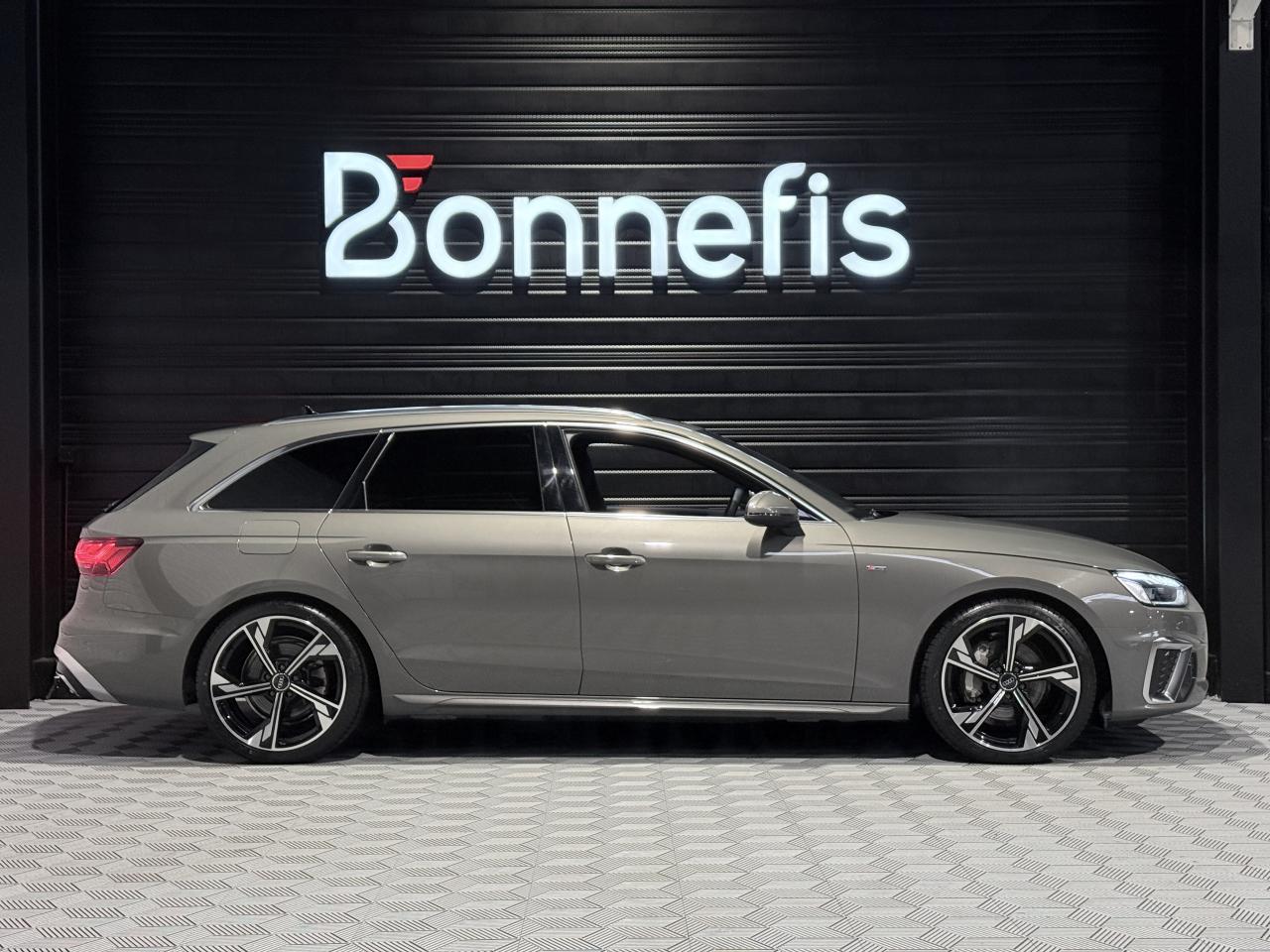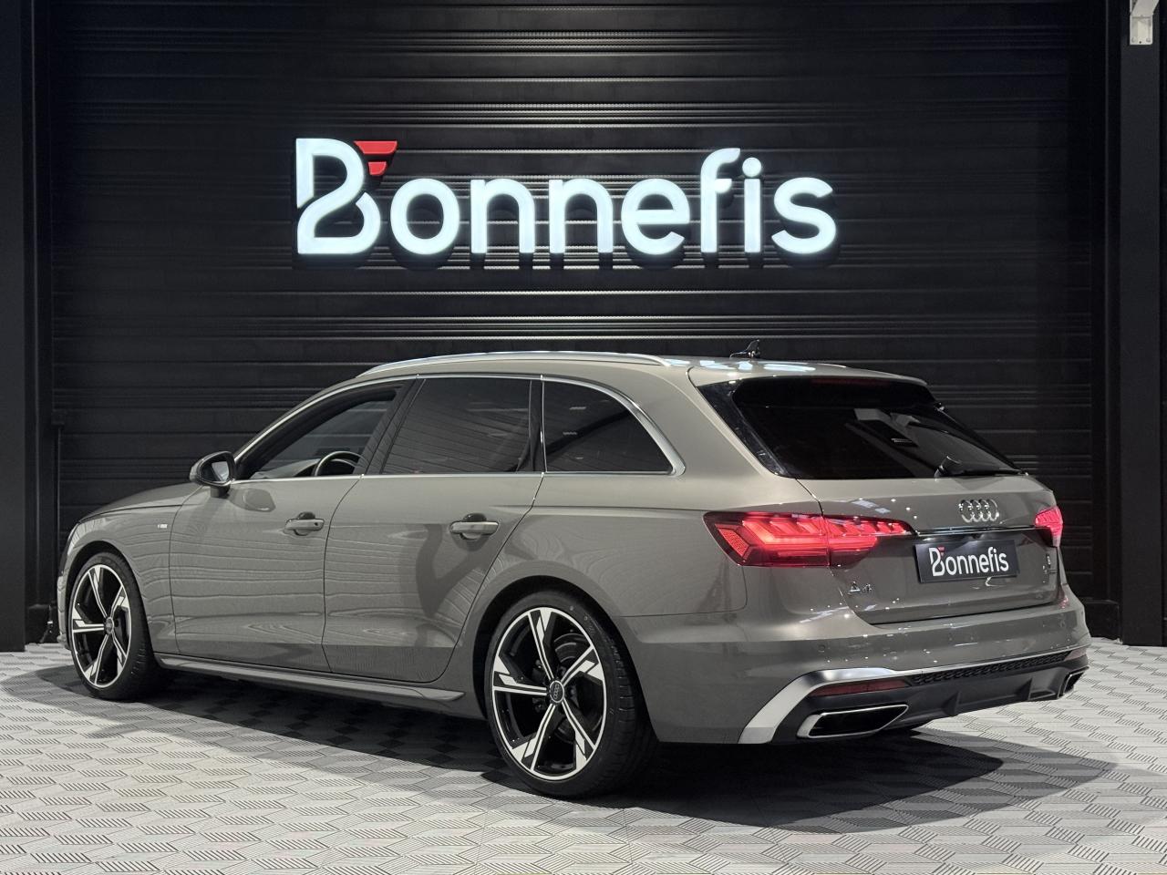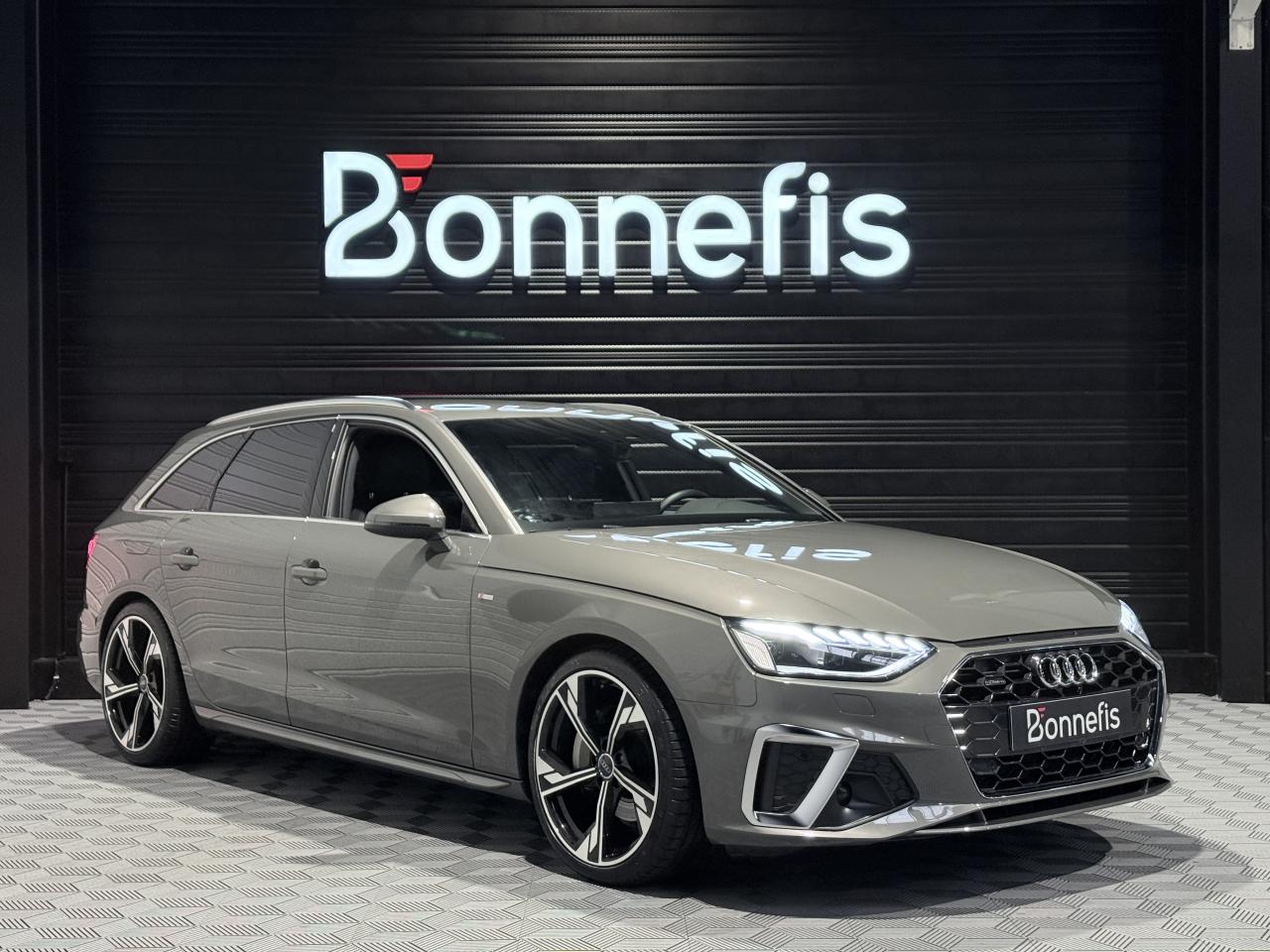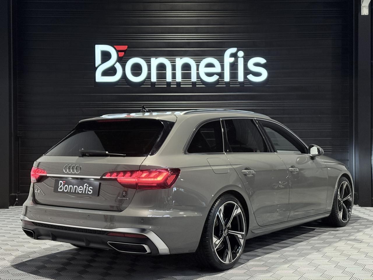 Audi A4 Avant 40 TDI 204 Ch S Tronic S Line Quattro, break, extérieur gris métallisée ( gris Chronos )( 883 € ), intérieur sellerie combinaison Cuir/Séquence S line, 11 cv, 5 portes, première mise en circulation le 26/08/2024.