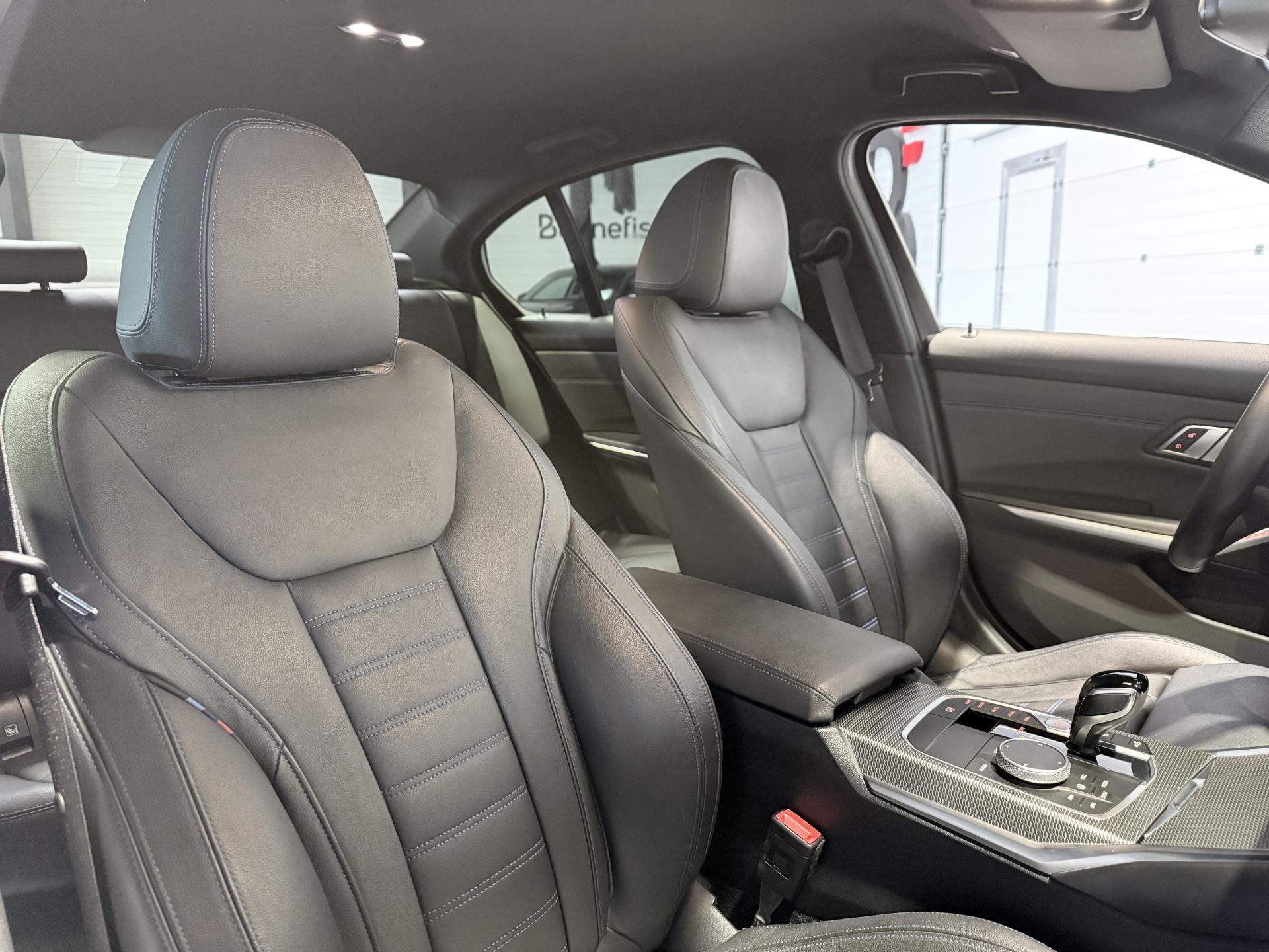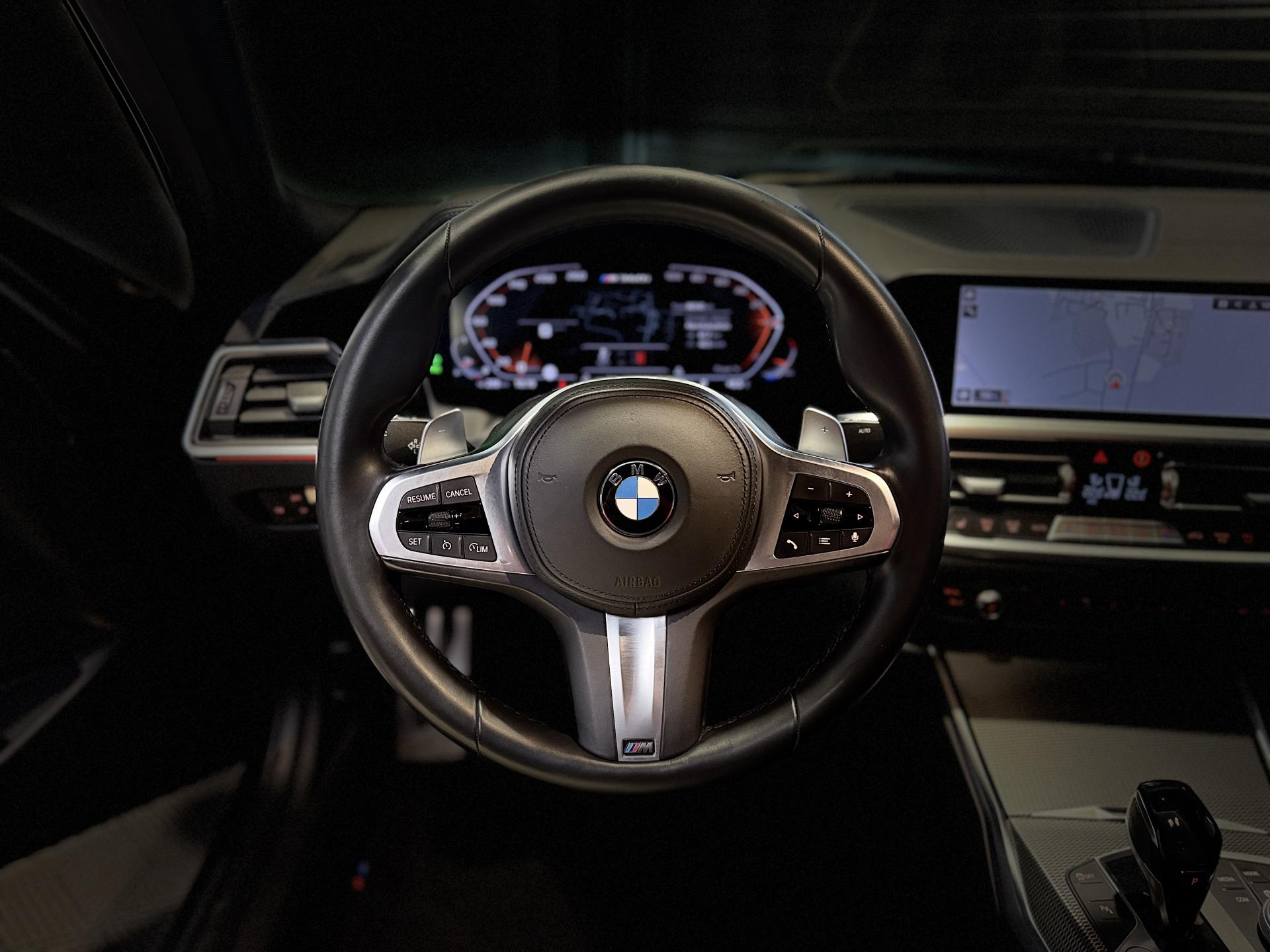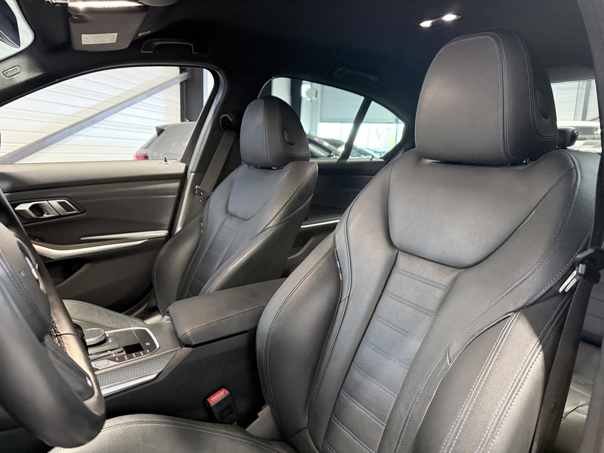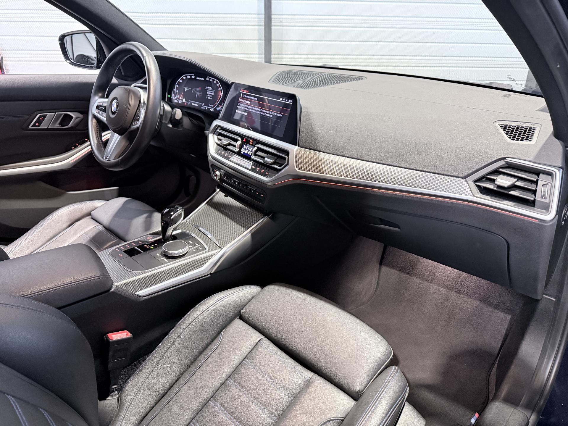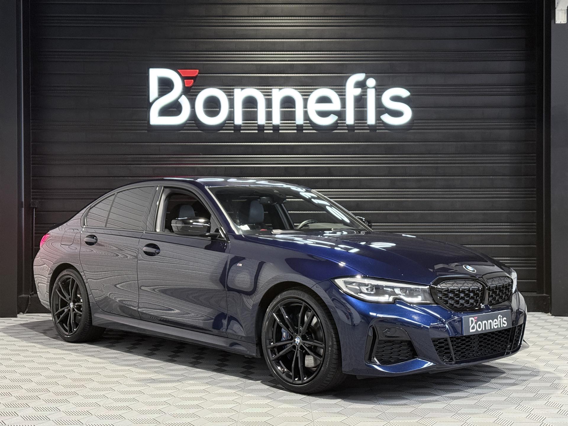 BMW SERIE 3 Berline M340i xDrive 374Ch BVA8 G20, extérieur bleu métallisée ( Tansanitblau Individual )( 1 791 EUR ), intérieur sellerie Cuir "Vernasca" Schwarz avec surpiqûres Bleues / Teinte d'habitacle Schwarz ( 1 541 EUR ), 26 cv, 4 portes, première mise en circulation le 11/12/2020.