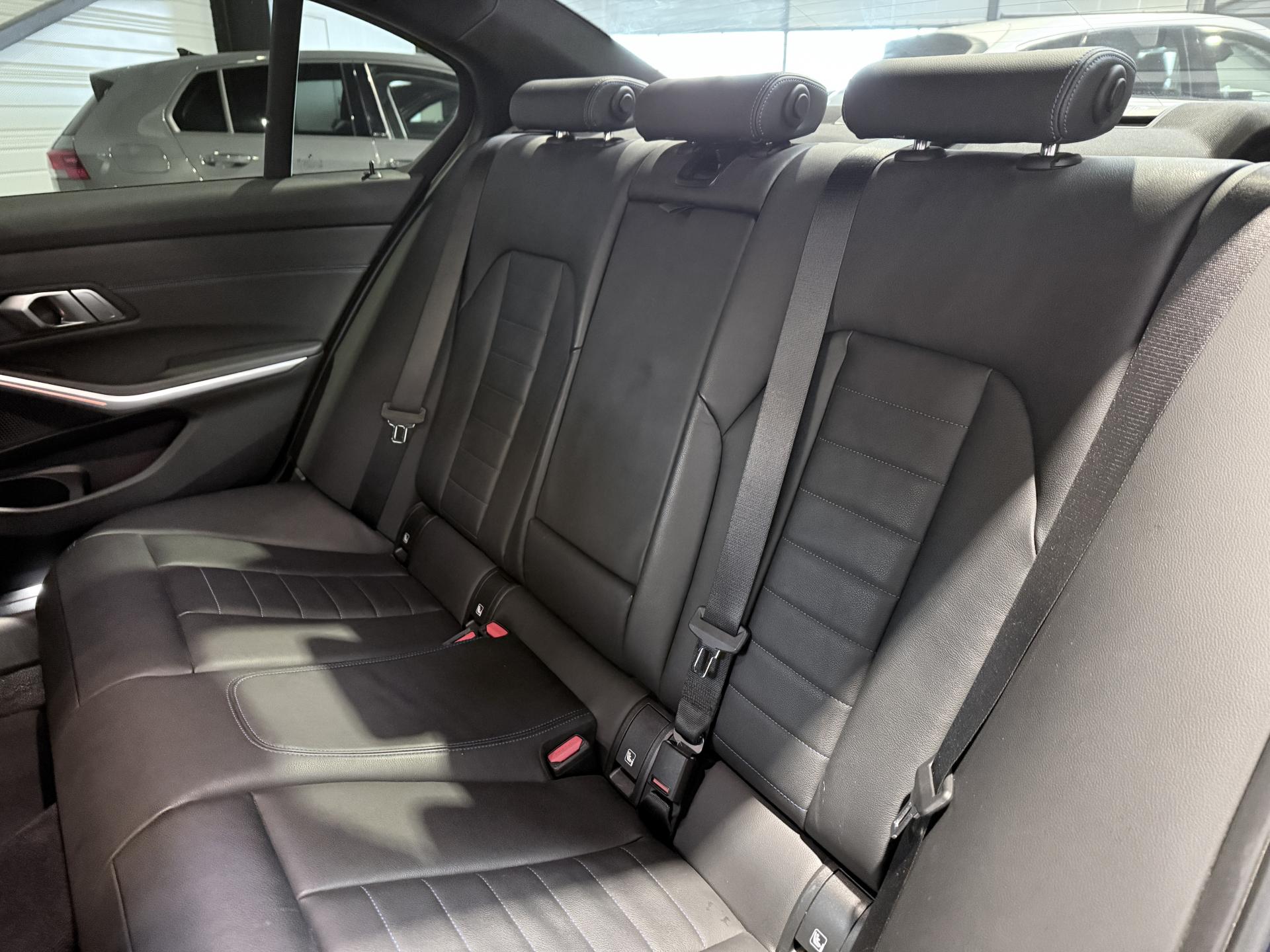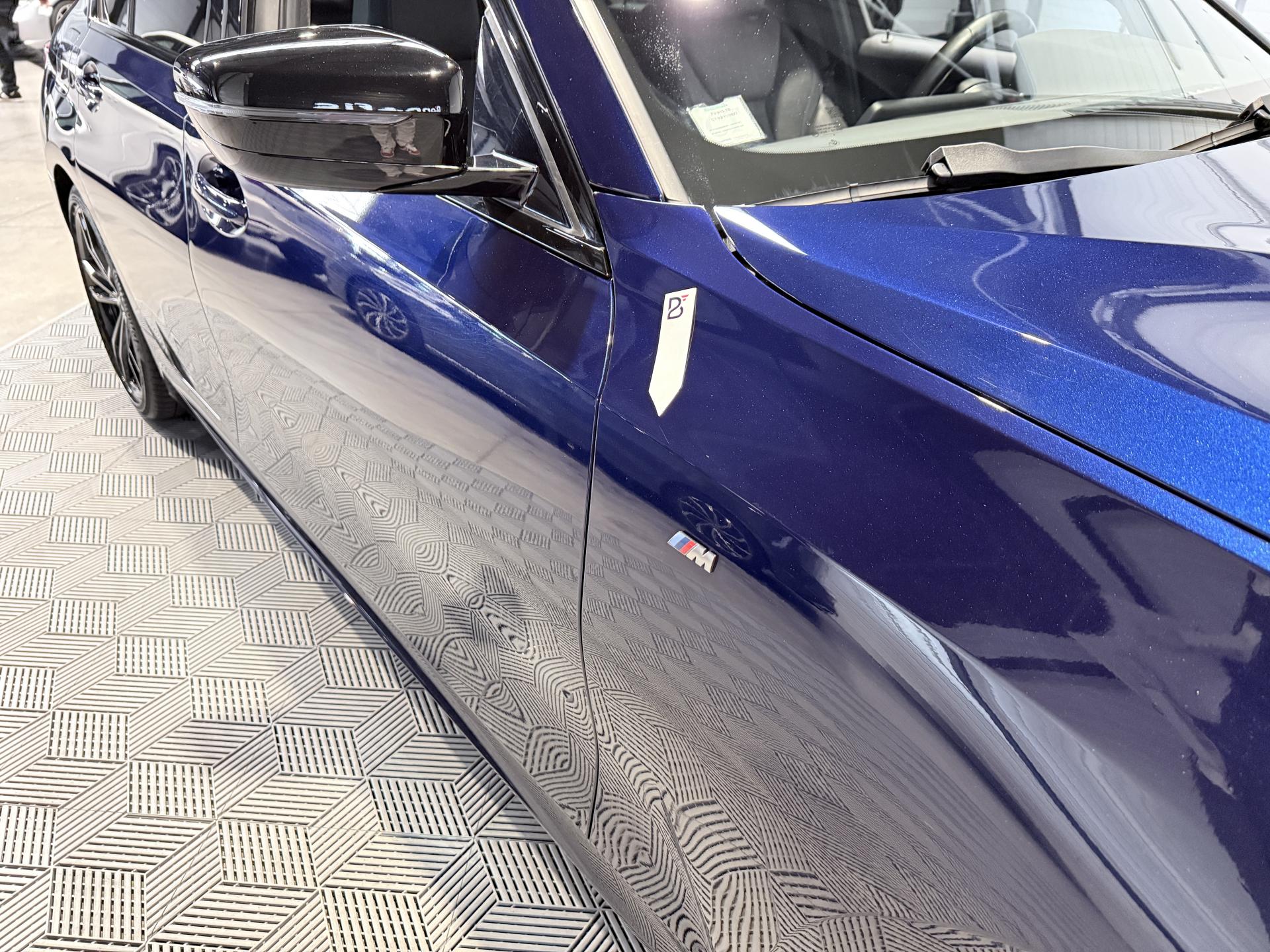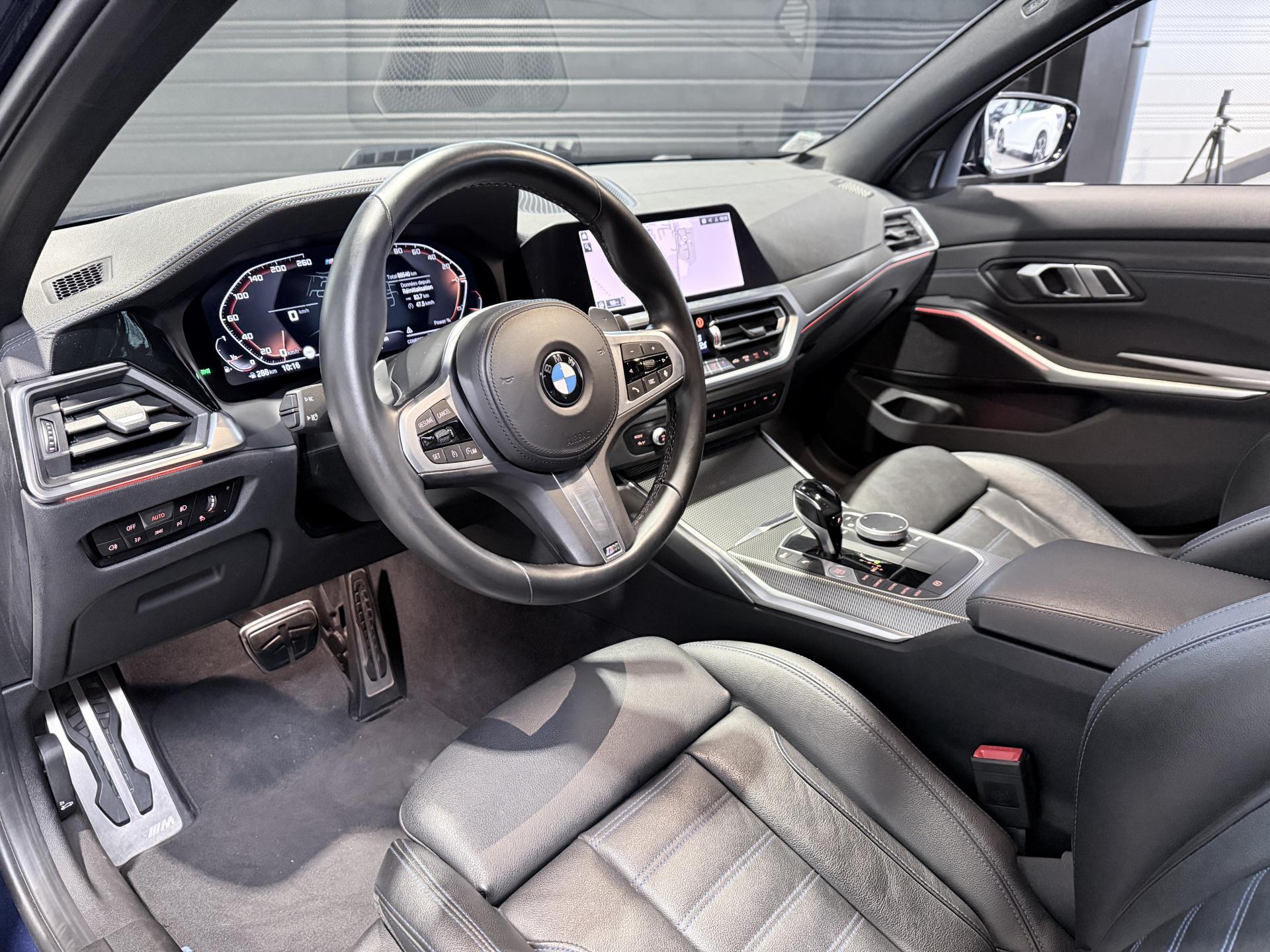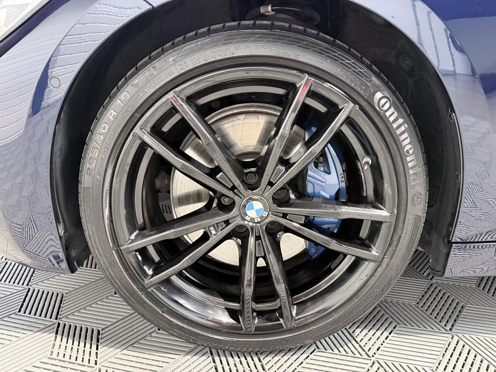 BMW SERIE 3 Berline M340i xDrive 374Ch BVA8 G20, extérieur bleu métallisée ( Tansanitblau Individual )( 1 791 EUR ), intérieur sellerie Cuir "Vernasca" Schwarz avec surpiqûres Bleues / Teinte d'habitacle Schwarz ( 1 541 EUR ), 26 cv, 4 portes, première mise en circulation le 11/12/2020.