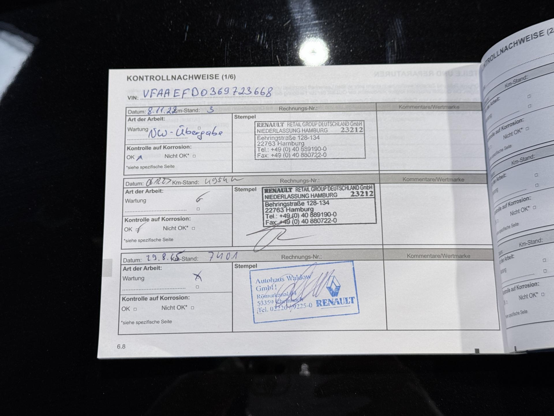 - 1er entretien fait le 08/11/2022 à 3Km chez Renault. ( Contrôle à la livraison )