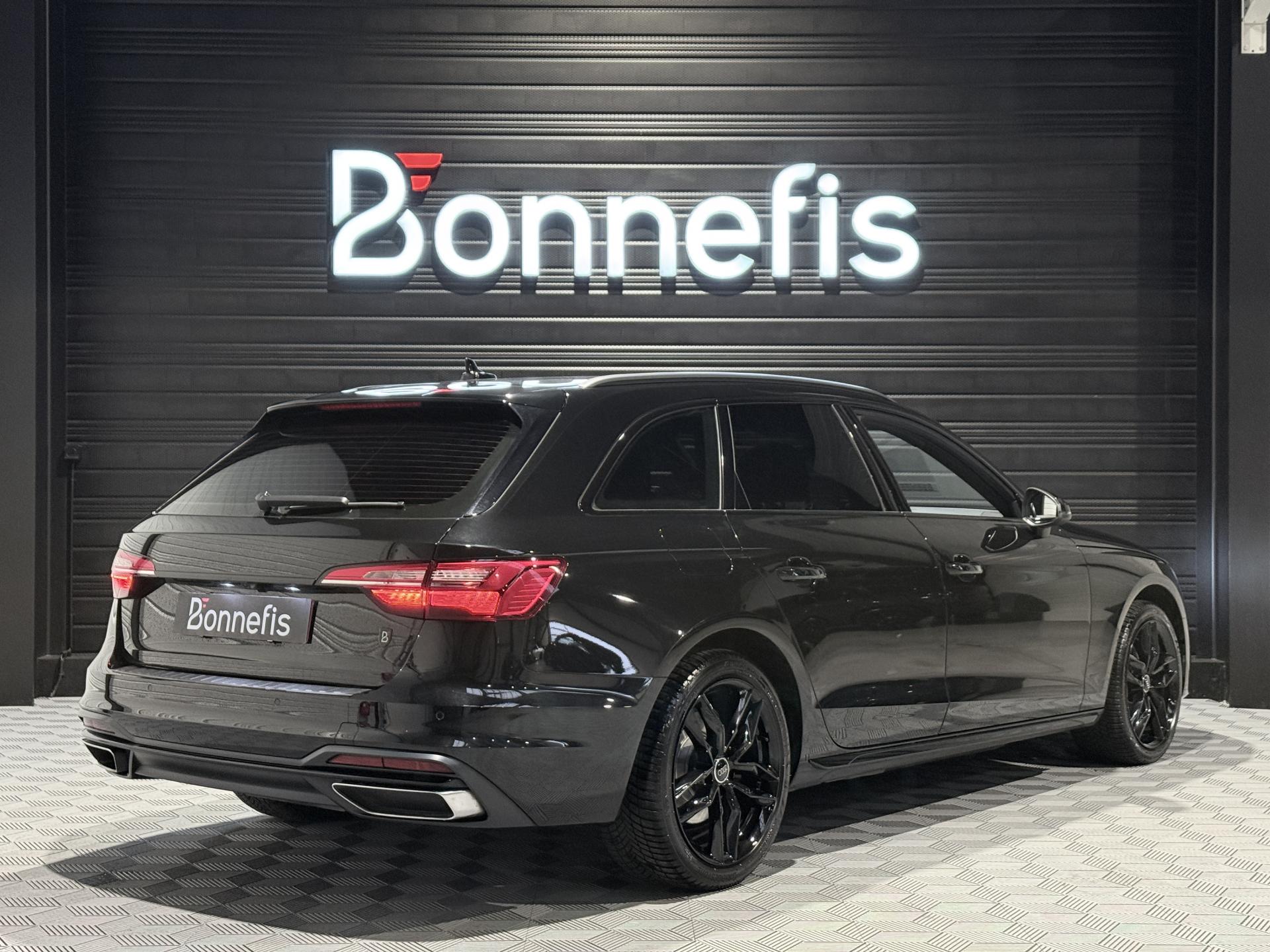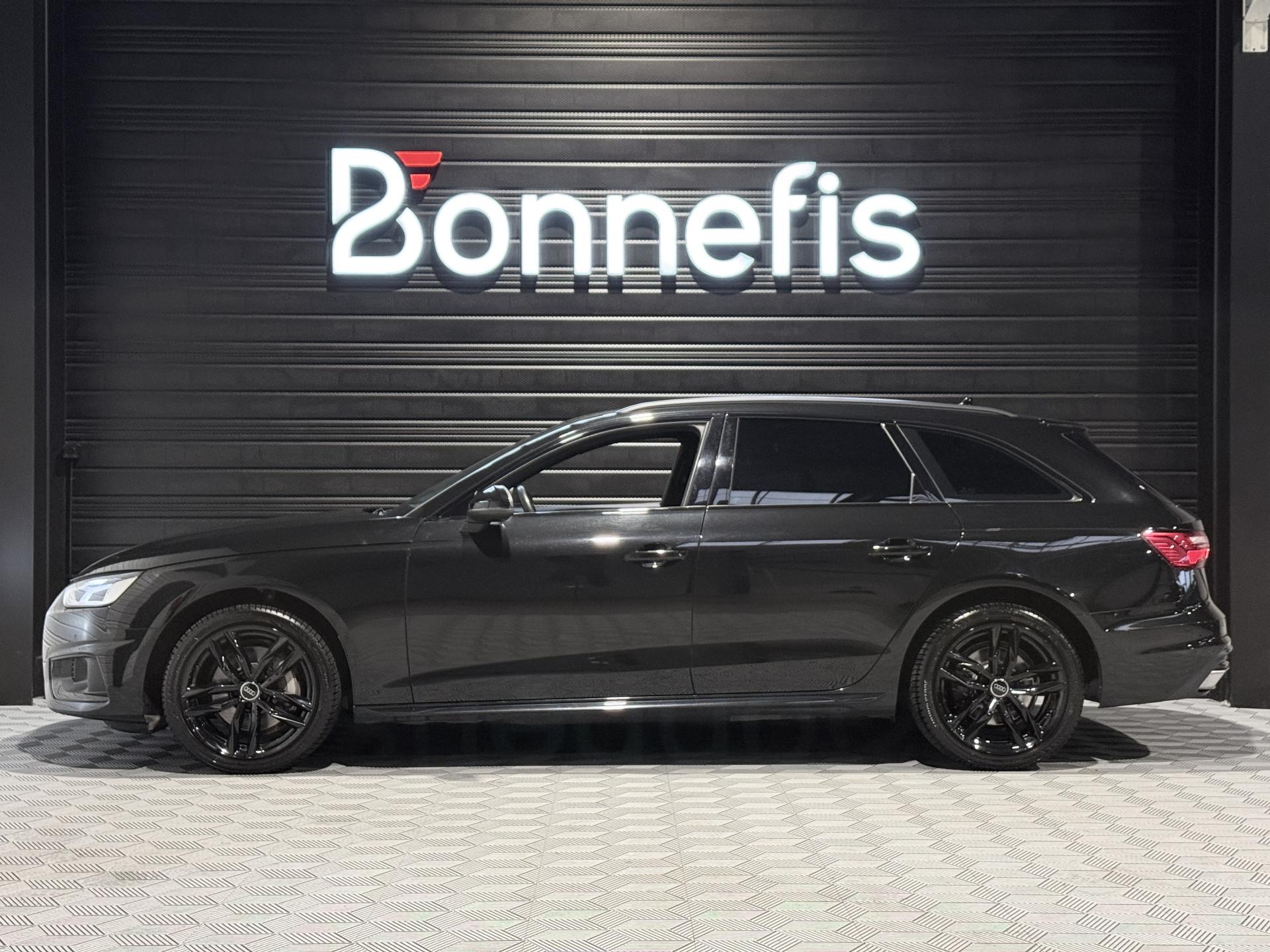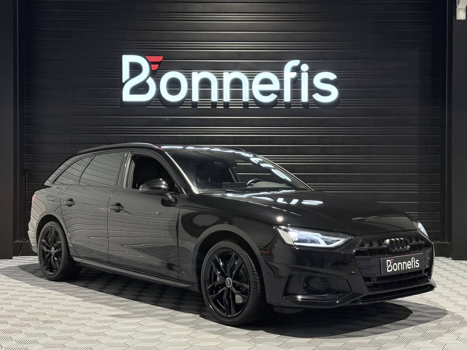 Audi A4 Avant 40 TDI Design 2.0 190 Ch S Tronic, break, extérieur noir métallisée ( noir Mythic )( 883 € ), intérieur noir Cuir / similicuir ( 1 091 € ), 10 cv, 5 portes, première mise en circulation le 12/02/2020.
