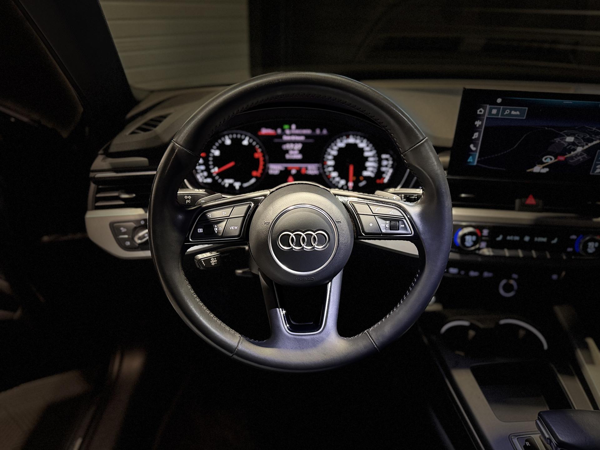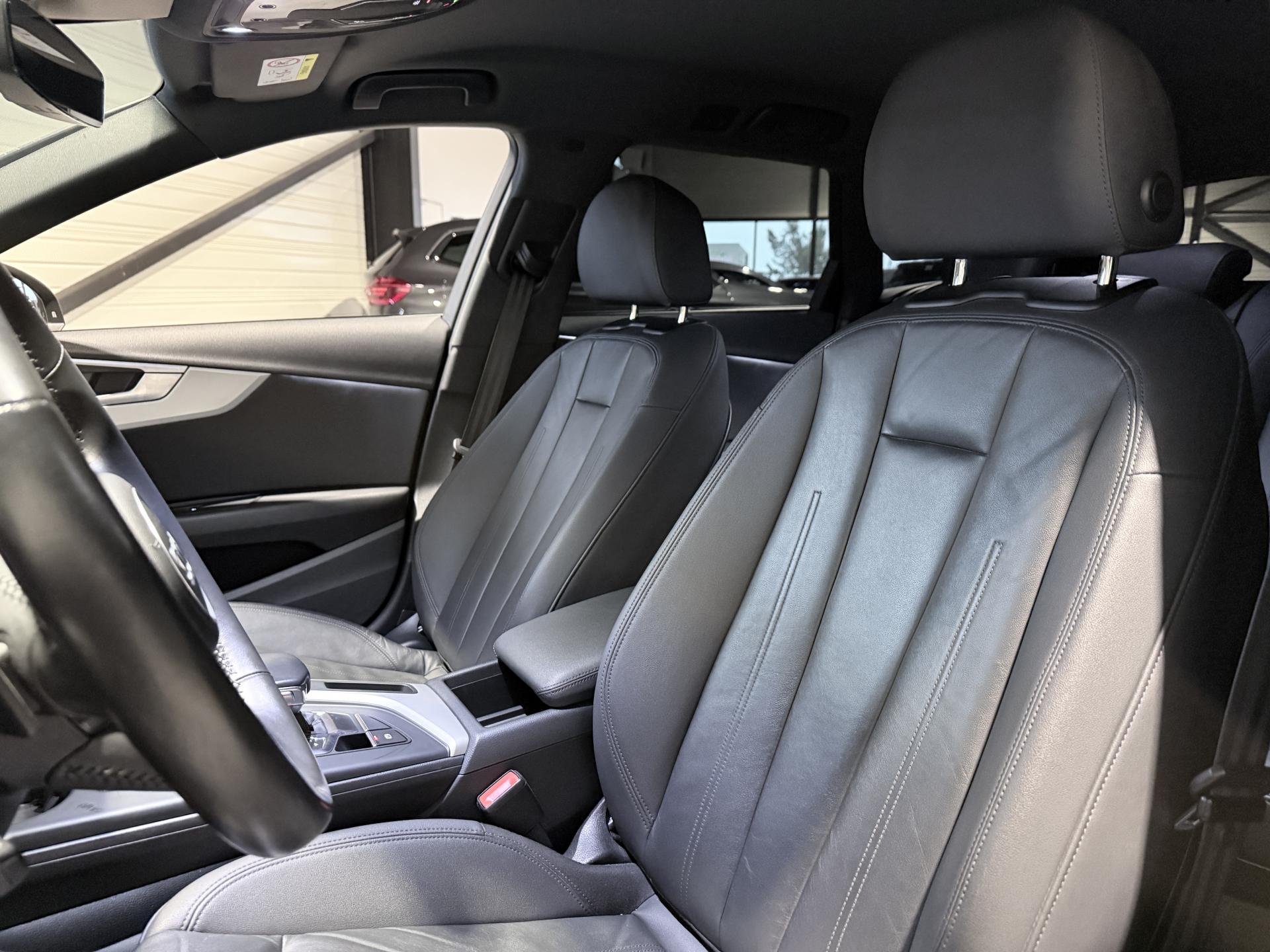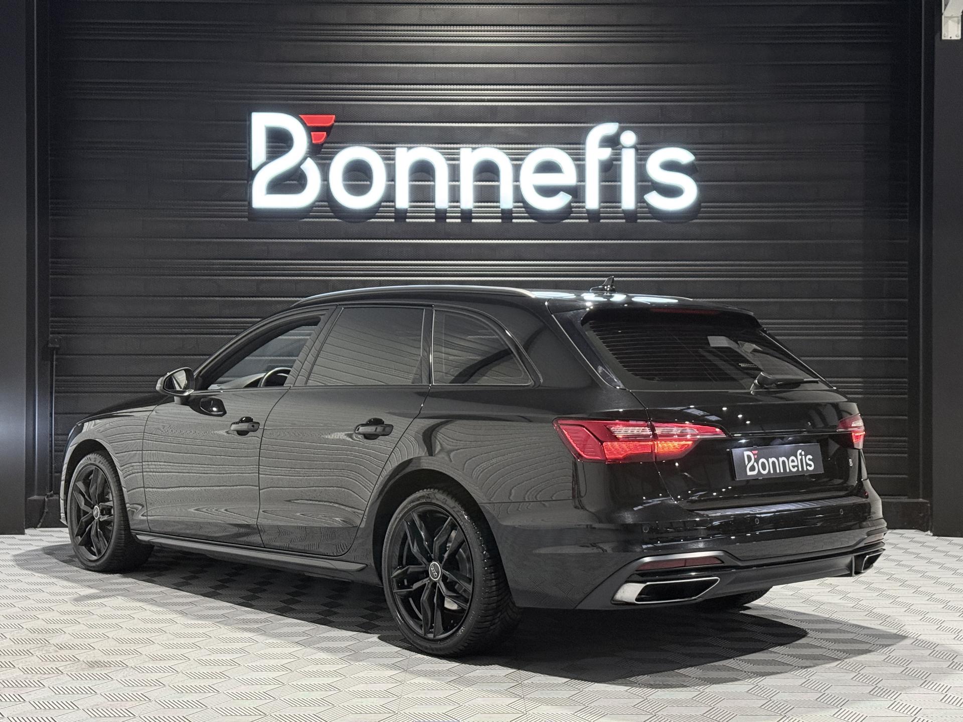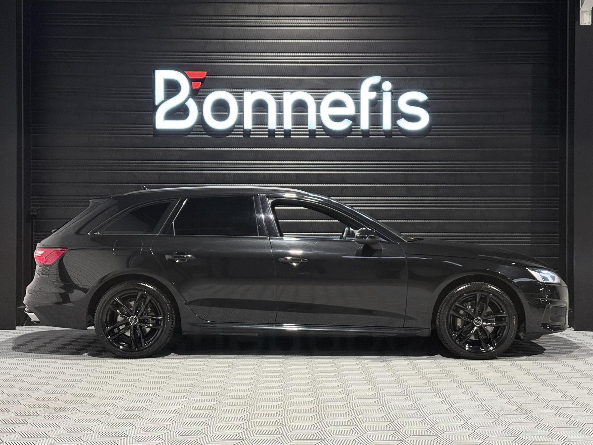 Audi A4 Avant 40 TDI Design 2.0 190 Ch S Tronic, break, extérieur noir métallisée ( noir Mythic )( 883 € ), intérieur noir Cuir / similicuir ( 1 091 € ), 10 cv, 5 portes, première mise en circulation le 12/02/2020.