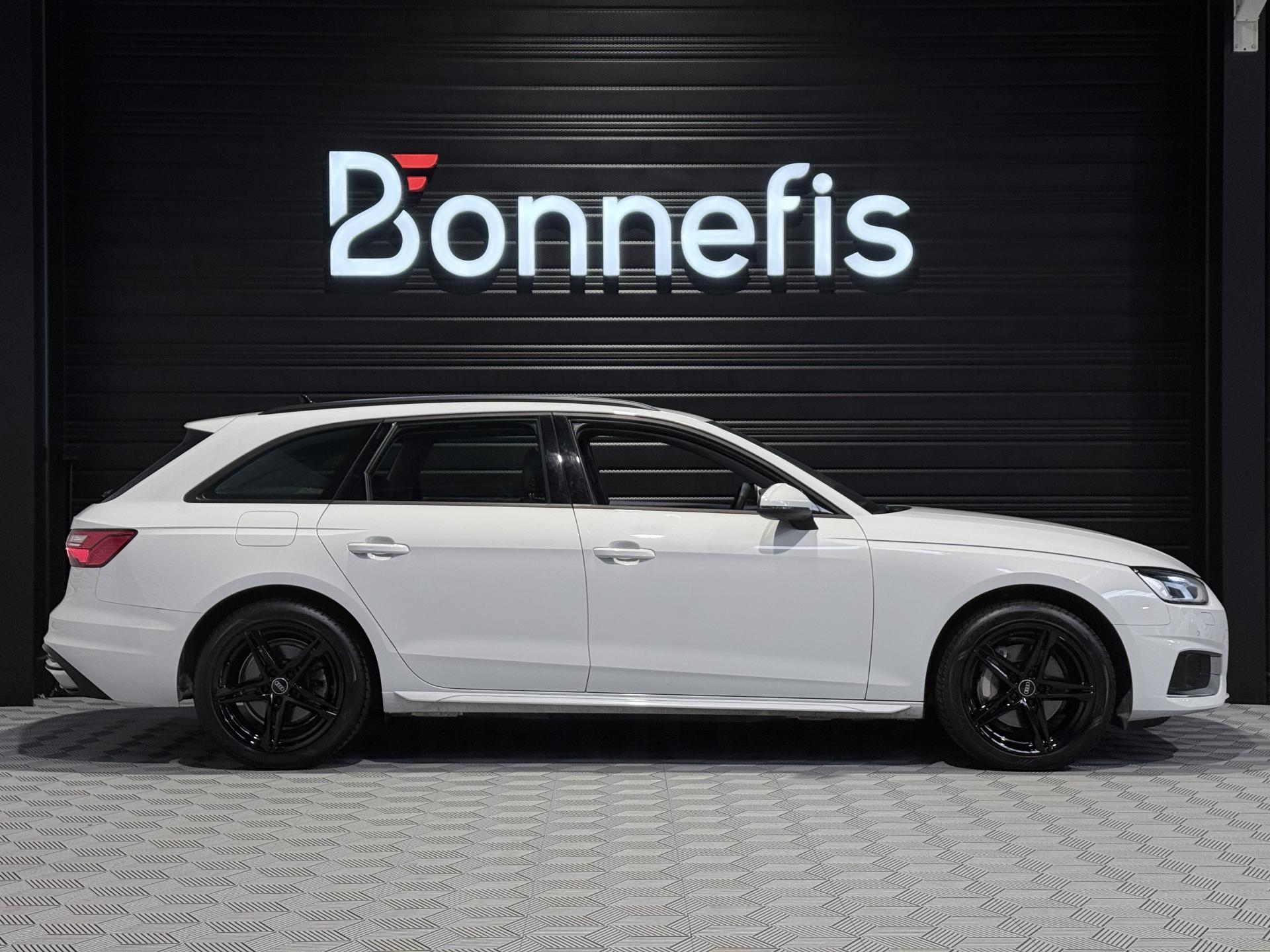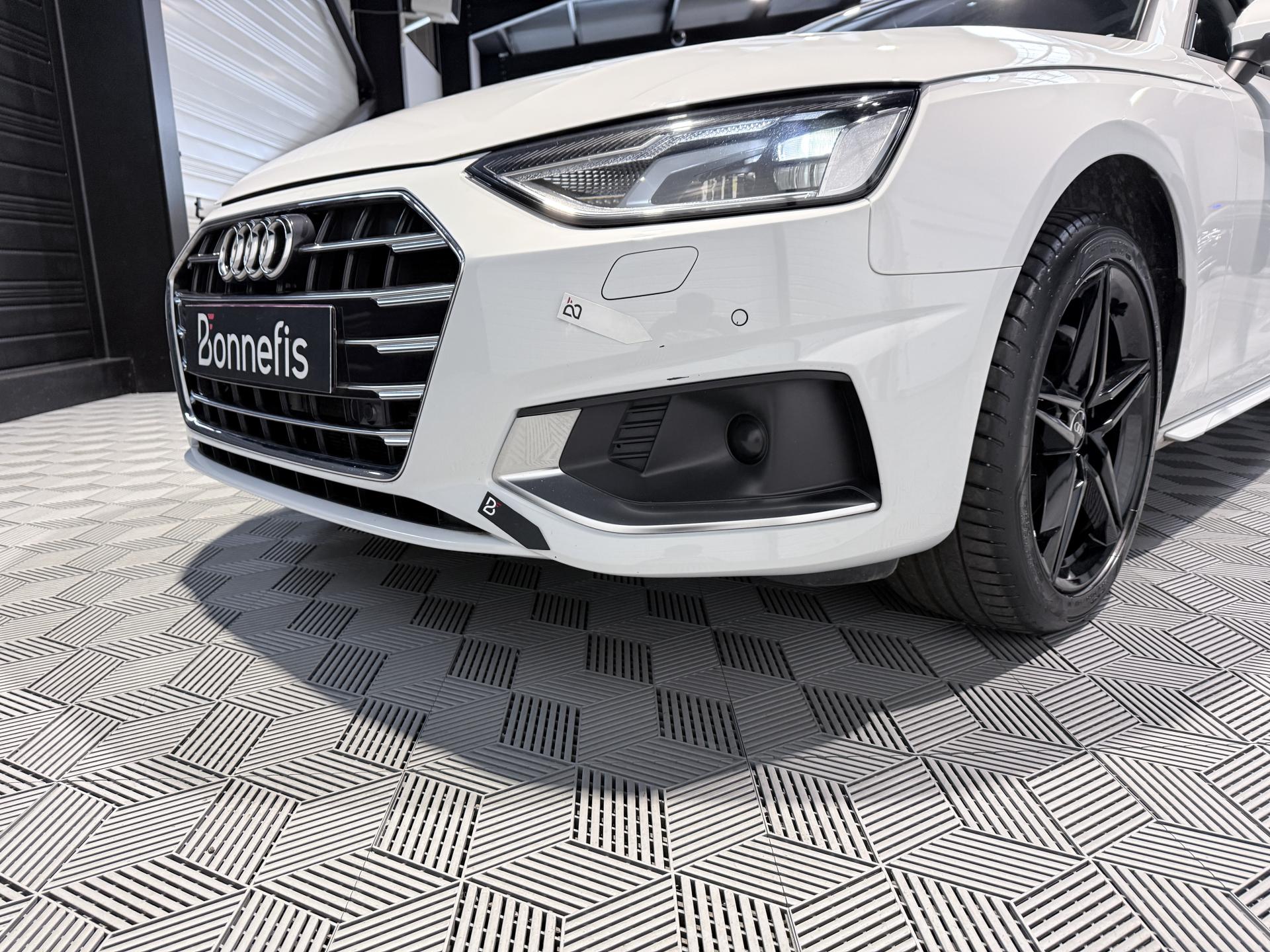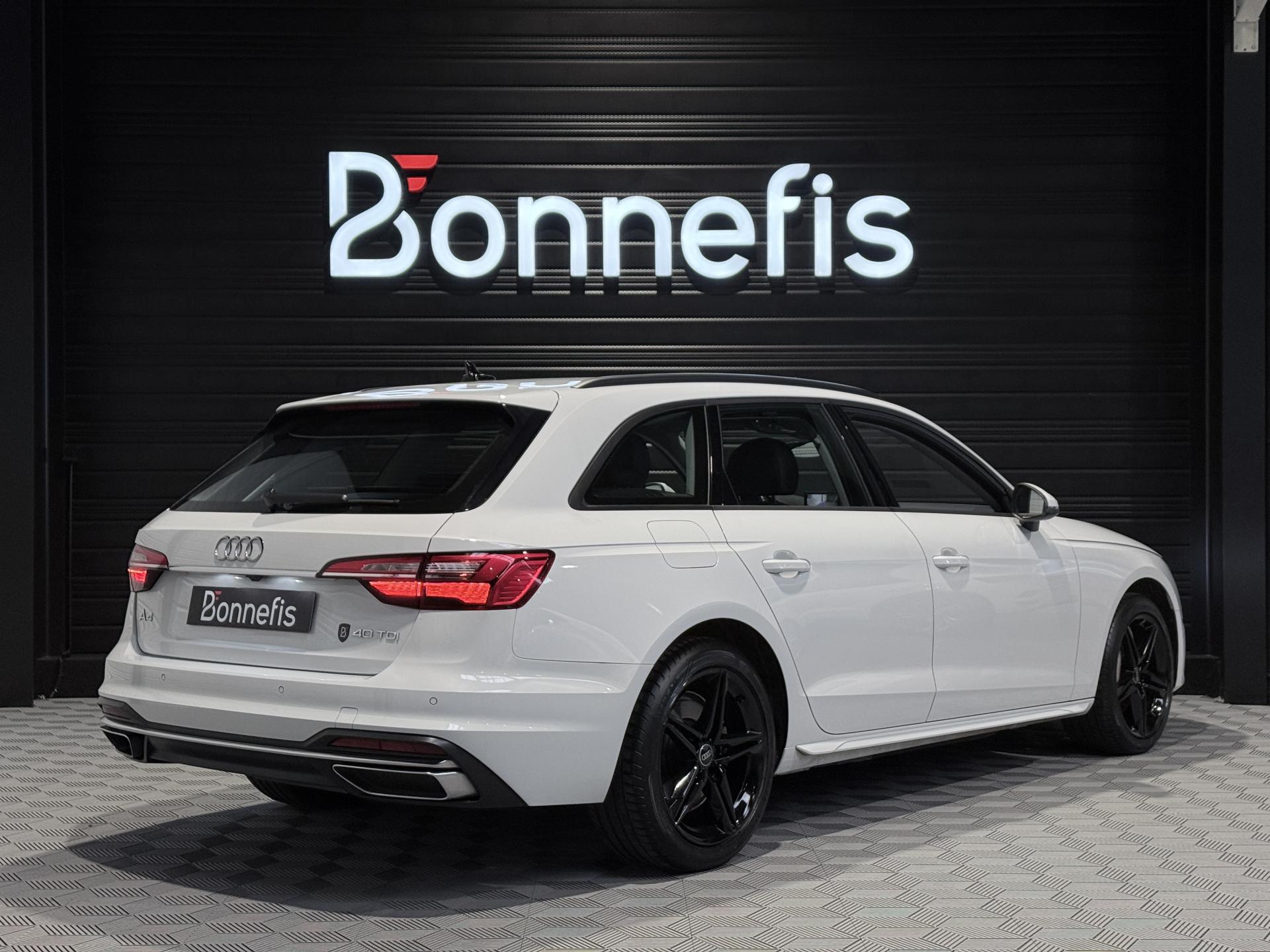 AUDI A4 AVANT 40 TDI 204Ch BVA S tronic 7, extérieur Blanc métallisée ( blanc Glacier ) ( 883 EUR ), intérieur Noir ( sellerie combinaison Cuir/similicuir ) ( 1 091 EUR ), 11 cv, 5 portes, première mise en circulation le 31/01/2023.