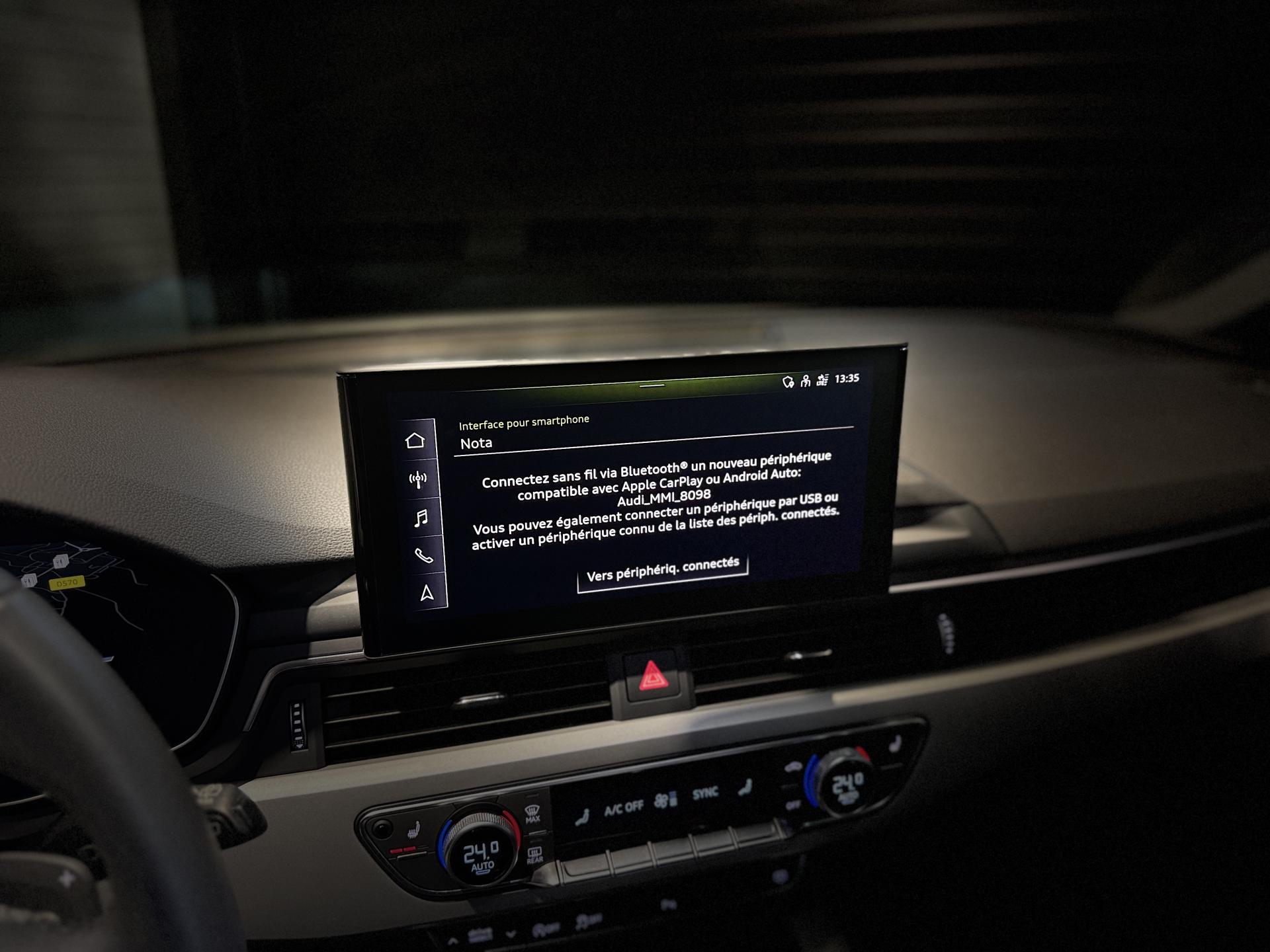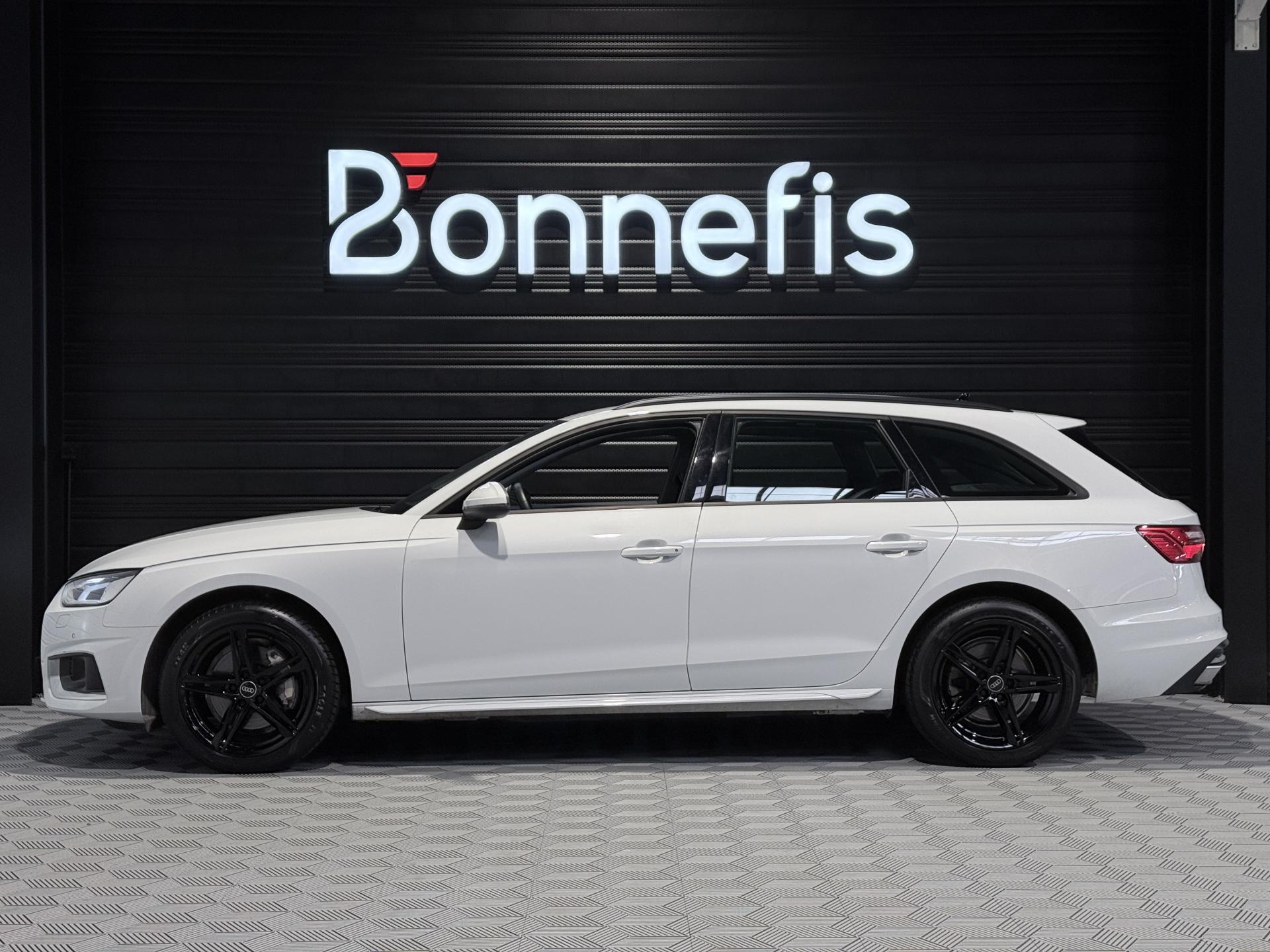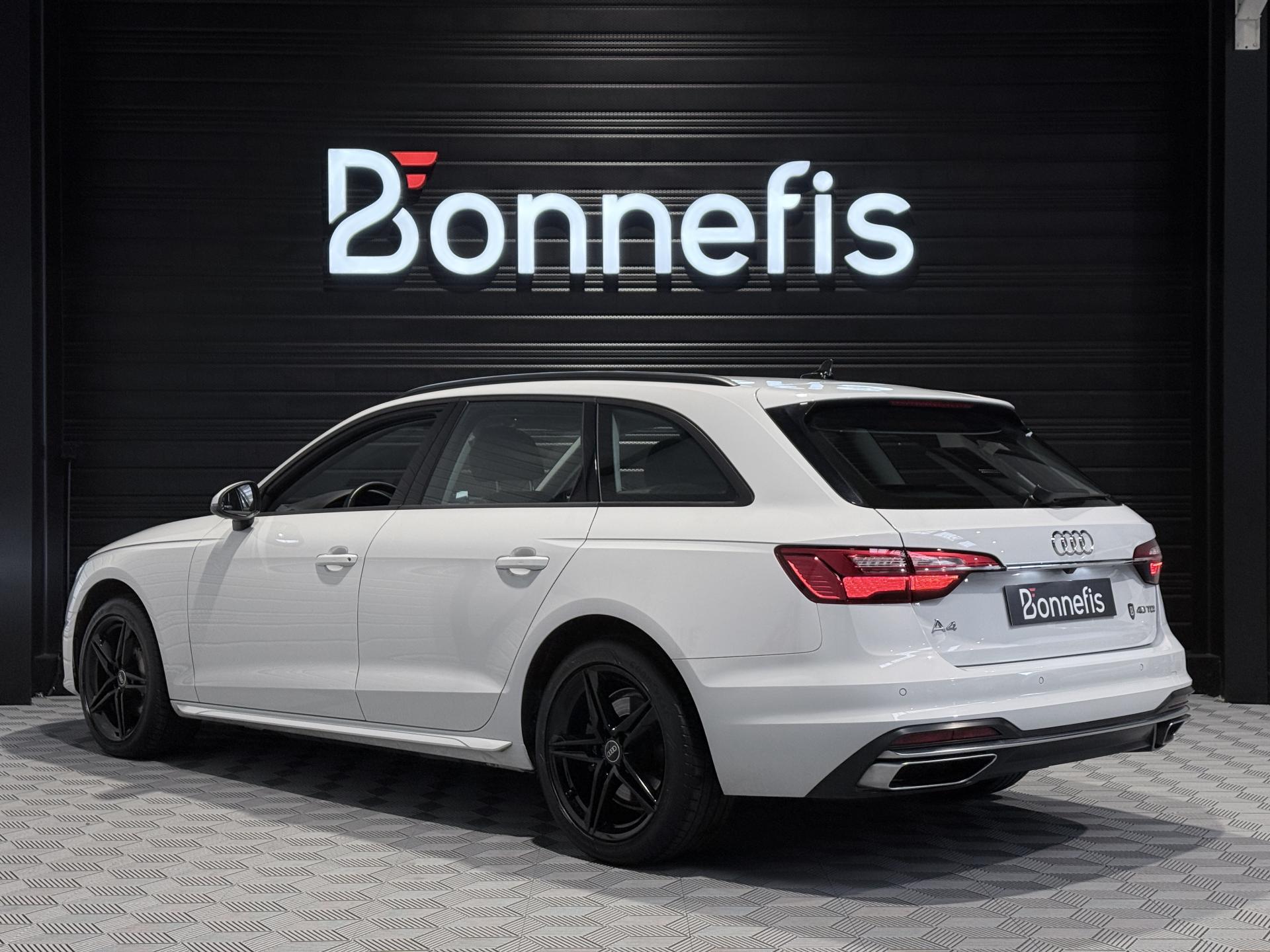 AUDI A4 AVANT 40 TDI 204Ch BVA S tronic 7, extérieur Blanc métallisée ( blanc Glacier ) ( 883 EUR ), intérieur Noir ( sellerie combinaison Cuir/similicuir ) ( 1 091 EUR ), 11 cv, 5 portes, première mise en circulation le 31/01/2023.