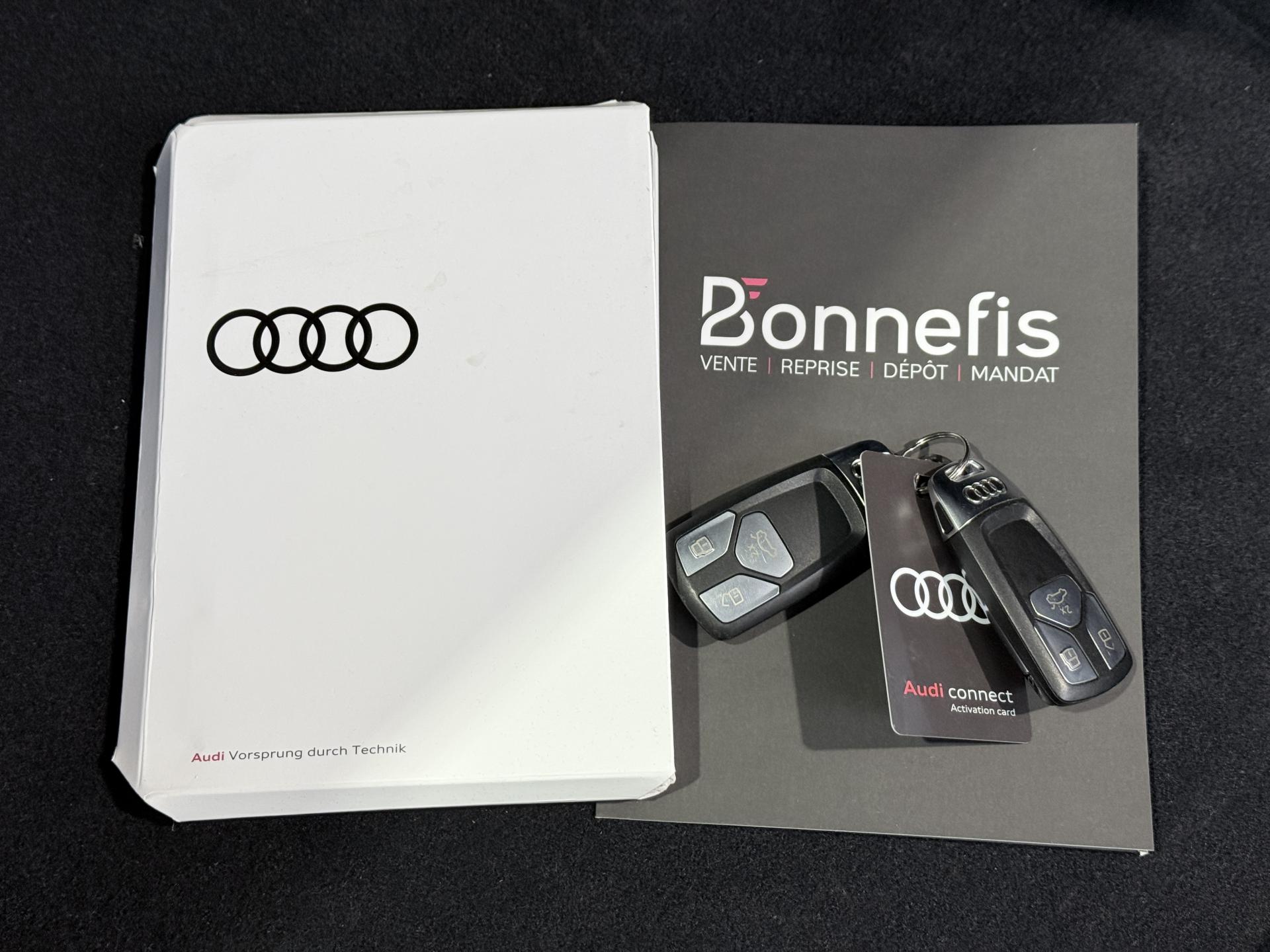 Nombreuses options : GPS, caméra de recul, Apple Carplay, radars avants et arrières de détection d'obstacles, Navigation MMI plus avec MMI touch ( 2 075 EUR ), Clé confort (Keyless entry) (sans safelock) ( 1 433 EUR ), Sièges AV réglables électriquement avec fonction mémoire pour le siège conducteur + rétroviseurs extérieurs réglables et escamotables électriquement, jour/nuit automatique, dégivrants des deux côtés et buses de lave-g ( 1 275 EUR ), Audi Virtual cockpit plus ( 375 EUR ), Airbags latéraux AR ( 366 EUR ), Audi Sound System ( 325 EUR ), Système de lecture des panneaux de signalisation par caméra ( 308 EUR ), Lave-phares ( 266 EUR ), Assistant de feux de route ( 158 EUR ), Stores pare-soleil manuels pour les vitres de portières AR ( 154 EUR ), Volant en cuir style 3 branches avec multifonctions plus ( 154 EUR ), Sièges AV chauffants ( 391 EUR ), Fixation pour sièges enfants ISOFIX pour le siège passager AV avec commande de sécurité enfant électrique sur les portières AR et commande de désactivation de l'airbag passager AV ( 83 EUR ), Augmentation de la capacité du réservoir d'AdBlue à 24 litres ( 58 EUR ), Affichage de contrôle de pression des pneus, Appel d'urgence et service Audi connect avec commande du véhicule, Caméra multifonction, Climatisation automatique confort 3 zones, Coffre à ouverture et fermeture électriques, Eclairage périphérique dans les poignées de portières extérieures, Miroirs de courtoisie éclairés, Rétroviseur intérieur sans encadrement jour/nuit automatique, Vitres athermiques, ...