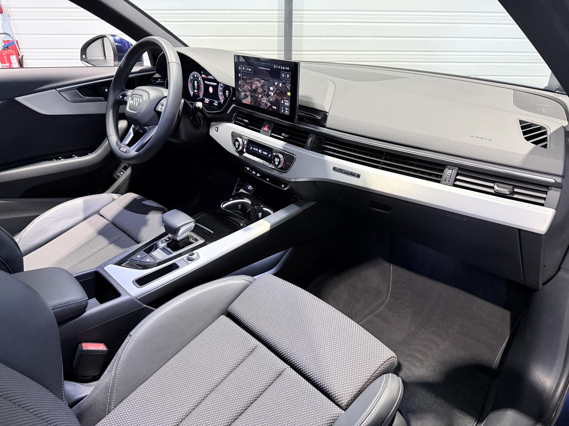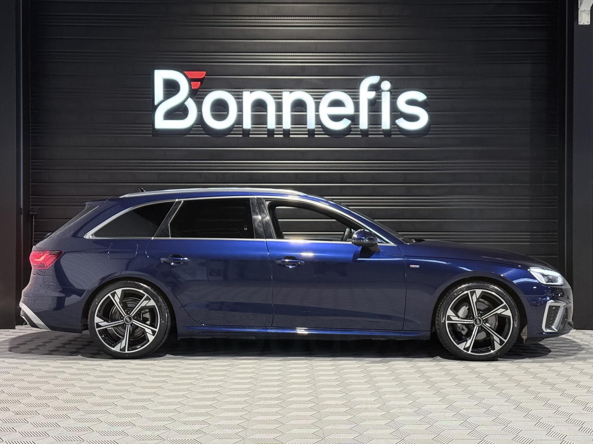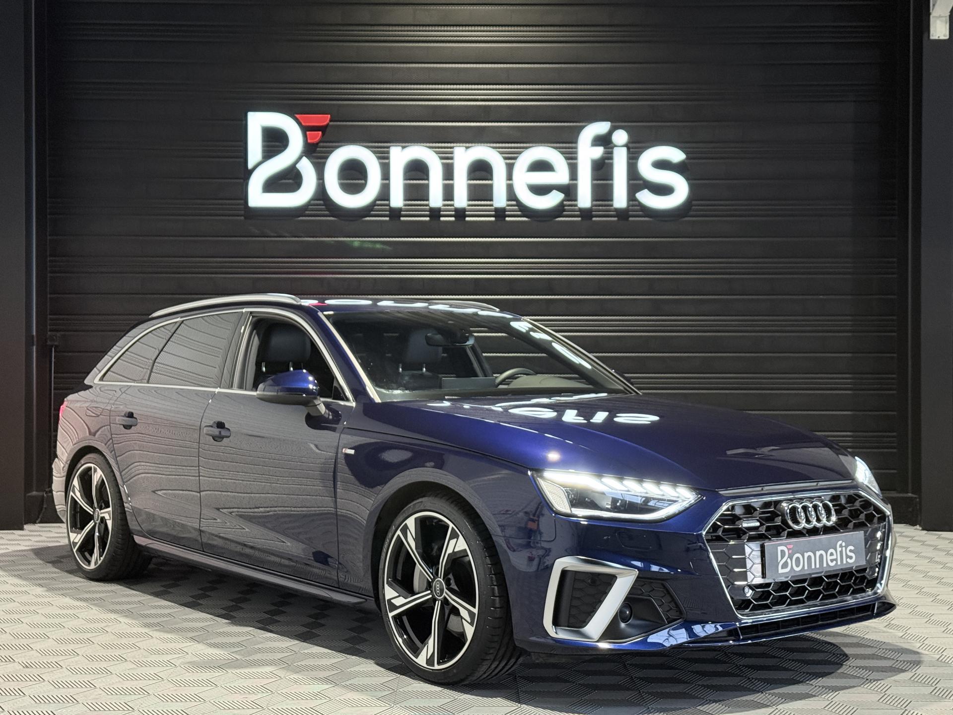 AUDI A4 AVANT 40 TDI 204Ch BVA S tronic 7 Quattro S line, extérieur Bleu métallisée ( bleu Navarre métallisée ) ( 883 EUR ), intérieur Noir ( sellerie Combinaison Cuir/Séquence S line ), 11 cv, 5 portes, première mise en circulation le 28/03/2024.