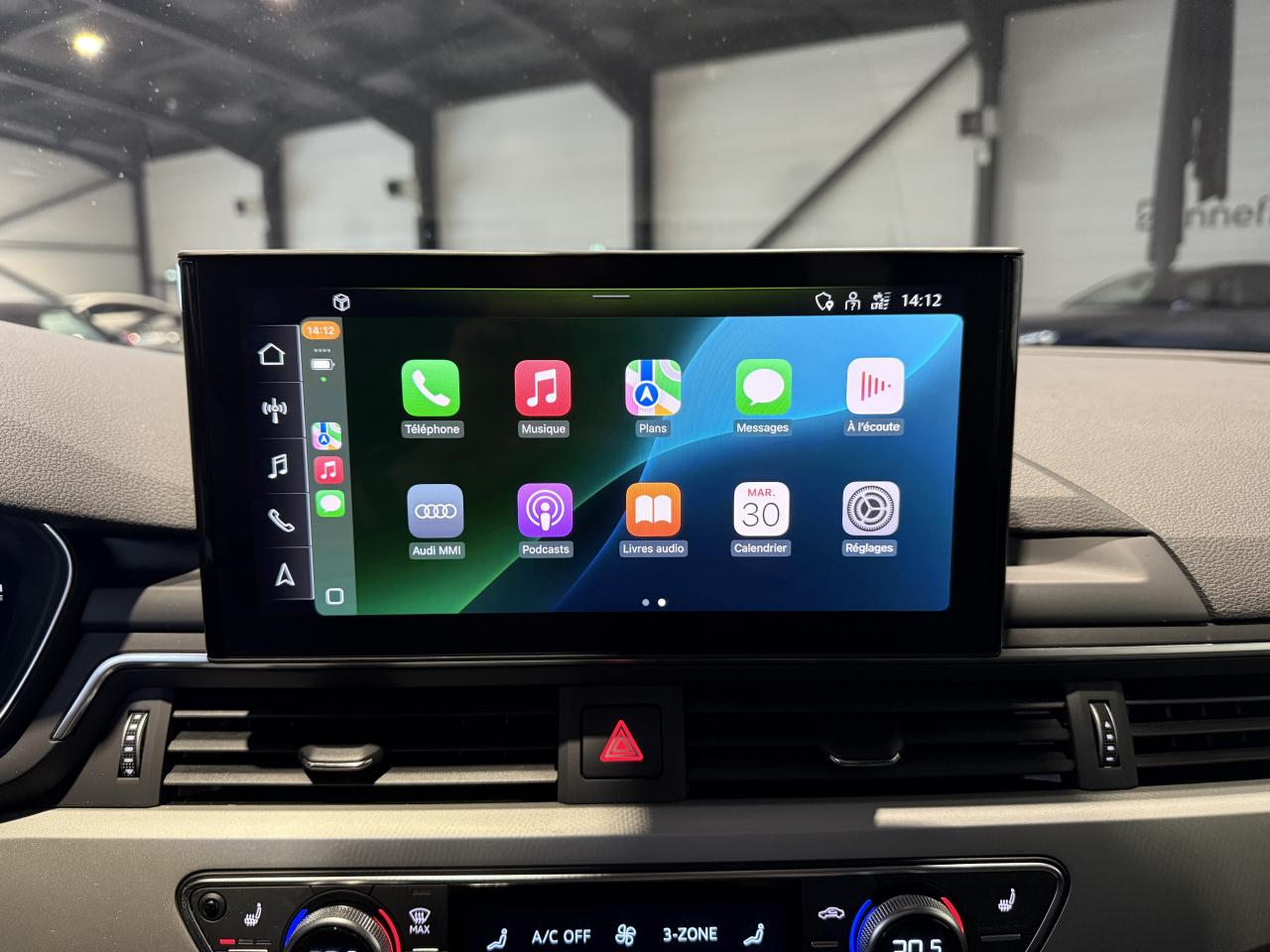 Nombreuses options : GPS, caméra de recul, Apple Carplay, radars avants et arrières de détection d'obstacles, MMI Navigation plus avec MMI touch, Pack Assistance Tour, Pack Business, Audi virtual cockpit plus, Pack Style Noir, Rétros ext. réglables, dégivrants et rabatt. électr., à réglage jour/nuit auto. des 2 côtés, avec fonction mémoire, Sièges avant à réglage électrique avec fonction mémoire pour le siège du conducteur, Assistant de changement de voie Audi side assist y compris Audi pre sense rear, Clé confort avec déverr. coffre piloté par capteurs inclus, y compris hayon à ouverture et fermeture électriques, Chauffage de siège à l'avant, Pack Éclairage d'ambiance, Vitrage pare-soleil surteinté, Pack Sécurité enfants, Assistant de maintien de voie Audi active lane assist, Audi connect Navigation & Infotainment, Rétroviseur intérieur à réglage jour/nuit automatique, sans cadre, Stores arrière manuels pour les glaces latérales arrière, Détection de signalisation routière par caméra, Clé confort sans SAFELOCK, Réservoir à carburant à volume augmenté, Accoudoir central confort à l'avant, Appui lombaire 4 voies pour les sièges avant, Fixation de siège pour enfant ISOFIX pour le siège du passager avant, Système d'aide au stationnement Plus, Autorisation de circulation, supplément, Lave-projecteurs, Régulation des feux de route, Airbags latéraux à l'avant et à l'arrière et système d'airbags rideaux, Volant en cuir à 3 branches avec multifonction Plus, Caméra multifonction, ...