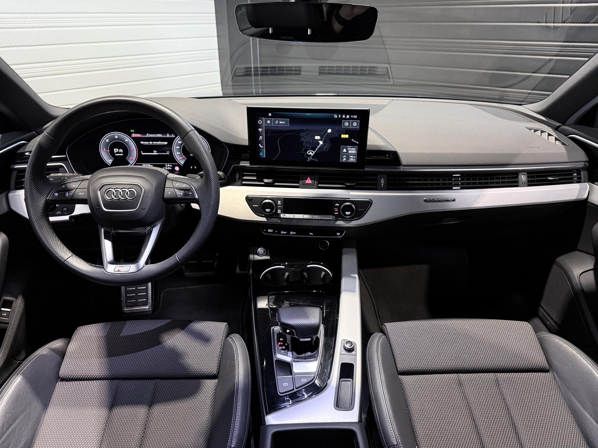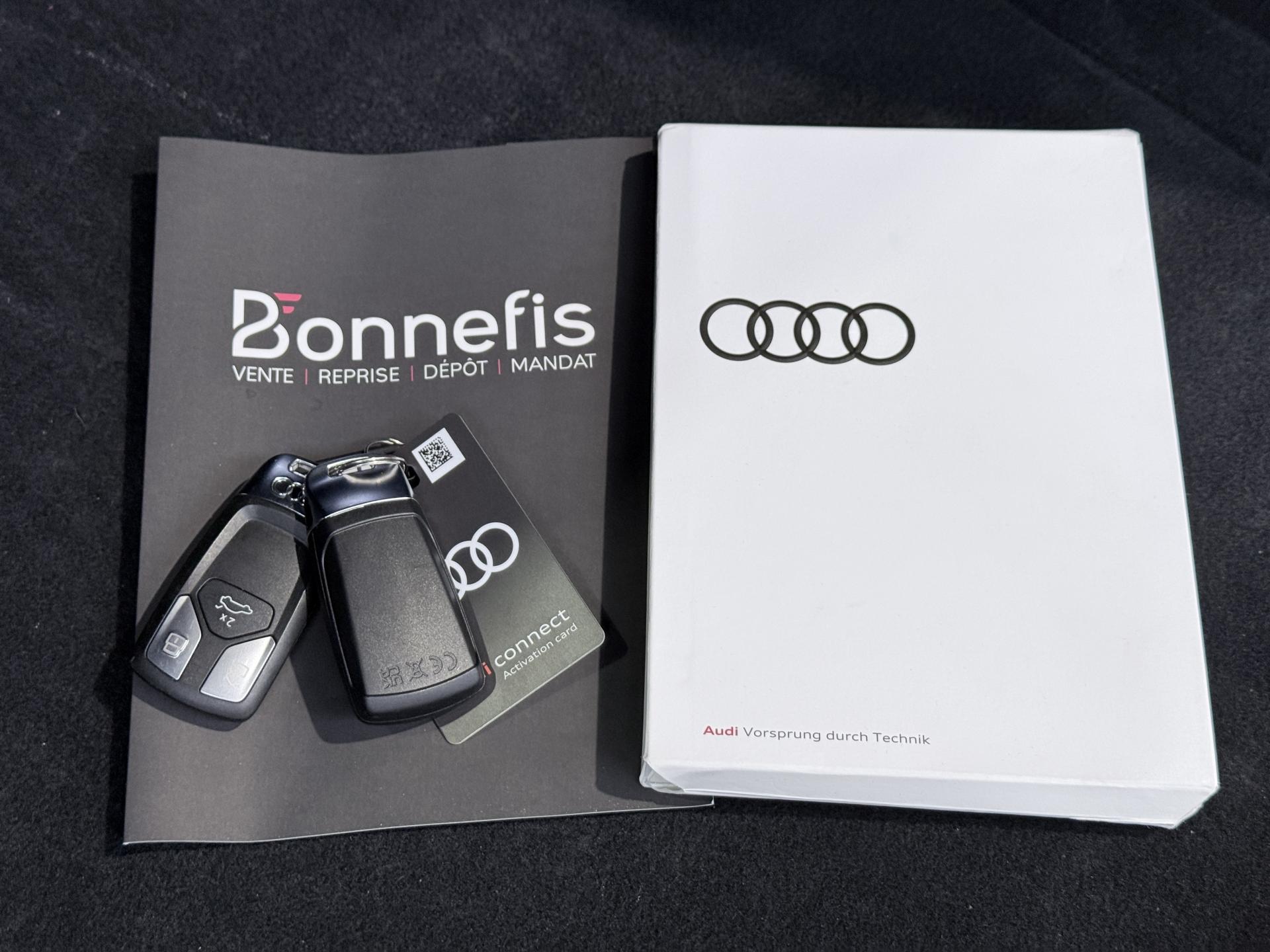 Nombreuses options : GPS, caméra de recul, Apple Carplay, radars avants et arrières de détection d'obstacles, peinture nacrée ( 883 € ), vitrage Privacy vitres surteintées ( 483 € ), roue de secours temporaire pour vitesse maximale 80 km/h ( 125 € ), Audi Hold Assist ( 83 € ), augmentation de la capacité du réservoir d'AdBlue à 24 litres ( 58 € ), ACC / Active Cruise Control incluant fonction Stop&Go avec assistant de conduite en embouteillage, affichage de contrôle de pression des pneus, assistant d'efficacité prédictive, Audi Active Lane Assist, Audi pre sense front incluant assistant d'évitement d'urgence et assistant de changement de direction, Audi Virtual cockpit plus combiné d’instruments entièrement numérique de 12,3" Full HD, caméra de recul, ciel de pavillon en tissu noir, climatisation automatique confort 3 zones, coffre à ouverture et fermeture électriques, feux AR à LED avec scénarios de lumière dynamiques et clignotants dynamiques, lave-phares, phares Matrix LED avec scénarios de lumière dynamiques et clignotants dynamiques, vitres athermiques, ...