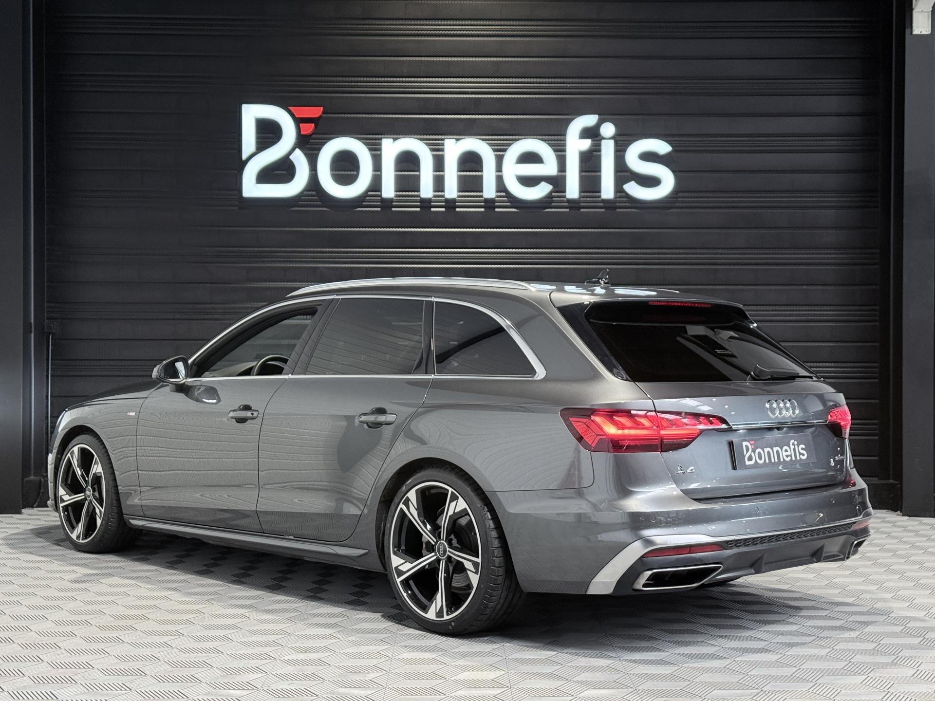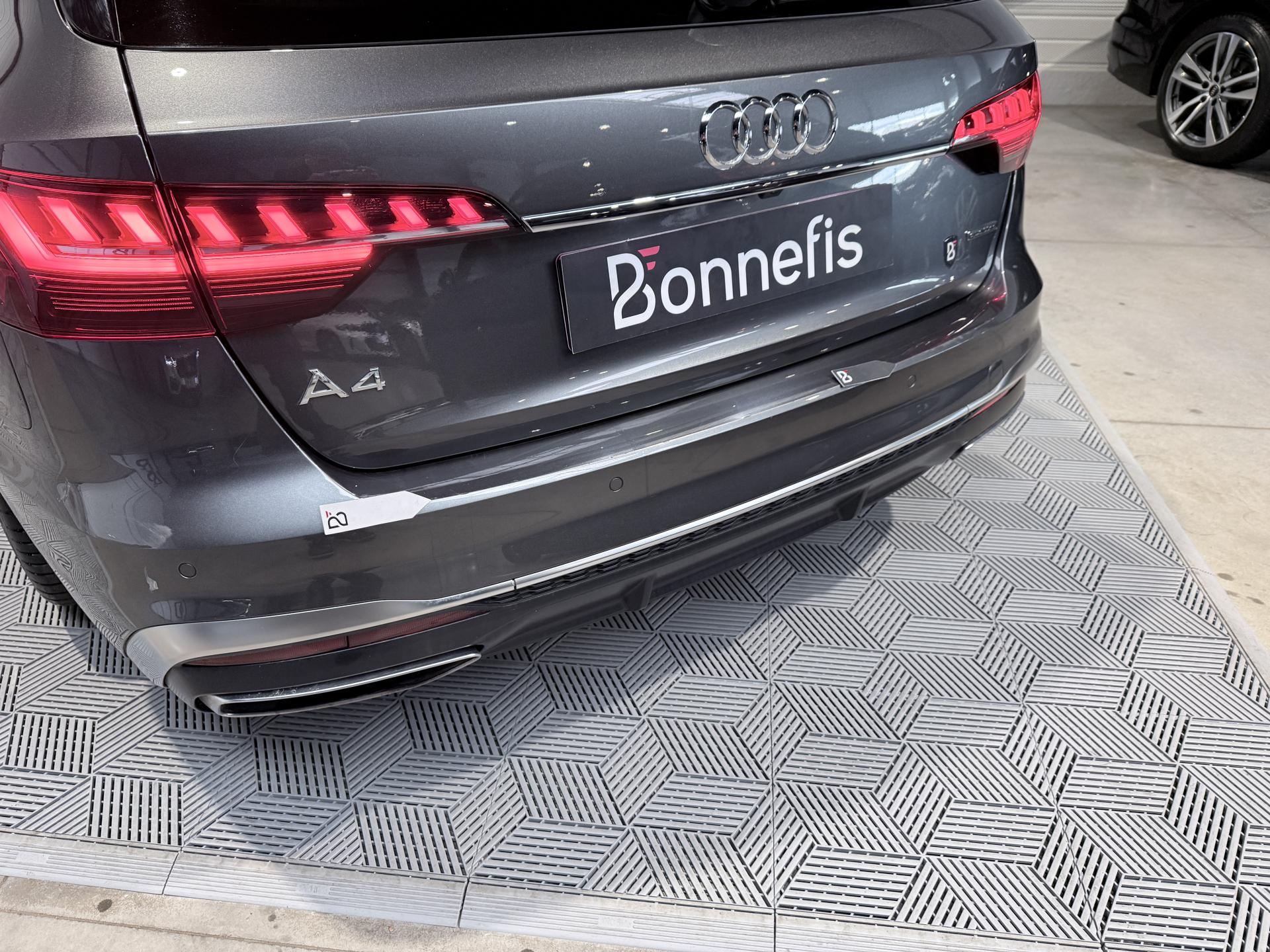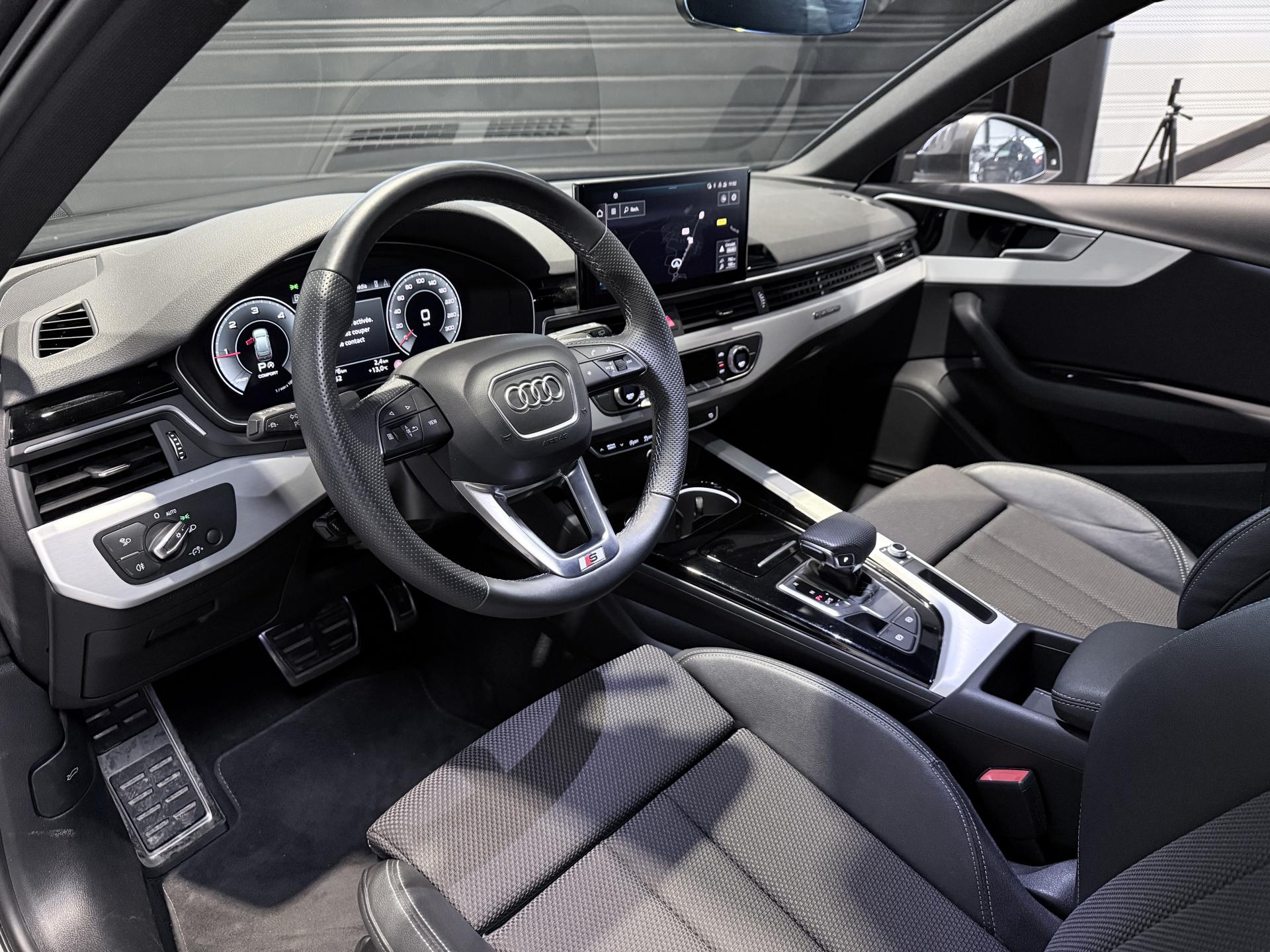 Audi A4 Avant 40 TDI 204 Ch S Tronic S Line Quattro, break, extérieur gris ( gris Daytona )( 883 € ), intérieur sellerie combinaison Cuir/Séquence S line, 11 cv, 5 portes, première mise en circulation le 29/03/2024.