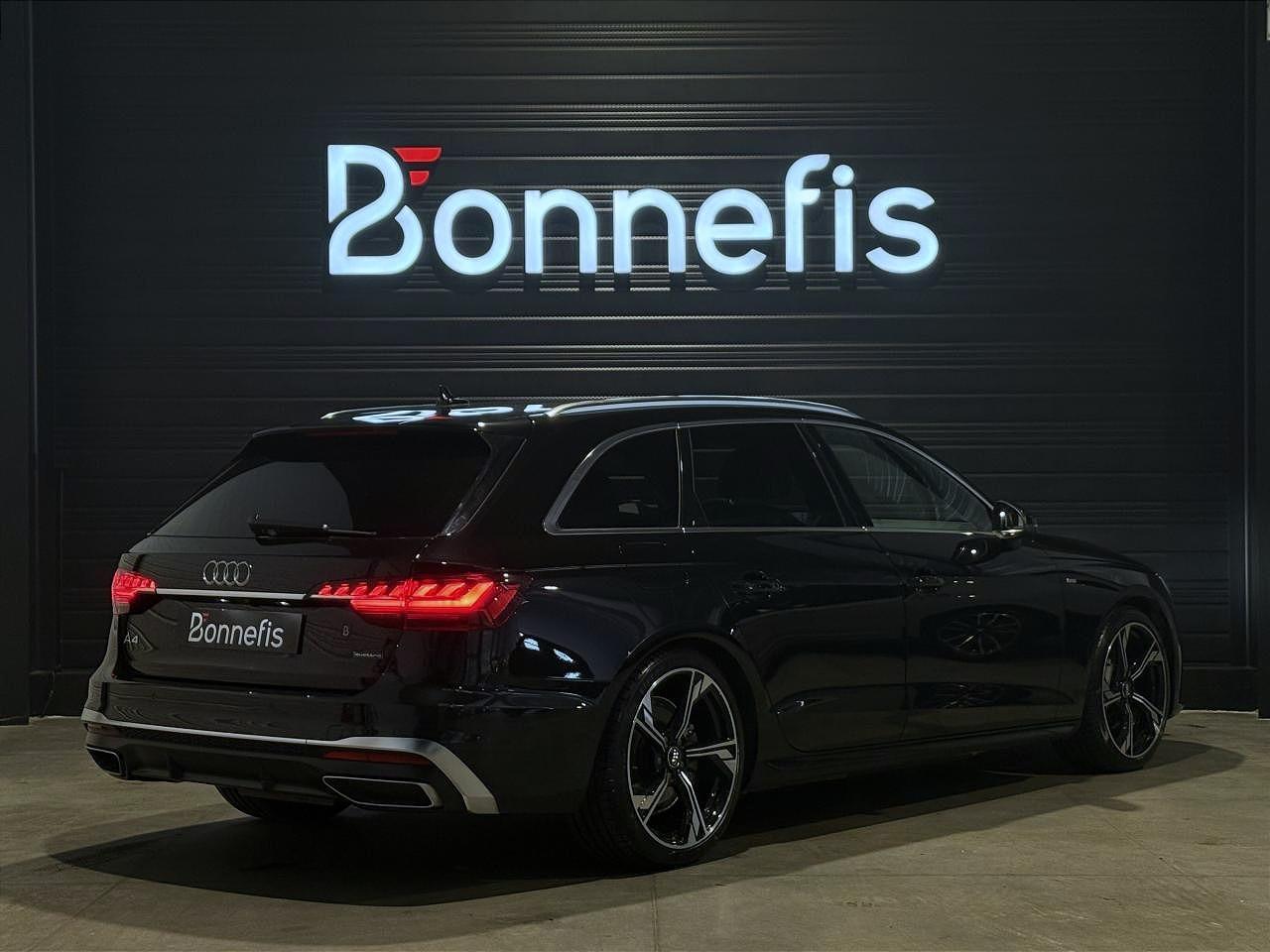Audi A4 Avant 40 TDI 204 Ch S Tronic S Line Quattro, break, extérieur noir métallisée ( noir Mythic )( 883 € ), 11 cv, 5 portes, première mise en circulation le 28/03/2024.