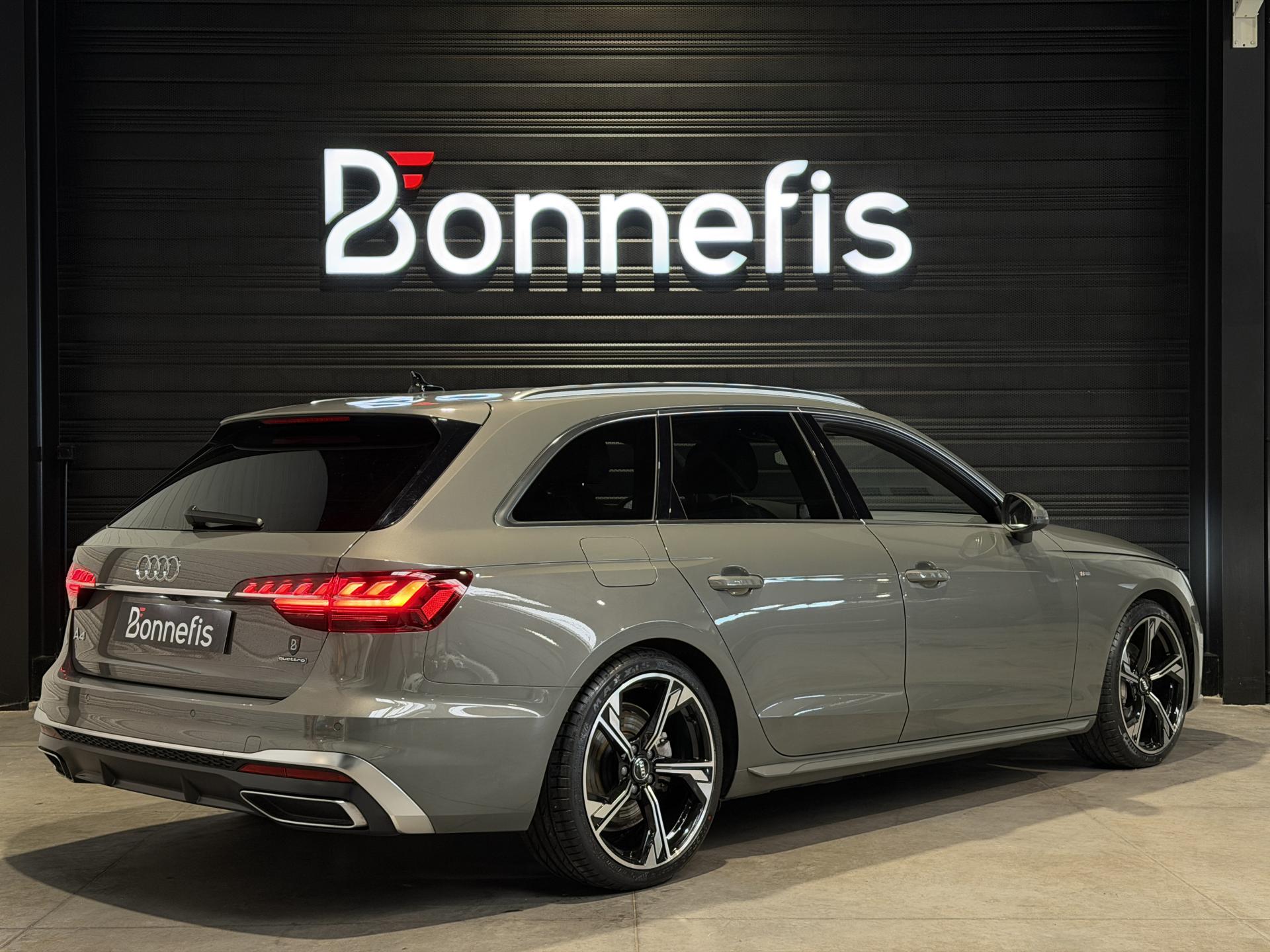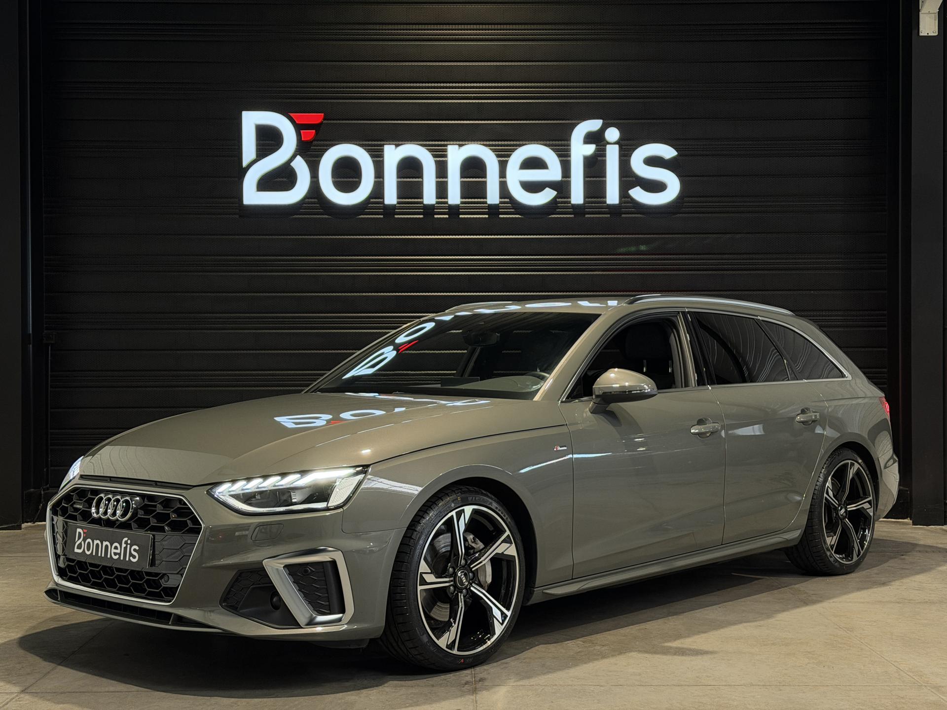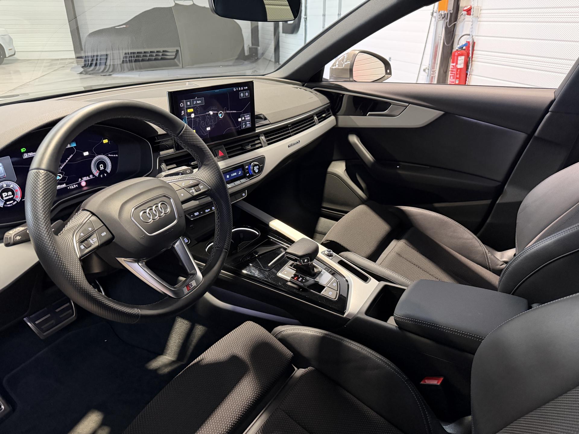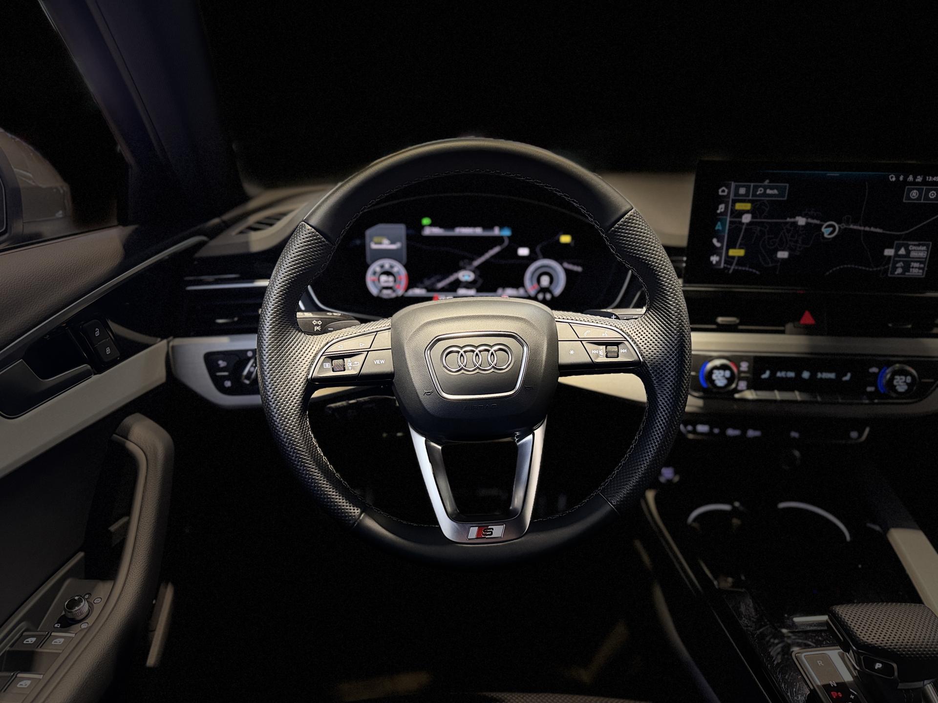 Audi A4 Avant 2.0 204 Ch 40 TDI S Tronic S Line Quattro, extérieur gris Chronos métallisée, intérieur tissu / similicuir noir, 11 cv, 5 portes, première mise en circulation le 26/08/2024.