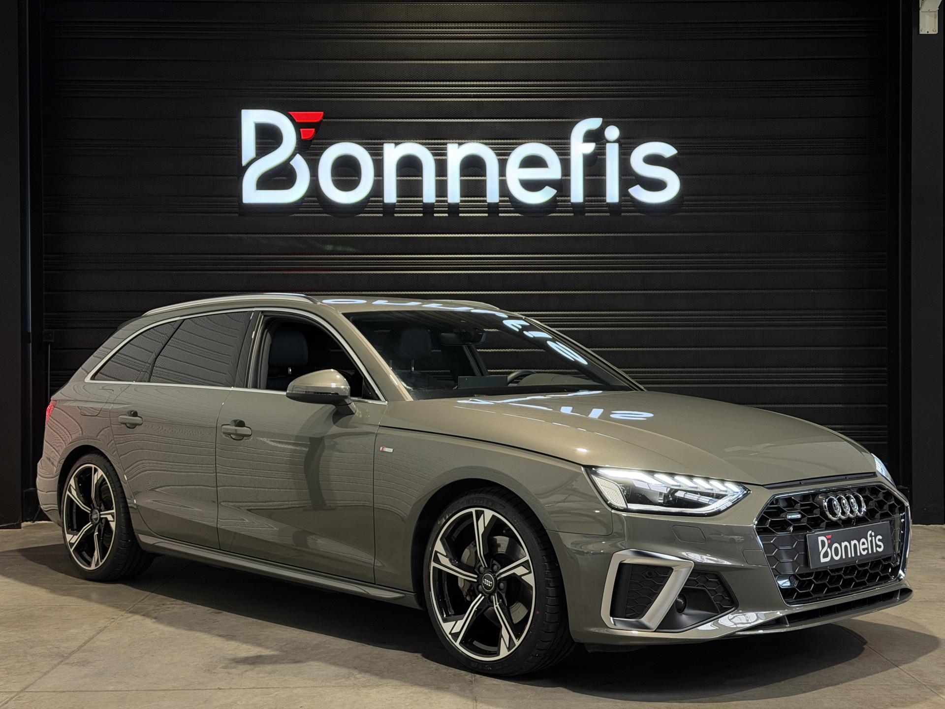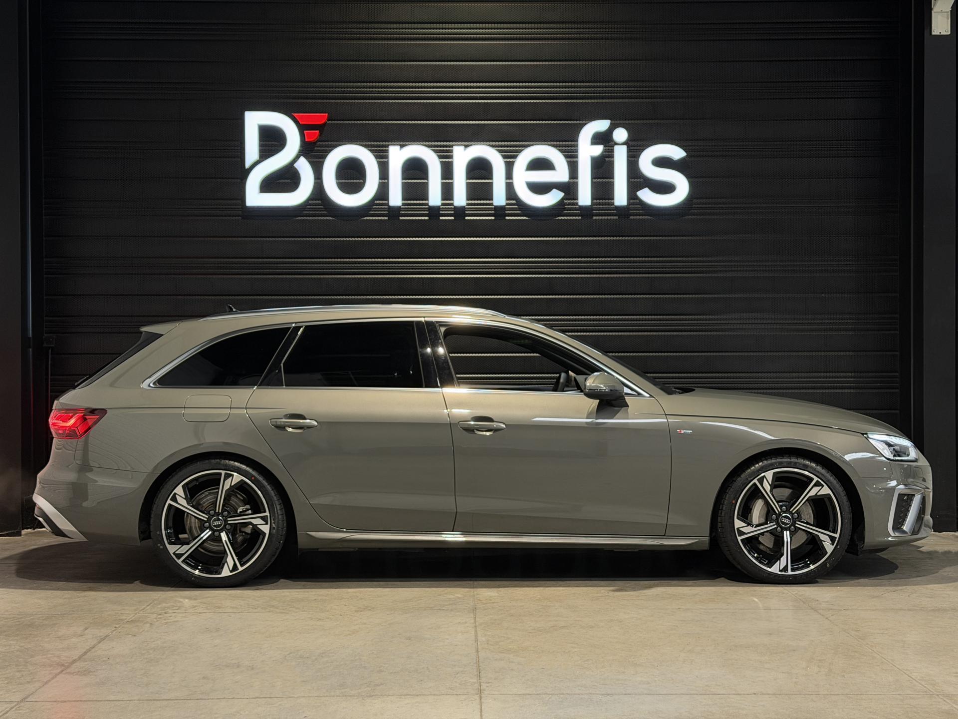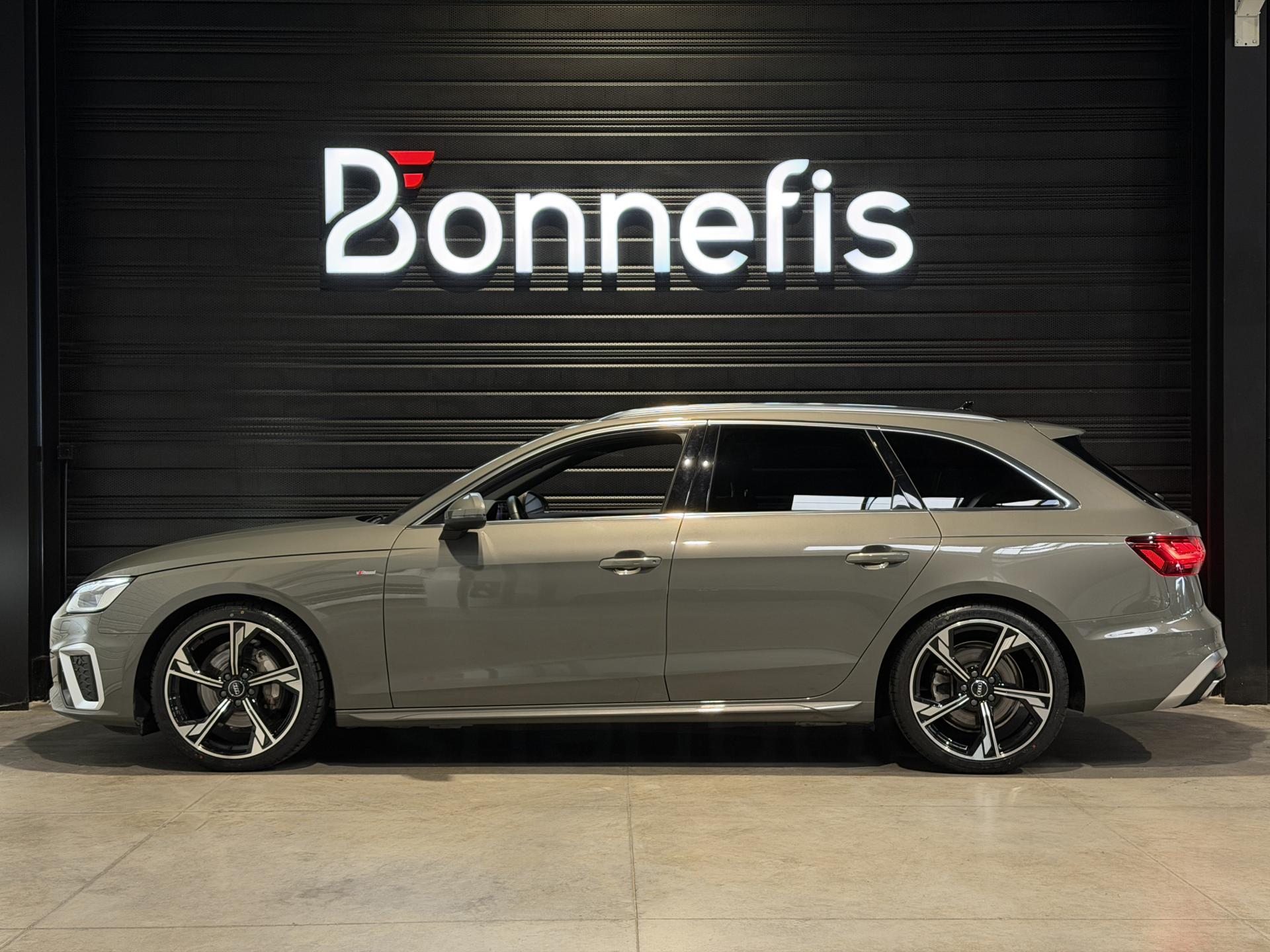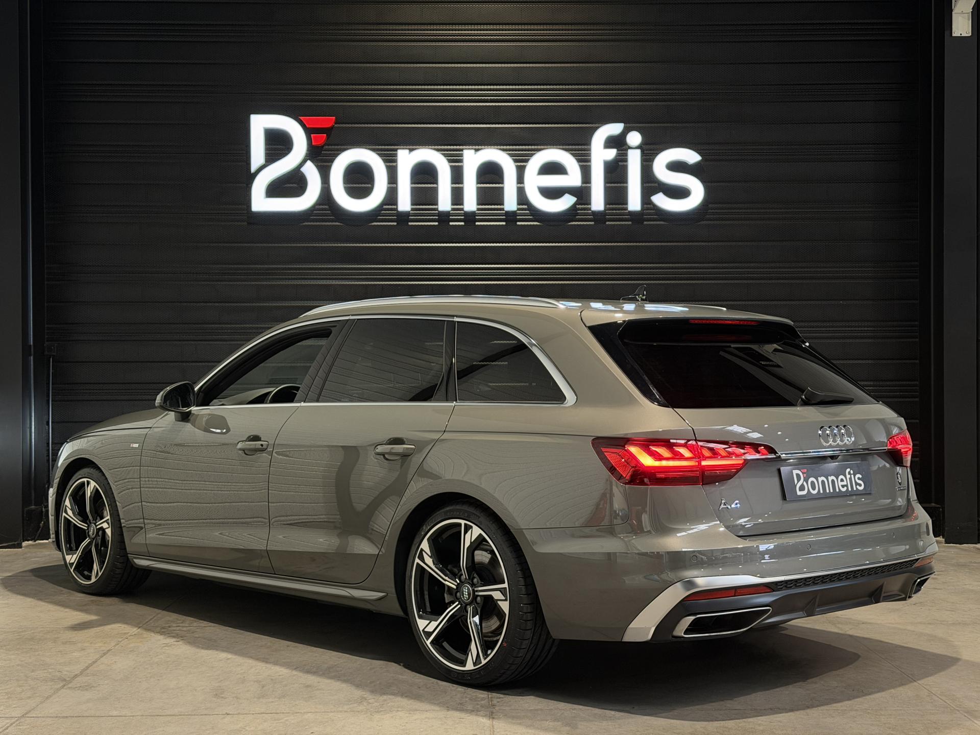 Audi A4 Avant 2.0 204 Ch 40 TDI S Tronic S Line Quattro, extérieur gris Chronos métallisée, intérieur tissu / similicuir noir, 11 cv, 5 portes, première mise en circulation le 26/08/2024.