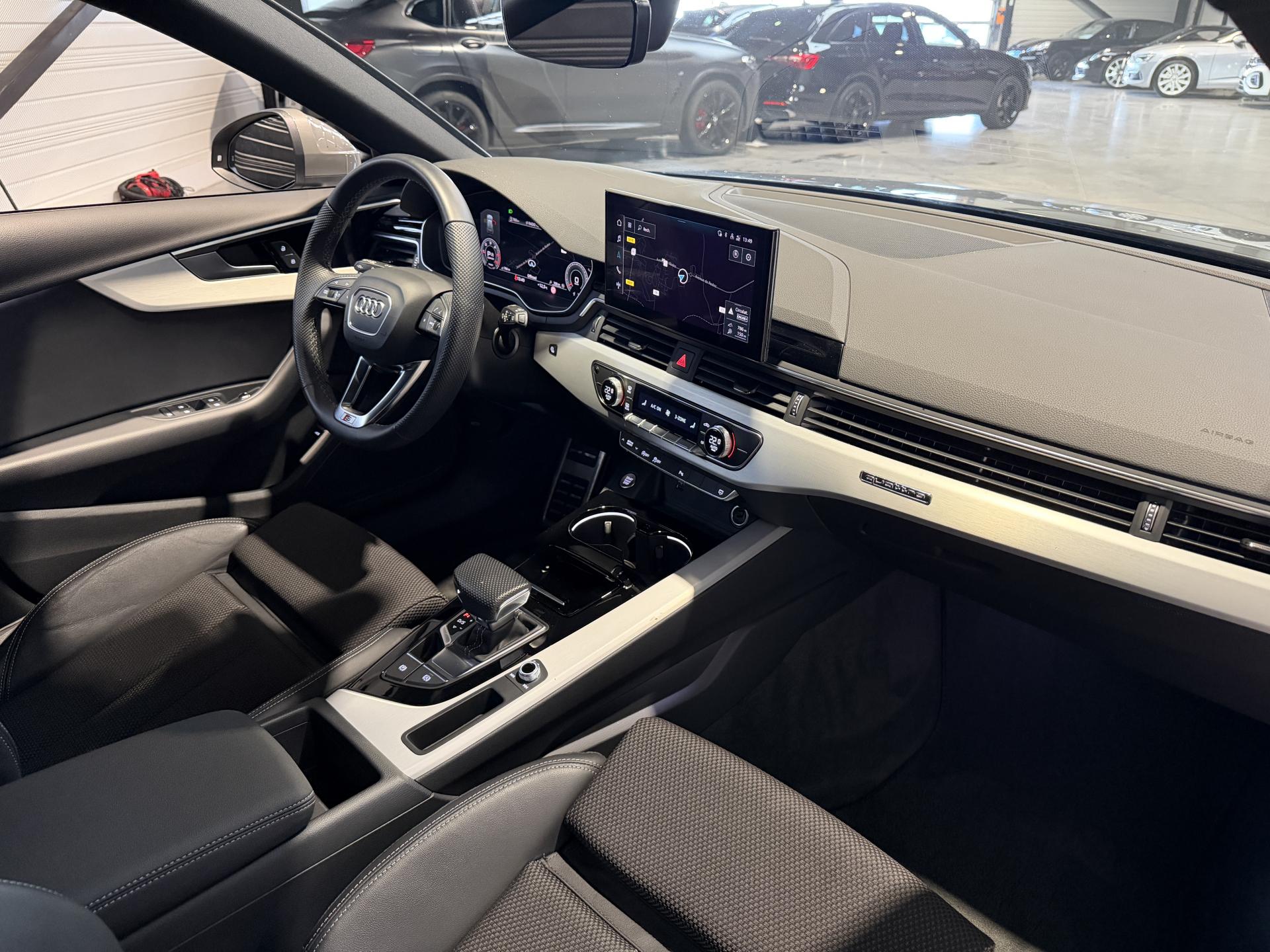 Nombreuses options : GPS, caméra de recul, Apple Carplay, radars avants et arrières de détection d'obstacles, MMI Navigation plus avec MMI touch, Audi virtual cockpit plus, Climatiseur automatique confort 3 zones, Projecteurs Matrix LED avec scène lumineuse dynamique et clignotants séquentiels, Régulateur de vitesse adaptatif ( ACC / Active Cruise Control ), Intérieur S line, Pack Éclairage d'ambiance, Audi connect Navigation & Infotainment, Détection de signalisation routière par caméra, Assistant de maintien de voie Audi active lane assist, Caméra multifonction, Hayon à ouverture et fermeture électriques, Sièges sport à l'avant, Appui lombaire 4 voies pour les sièges avant, Accoudoir central confort à l'avant, Volant en cuir à 3 branches avec multifonction Plus, Enjoliveurs de seuil de porte avec inserts en aluminium à l'avant éclairés, Pédalier et repose-pieds en acier inoxydable, Ciel de pavillon en tissu Noir, Inserts décoratifs en aluminium Mat Brossé, Vitrage pare-soleil surteinté, ...