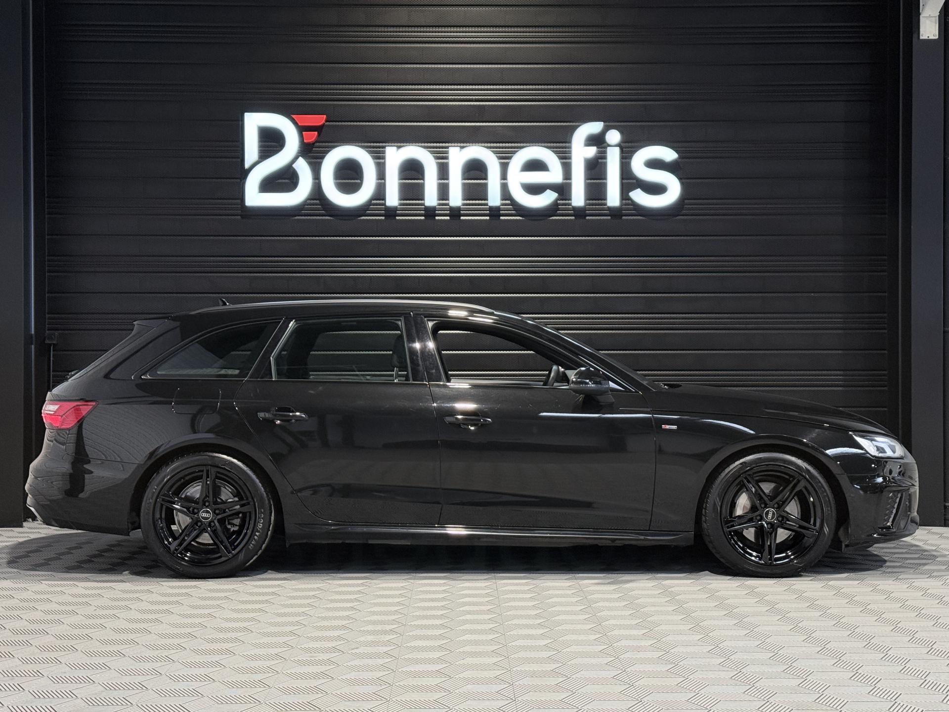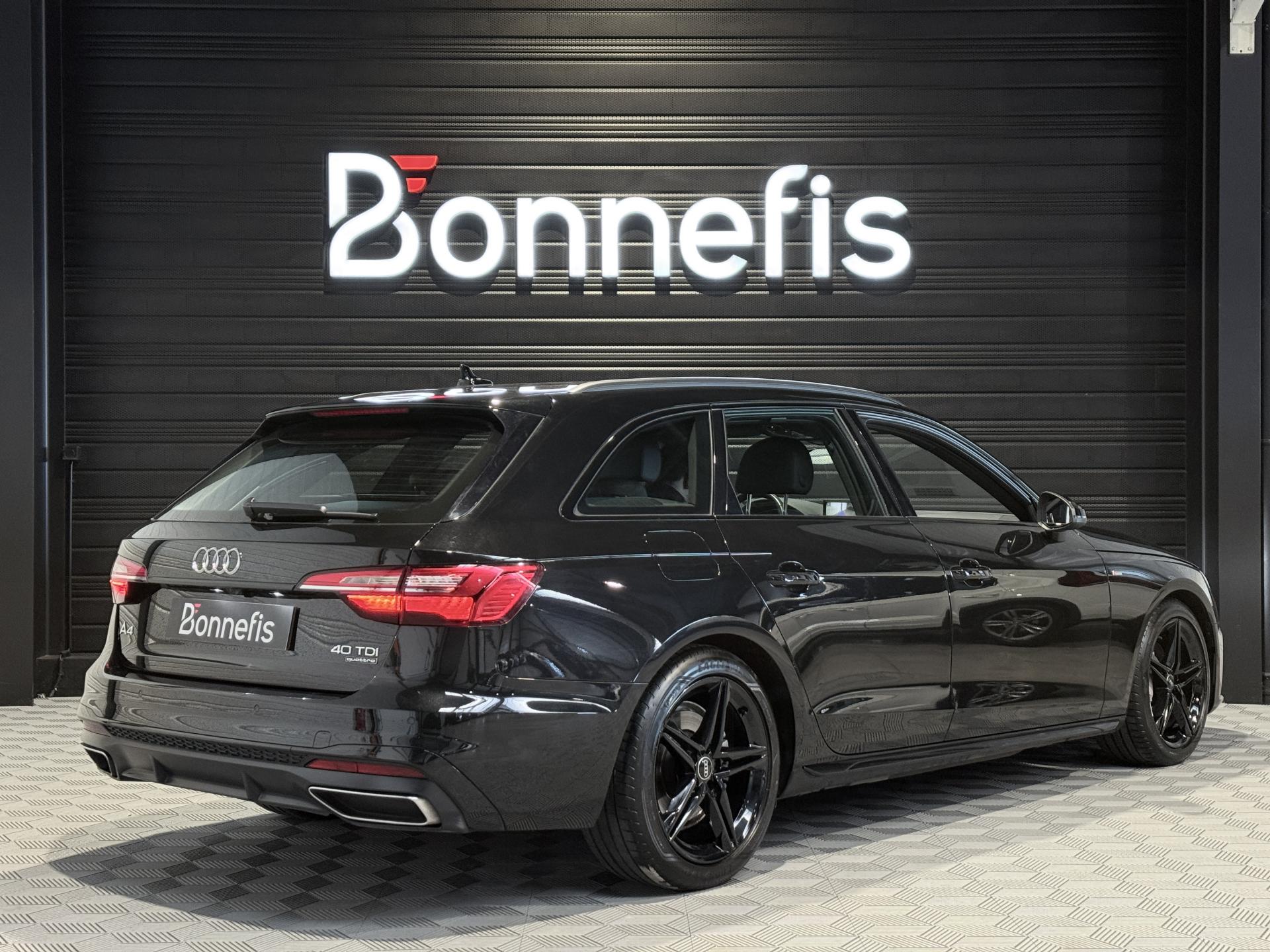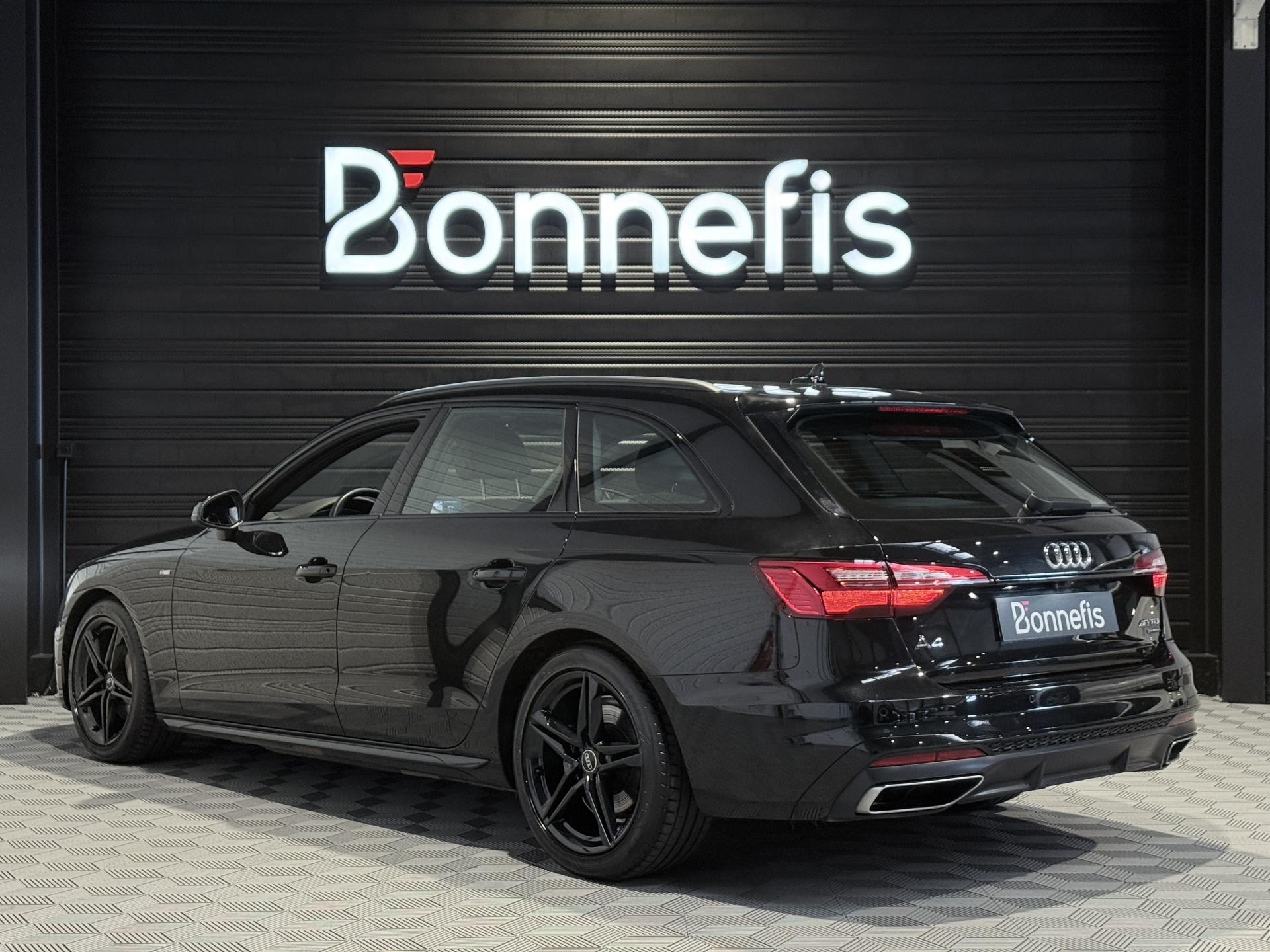 AUDI A4 AVANT 40 TDI 204Ch S tronic 7 Quattro S line, extérieur Noir métallisée ( noir Mythic ) ( 883 EUR ), intérieur Noir, 11 cv, 5 portes, première mise en circulation le 29/03/2023.