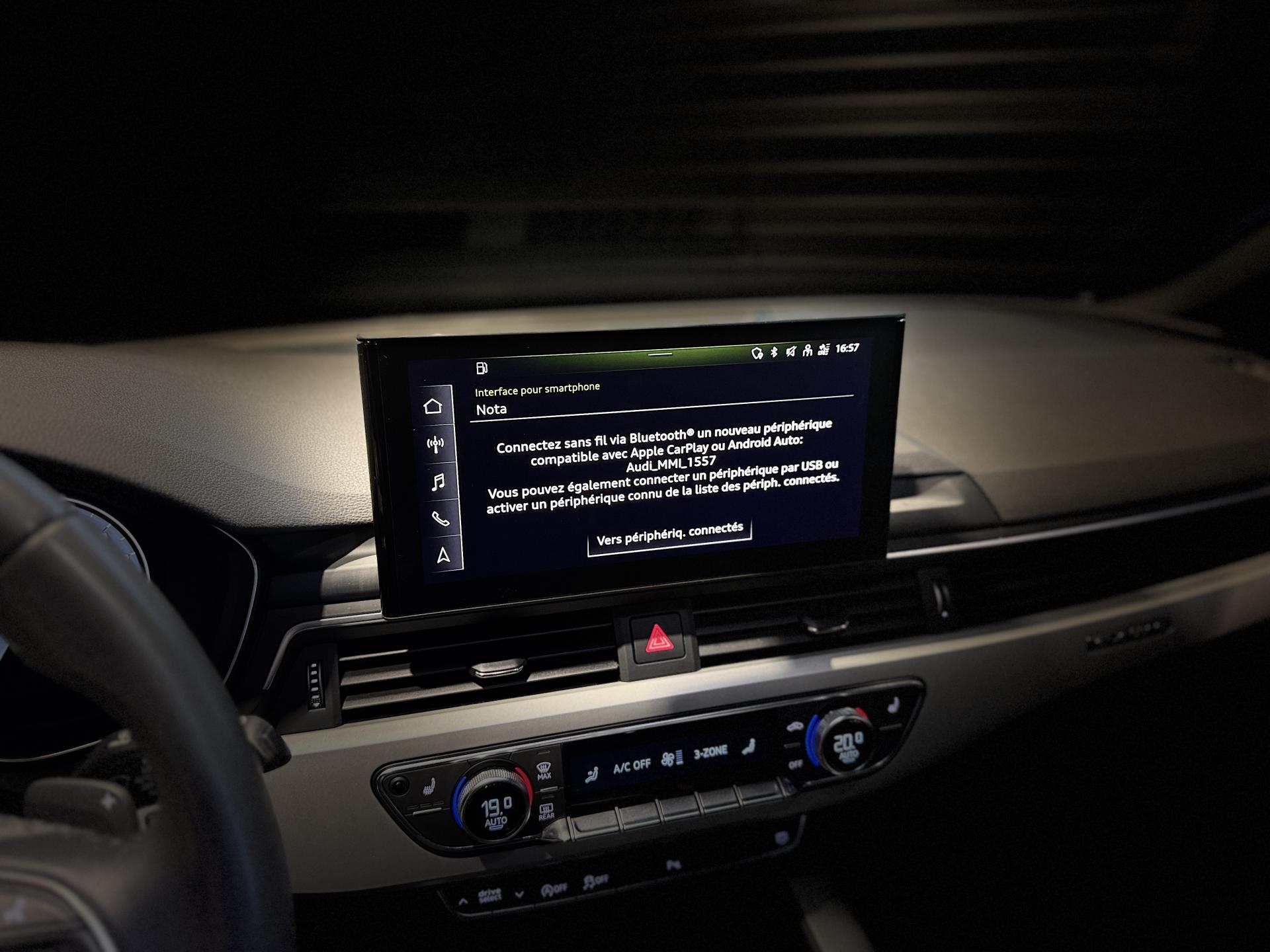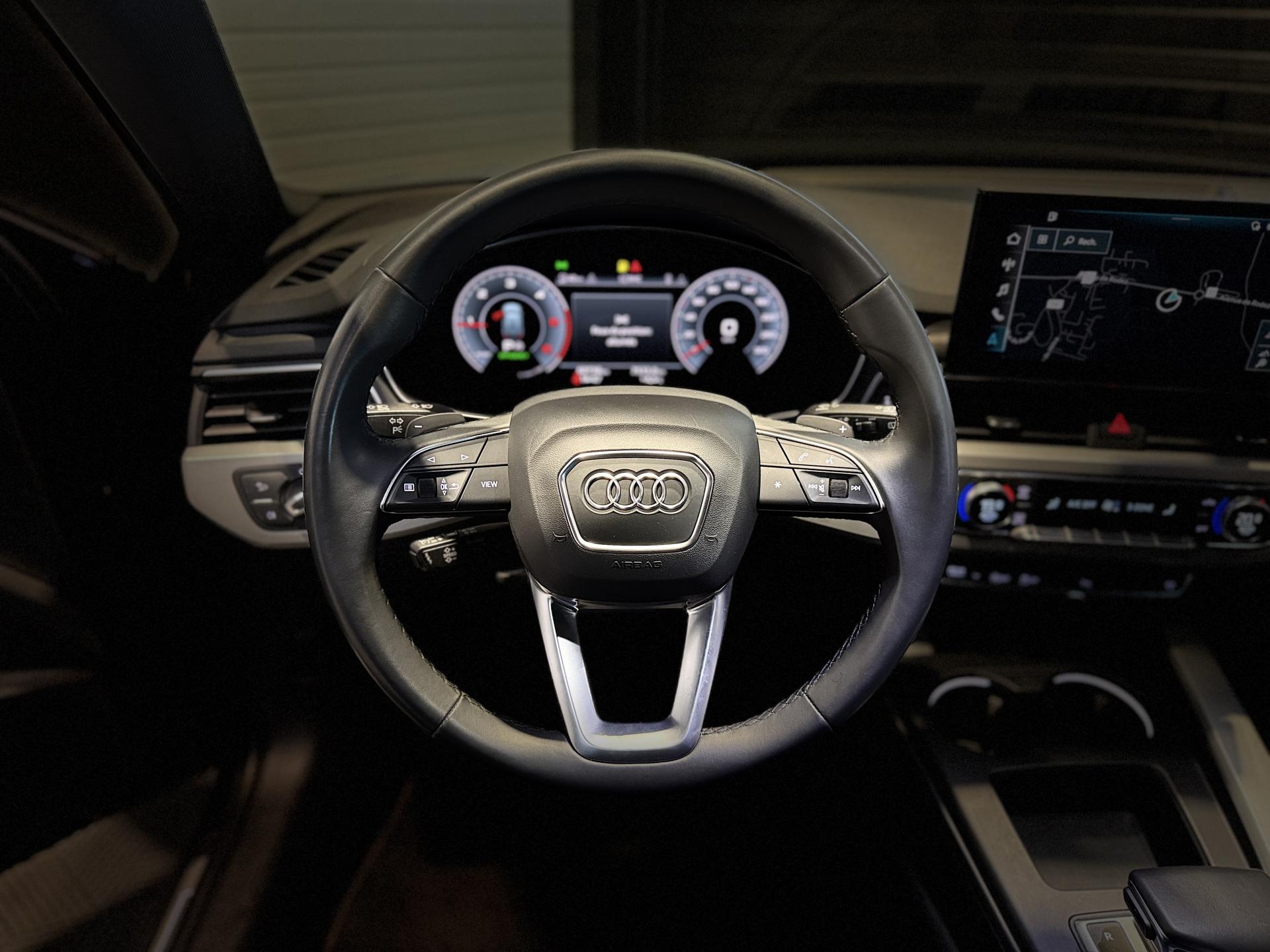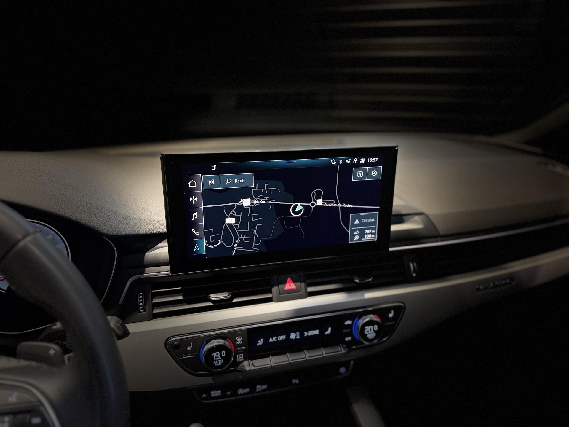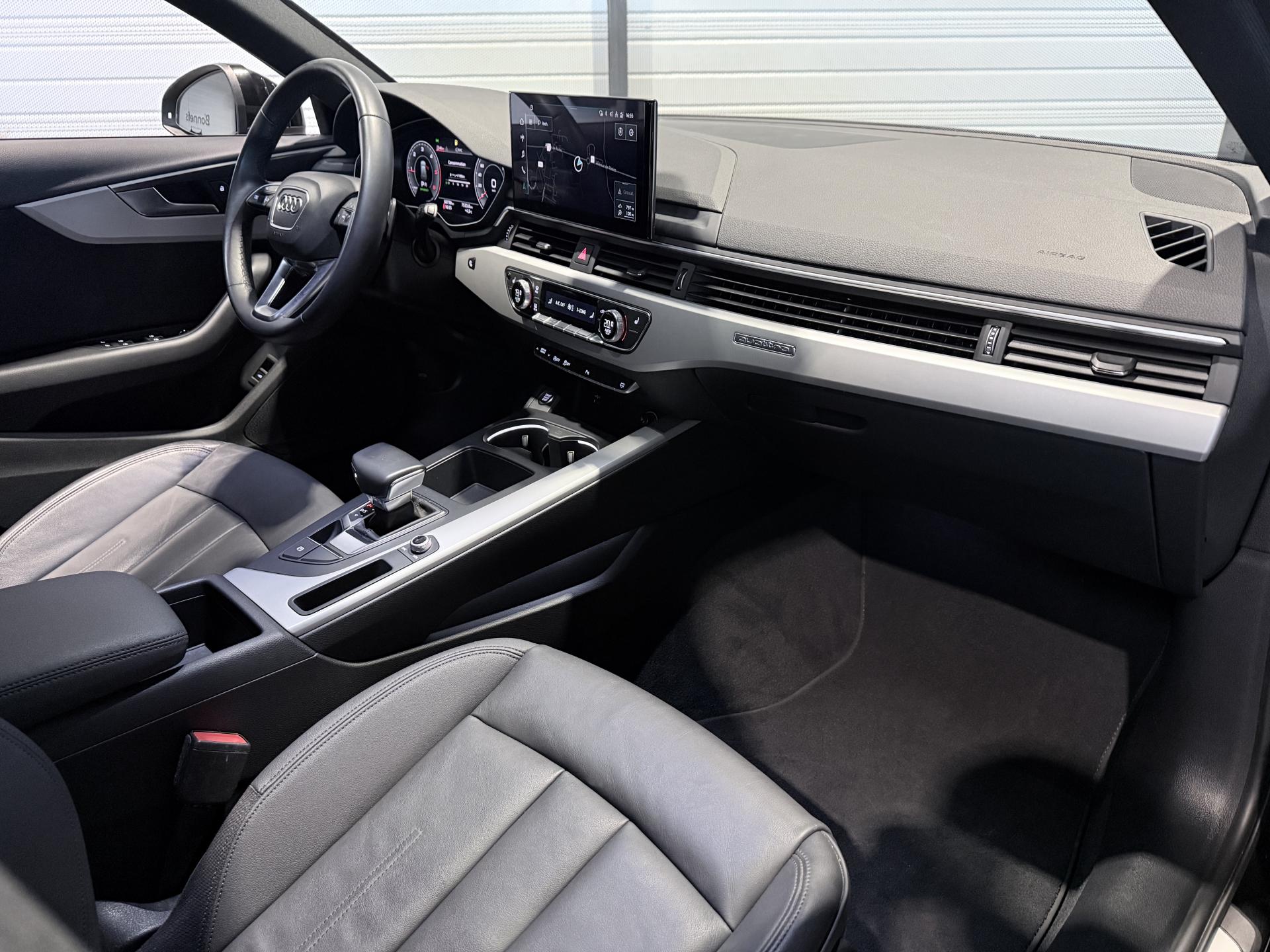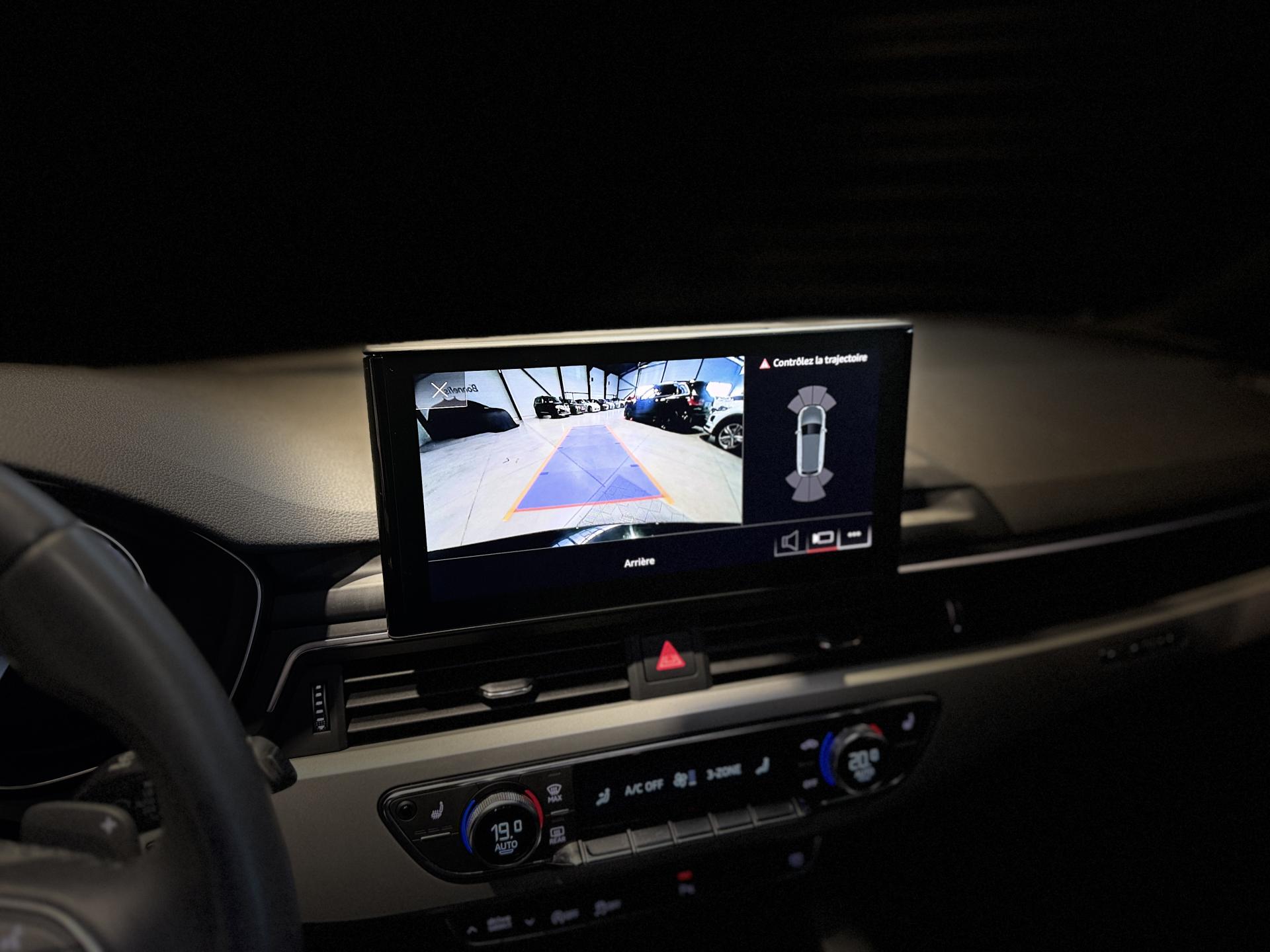 Nombreuses options : GPS, caméra de recul, Apple Carplay, radars avants et arrières de détection d'obstacles, Sièges AV réglables électriquement avec fonction mémoire pour le siège conducteur + rétroviseurs extérieurs réglables et escamotables électriquement, jour/nuit automatique, dégivrants des deux côtés et buses de lave-g ( 1 275 EUR ), Sièges AV chauffants ( 391 EUR ), Airbags latéraux AR ( 366 EUR ), Stores pare-soleil manuels pour les vitres de portières AR ( 154 EUR ), Fixation pour sièges enfants ISOFIX pour le siège passager AV avec commande de sécurité enfant électrique sur les portières AR et commande de désactivation de l?airbag passager AV ( 83 EUR ), Augmentation de la capacité du réservoir d'AdBlue à 24 litres ( 58 EUR ), Adaptative Cruise Control incluant fonction Stop&Go avec assistant de conduite en embouteillage, Affichage de contrôle de pression des pneus, Assistant d'efficacité prédictive, Assistant de feux de route, Audi Active Lane Assist, Audi Pre Sense city, Ciel de pavillon en tissu noir, Climatisation automatique confort 3 zones, Coffre à ouverture et fermeture électriques, Système de lecture des panneaux de signalisation par caméra, Vitres athermiques, ...