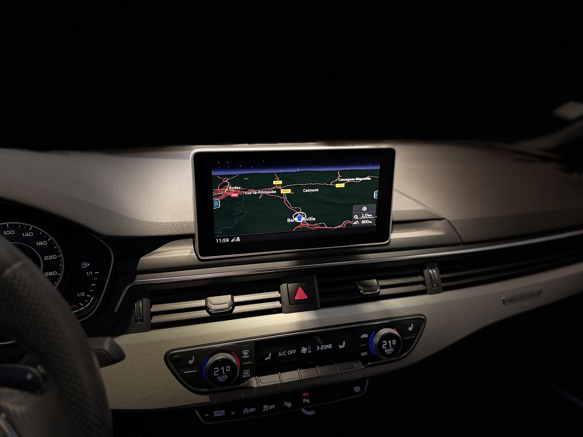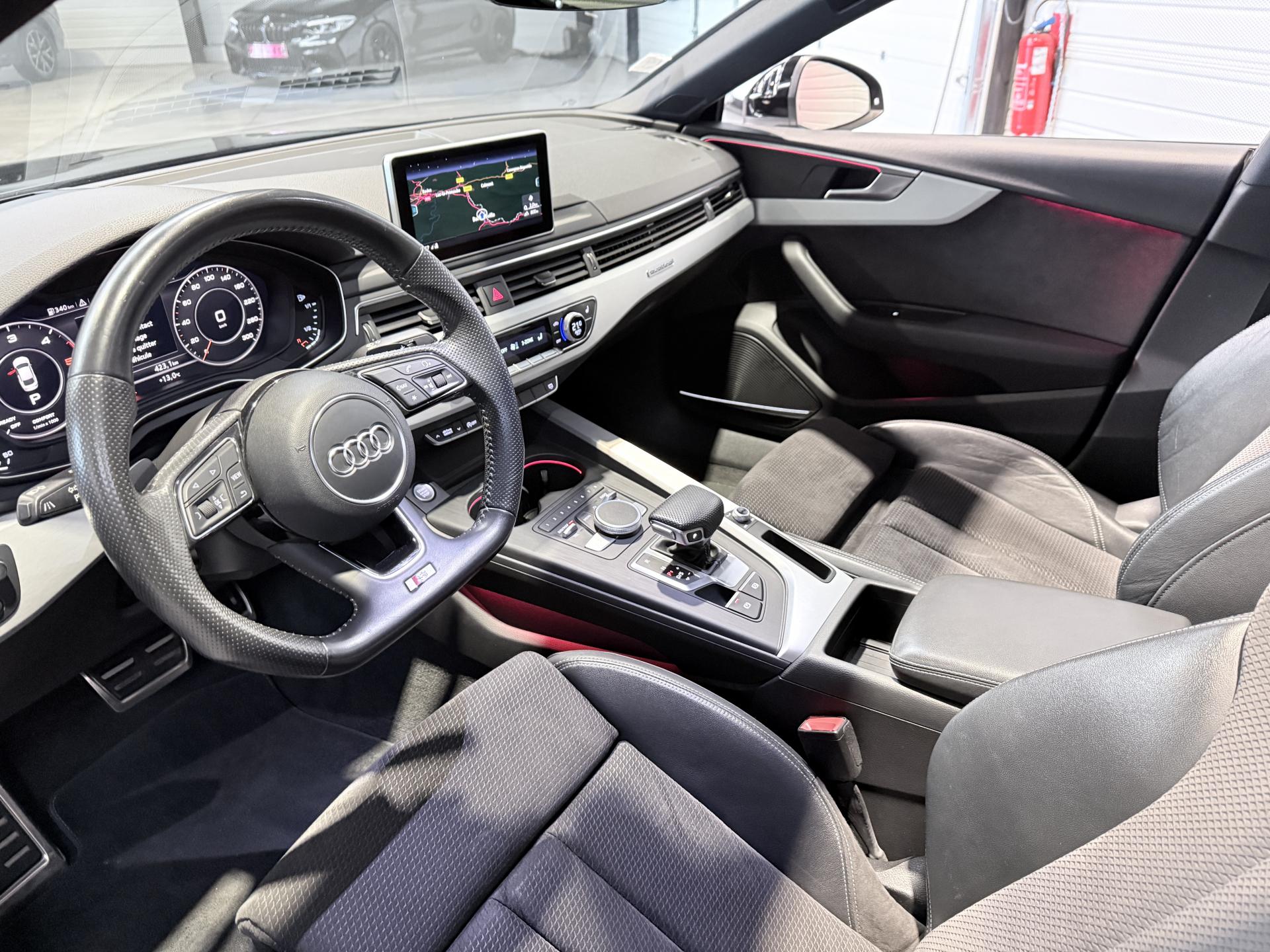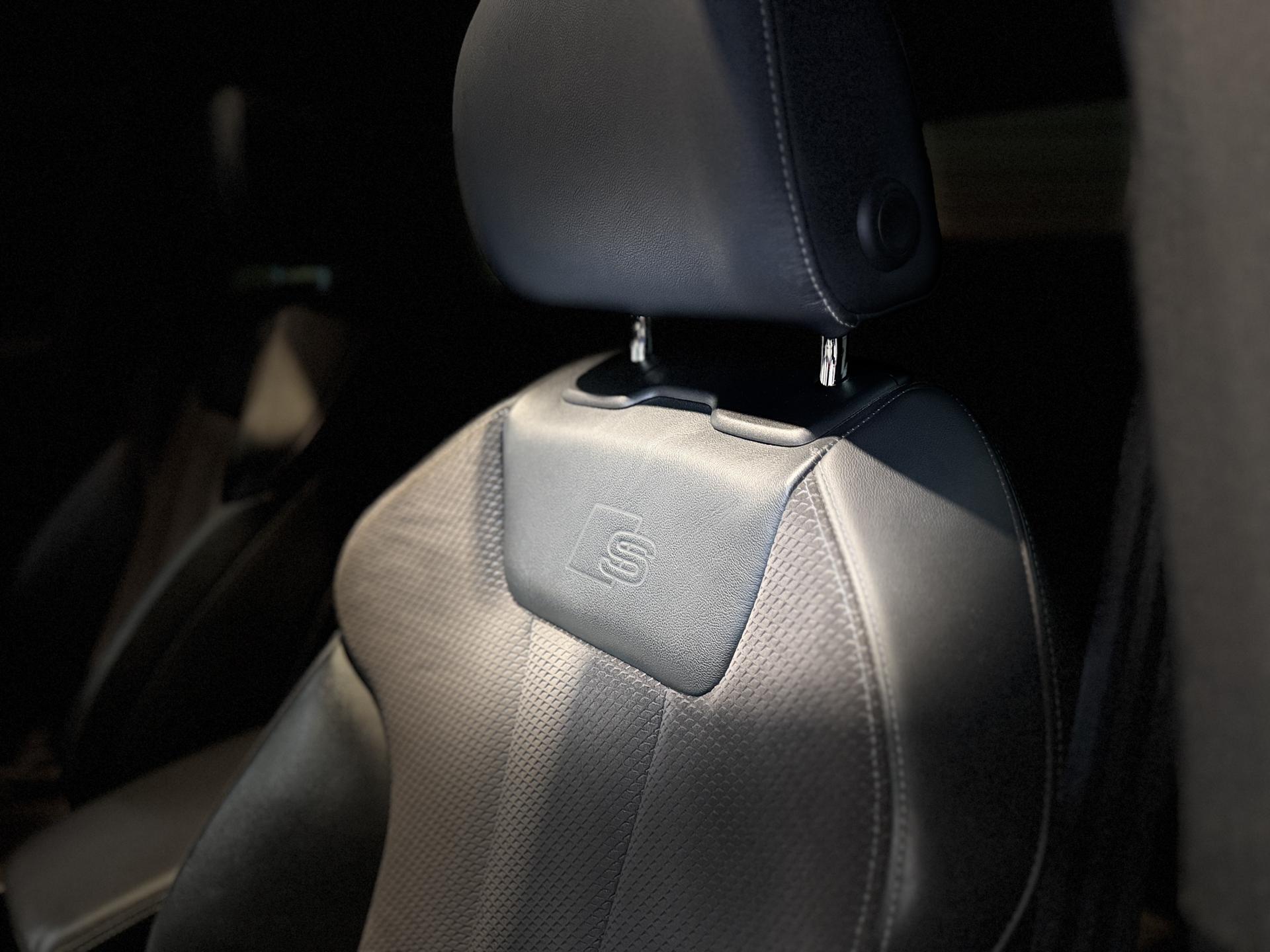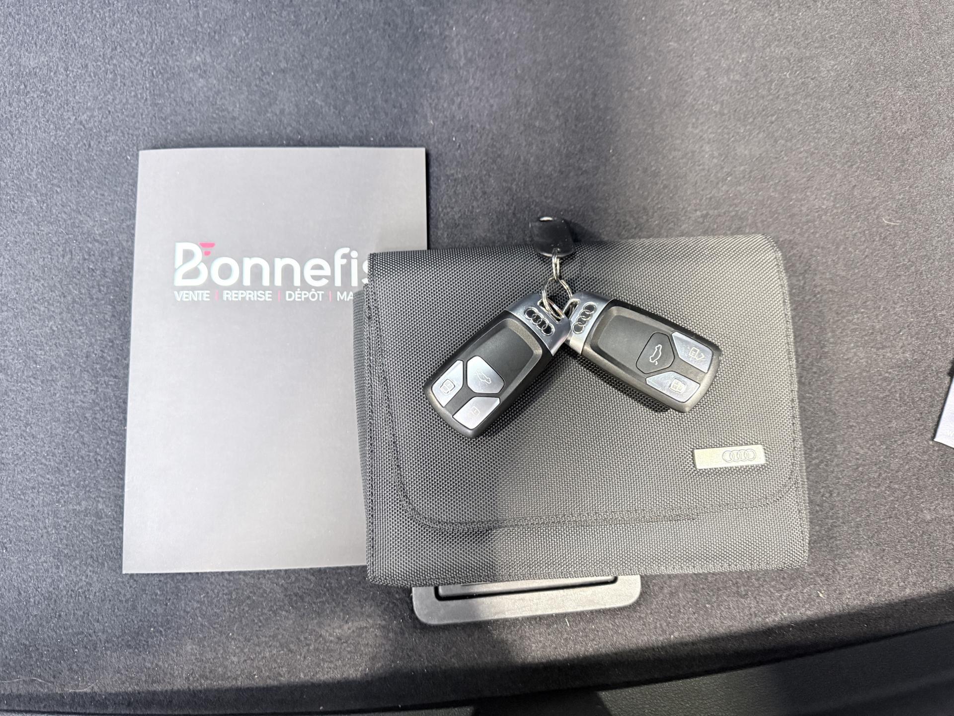 Nombreuses options : GPS, caméra de recul, Apple Carplay, radars avants et arrières de détection d'obstacles, Phares Audi Matrix LED ( 1 916 EUR ), Toit ouvrant coulissant/relevable électriquement en verre de sécurité, teinté et pare-soleil réglable en continu ( 1 266 EUR ), Affichage tête haute ( 991 EUR ), Peinture métallisée ( 841 EUR ), Bang & Olufsen Sound System avec son en 3D ( 858 EUR ), Sièges AV réglables électriquement ( 775 EUR ), Clé confort (Keyless entry) ( 575 EUR ), Vitres surteintées (Privacy Glass) ( 425 EUR ), Sièges AV chauffants ( 366 EUR ), Audi Phone Box avec charge du téléphone par induction (standard Qi) ( 341 EUR ), Réception radio numérique (DAB) ( 341 EUR ), Système de lecture des panneaux de signalisation par caméra ( 308 EUR ), Audi Park Assist ( 275 EUR ), Rétroviseurs extérieurs réglables et escamotables électriquement, jour/nuit automatique, dégivrants des deux côtés et buses de lave-glaces dégivrantes ( 120 EUR ), Audi Hold Assist ( 83 EUR ), Augmentation de la capacité du réservoir d'AdBlue à 24 litres ( 50 EUR ), Adaptive Cruise Control stop & go avec Assistant de conduite en embouteillage, Assistant de conduite efficiente, Audi Park Assist incluant Audi Parking System Plus, Audi Pre Sense Front avec Assistant d'évitement collision et Assistant changement direction, Console centrale et porte-boissons AV éclairés, Diffuseur d'air en Gris Crépuscule mat, Diffuseurs d'air au design résolument sportif, Eclairage de la zone des pieds, Eclairage des portières et des poignées de portières intérieures, Eclairage des seuils de portes, Eclairage périphérique dans les poignées de portières extérieures, Emblème S-Line sur les ailes AV, Extension de bas de caisse noire, Inserts dans le pare-chocs AR avec structure alvéolée, Lave-phares haute pression, Lecture des panneaux de signalisation, Moulures de seuil à l'AV avec insert en aluminium et inscription S, éclairées, Pack Audi Lane Assist, Pare-chocs AV/AR, grilles d'entrée d'air latérales en Noir Titane mat avec applications chromées, Caméras périphériques incluant caméra de recul, Sortie d'échappement chromées (simples ou doubles selon la motorisation), ...