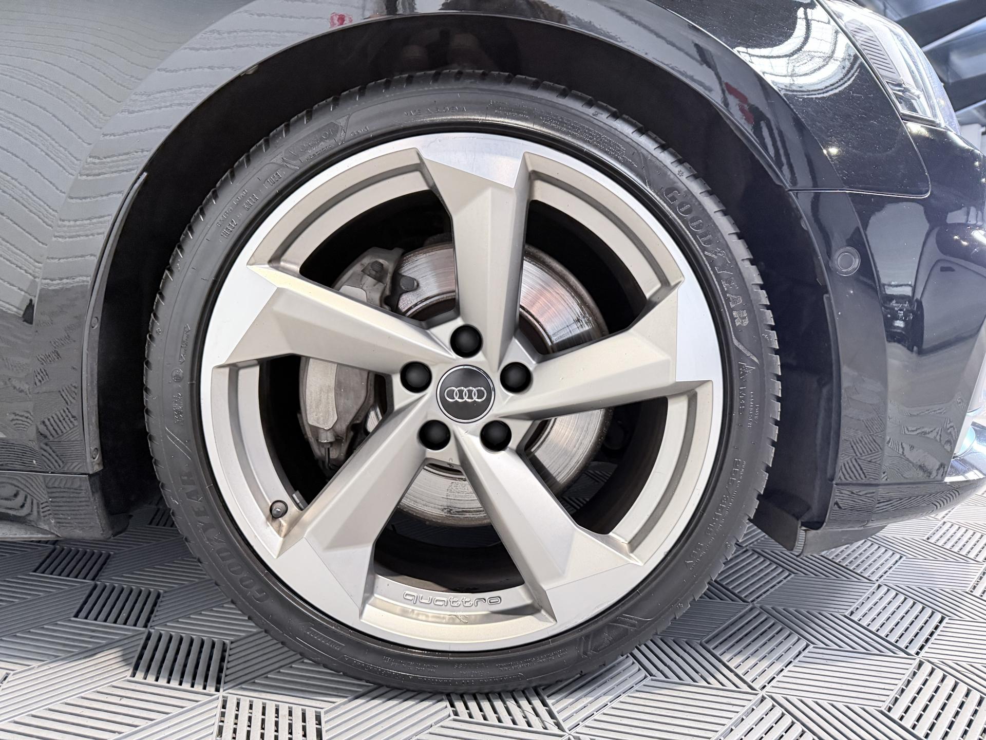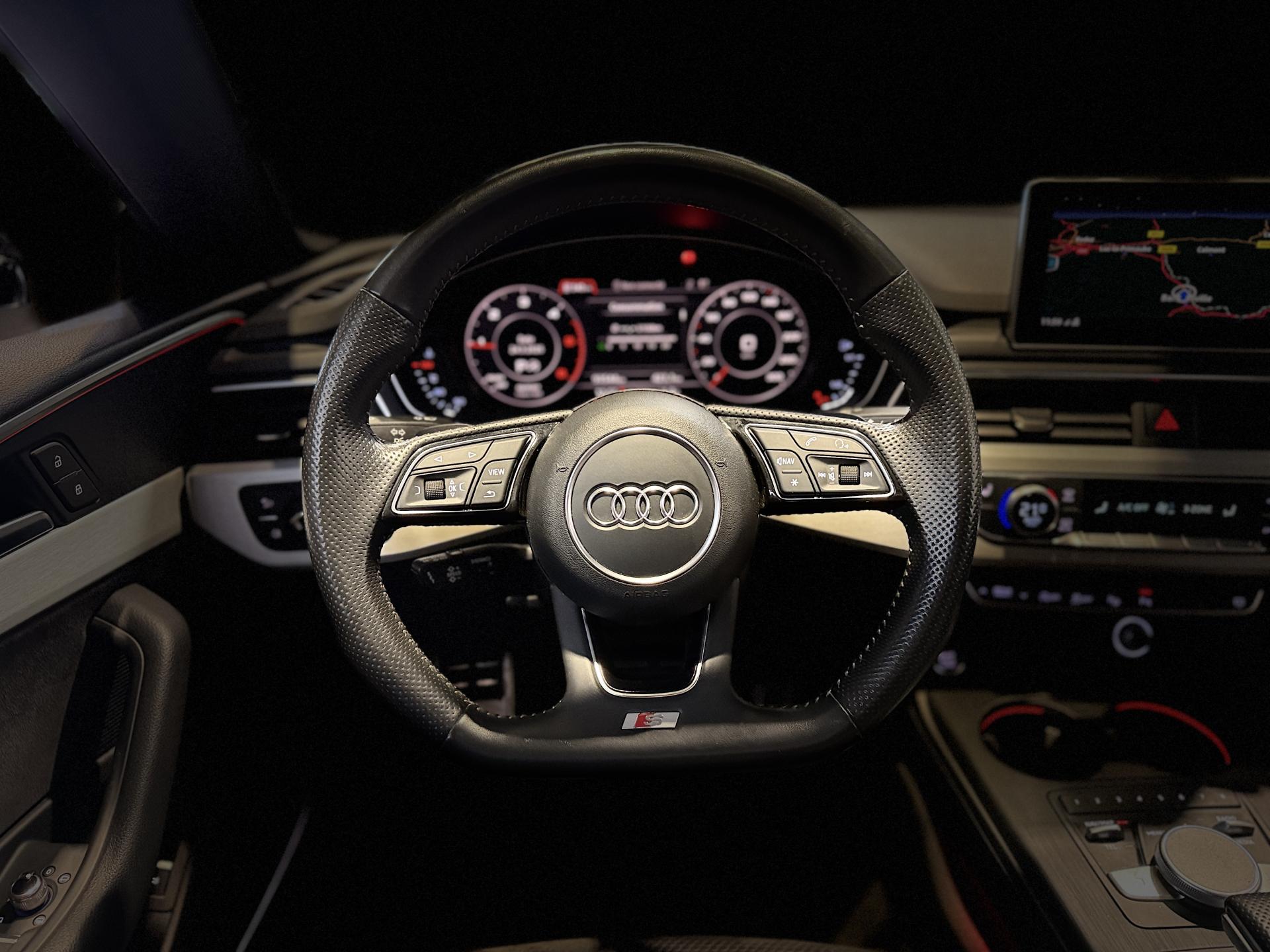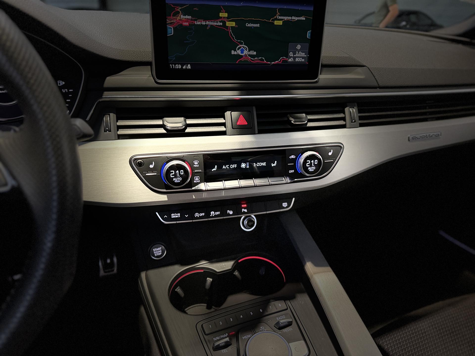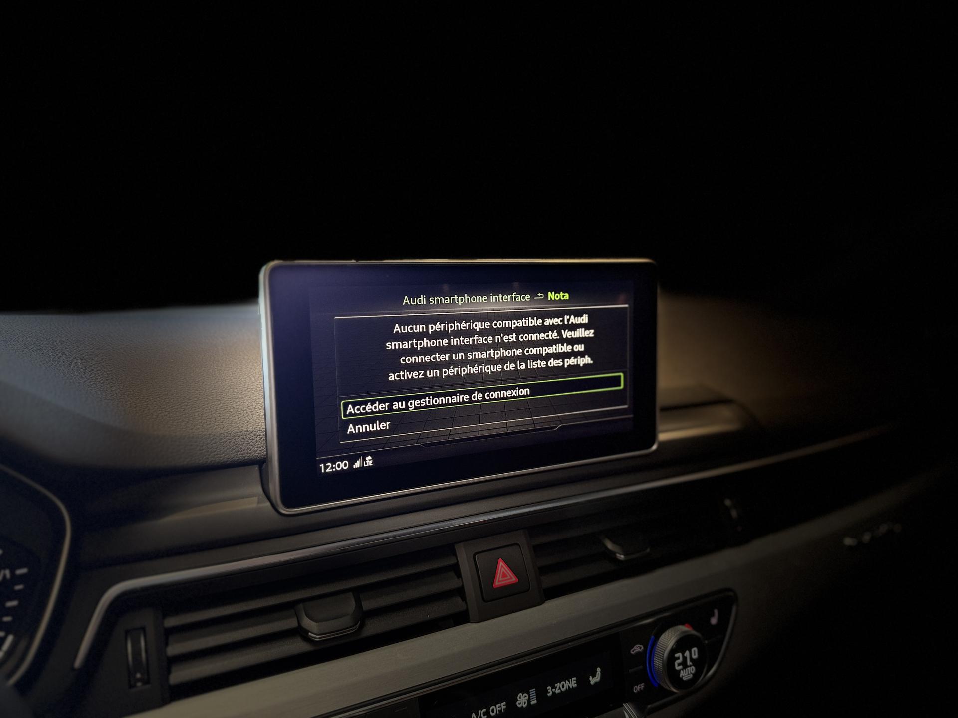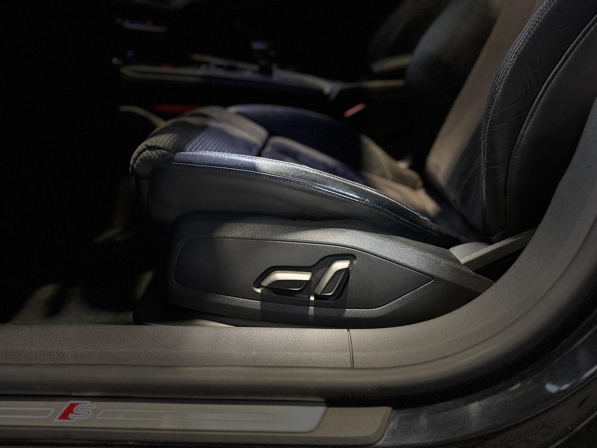 Nombreuses options : GPS, caméra de recul, Apple Carplay, radars avants et arrières de détection d'obstacles, Phares Audi Matrix LED ( 1 916 EUR ), Toit ouvrant coulissant/relevable électriquement en verre de sécurité, teinté et pare-soleil réglable en continu ( 1 266 EUR ), Affichage tête haute ( 991 EUR ), Peinture métallisée ( 841 EUR ), Bang & Olufsen Sound System avec son en 3D ( 858 EUR ), Sièges AV réglables électriquement ( 775 EUR ), Clé confort (Keyless entry) ( 575 EUR ), Vitres surteintées (Privacy Glass) ( 425 EUR ), Sièges AV chauffants ( 366 EUR ), Audi Phone Box avec charge du téléphone par induction (standard Qi) ( 341 EUR ), Réception radio numérique (DAB) ( 341 EUR ), Système de lecture des panneaux de signalisation par caméra ( 308 EUR ), Audi Park Assist ( 275 EUR ), Rétroviseurs extérieurs réglables et escamotables électriquement, jour/nuit automatique, dégivrants des deux côtés et buses de lave-glaces dégivrantes ( 120 EUR ), Audi Hold Assist ( 83 EUR ), Augmentation de la capacité du réservoir d'AdBlue à 24 litres ( 50 EUR ), Adaptive Cruise Control stop & go avec Assistant de conduite en embouteillage, Assistant de conduite efficiente, Audi Park Assist incluant Audi Parking System Plus, Audi Pre Sense Front avec Assistant d'évitement collision et Assistant changement direction, Console centrale et porte-boissons AV éclairés, Diffuseur d'air en Gris Crépuscule mat, Diffuseurs d'air au design résolument sportif, Eclairage de la zone des pieds, Eclairage des portières et des poignées de portières intérieures, Eclairage des seuils de portes, Eclairage périphérique dans les poignées de portières extérieures, Emblème S-Line sur les ailes AV, Extension de bas de caisse noire, Inserts dans le pare-chocs AR avec structure alvéolée, Lave-phares haute pression, Lecture des panneaux de signalisation, Moulures de seuil à l'AV avec insert en aluminium et inscription S, éclairées, Pack Audi Lane Assist, Pare-chocs AV/AR, grilles d'entrée d'air latérales en Noir Titane mat avec applications chromées, Caméras périphériques incluant caméra de recul, Sortie d'échappement chromées (simples ou doubles selon la motorisation), ...