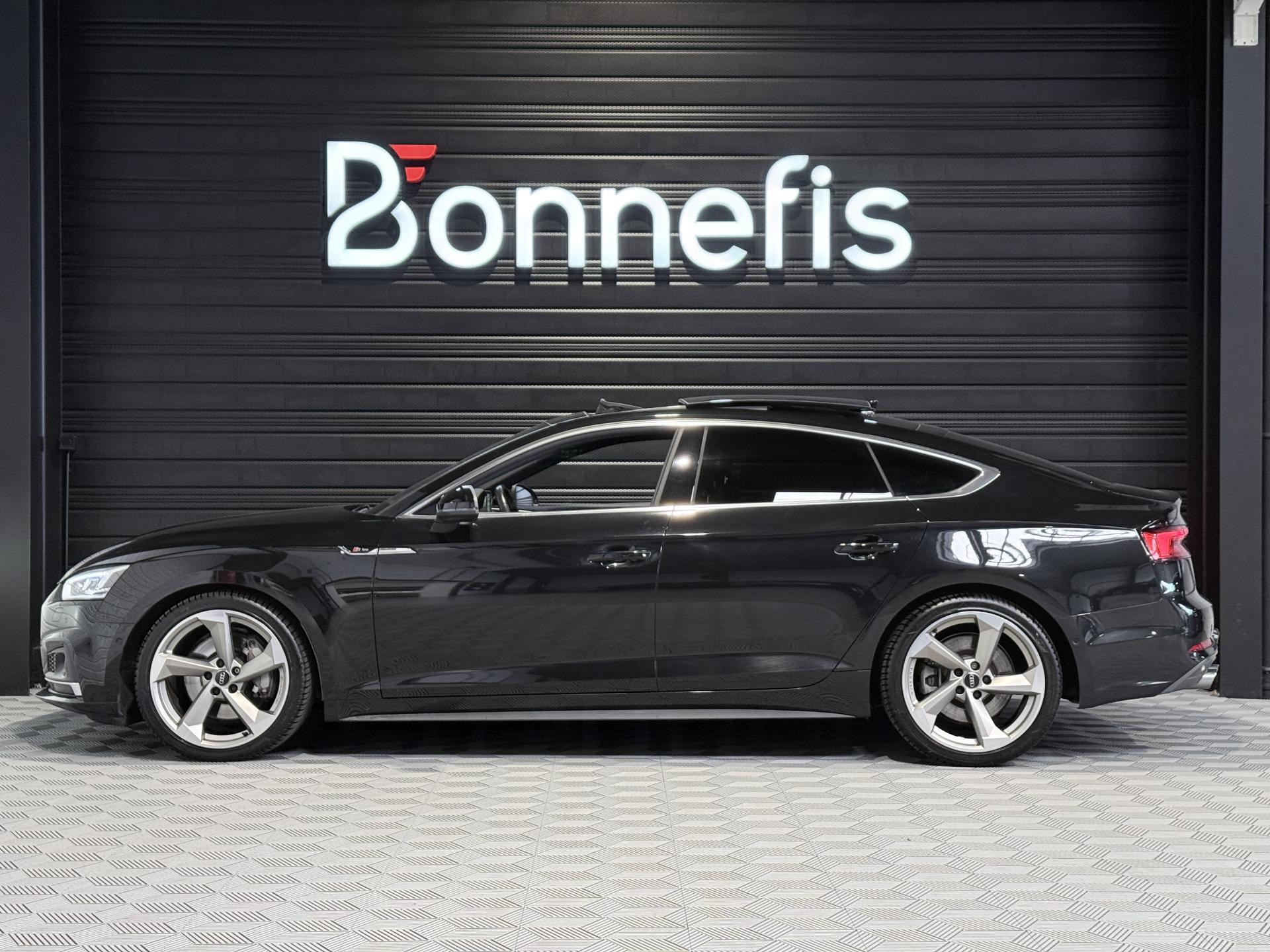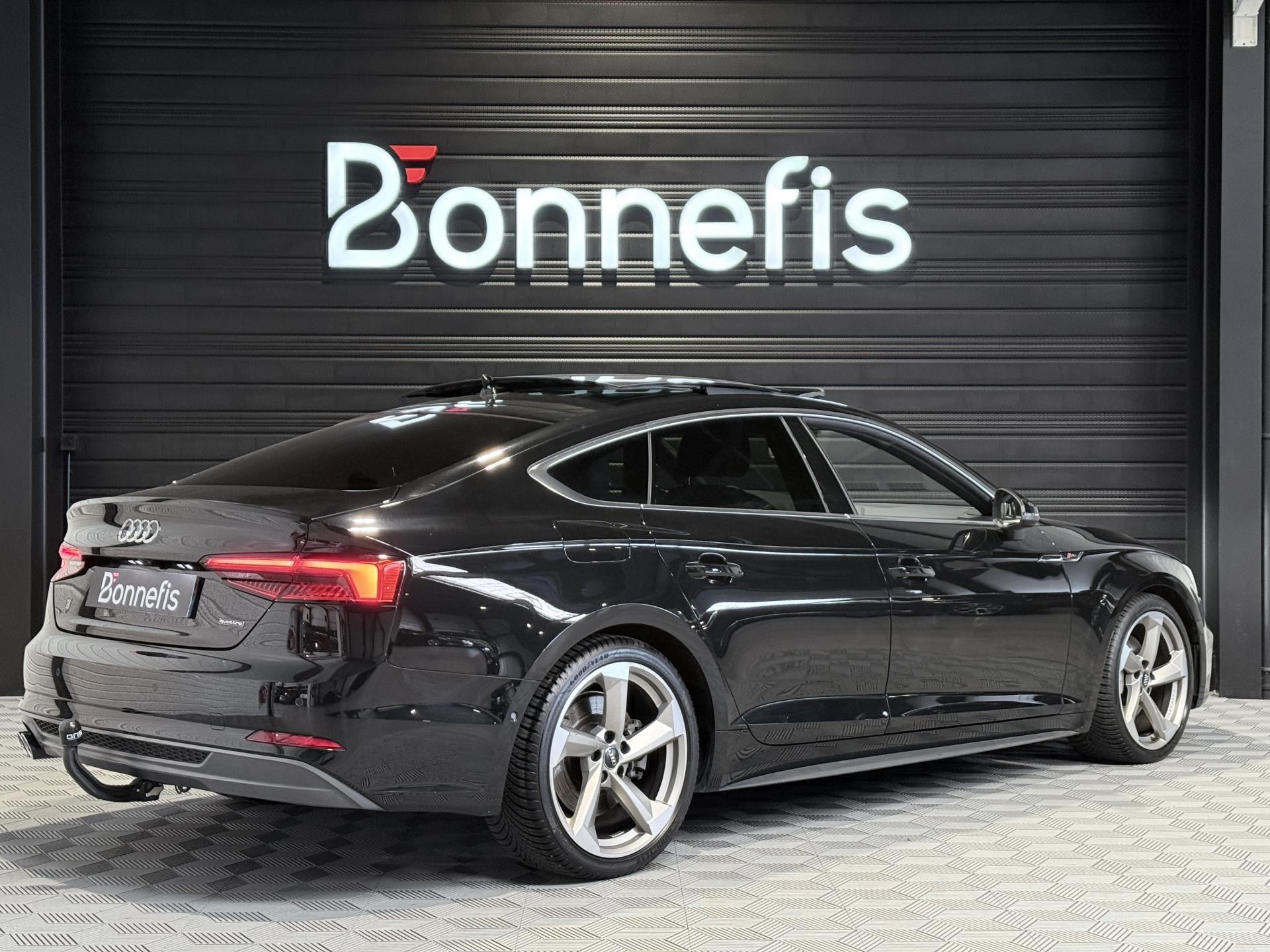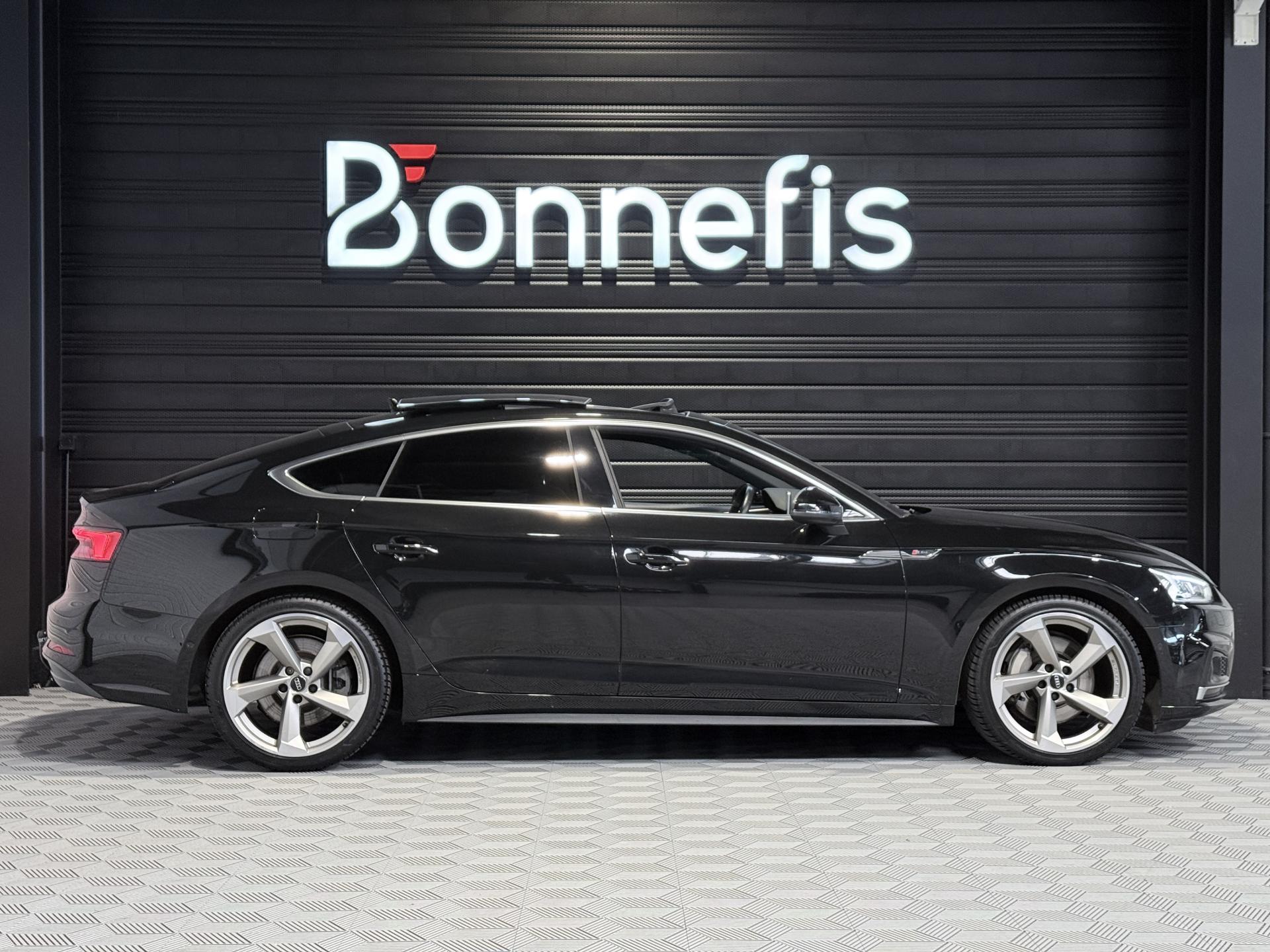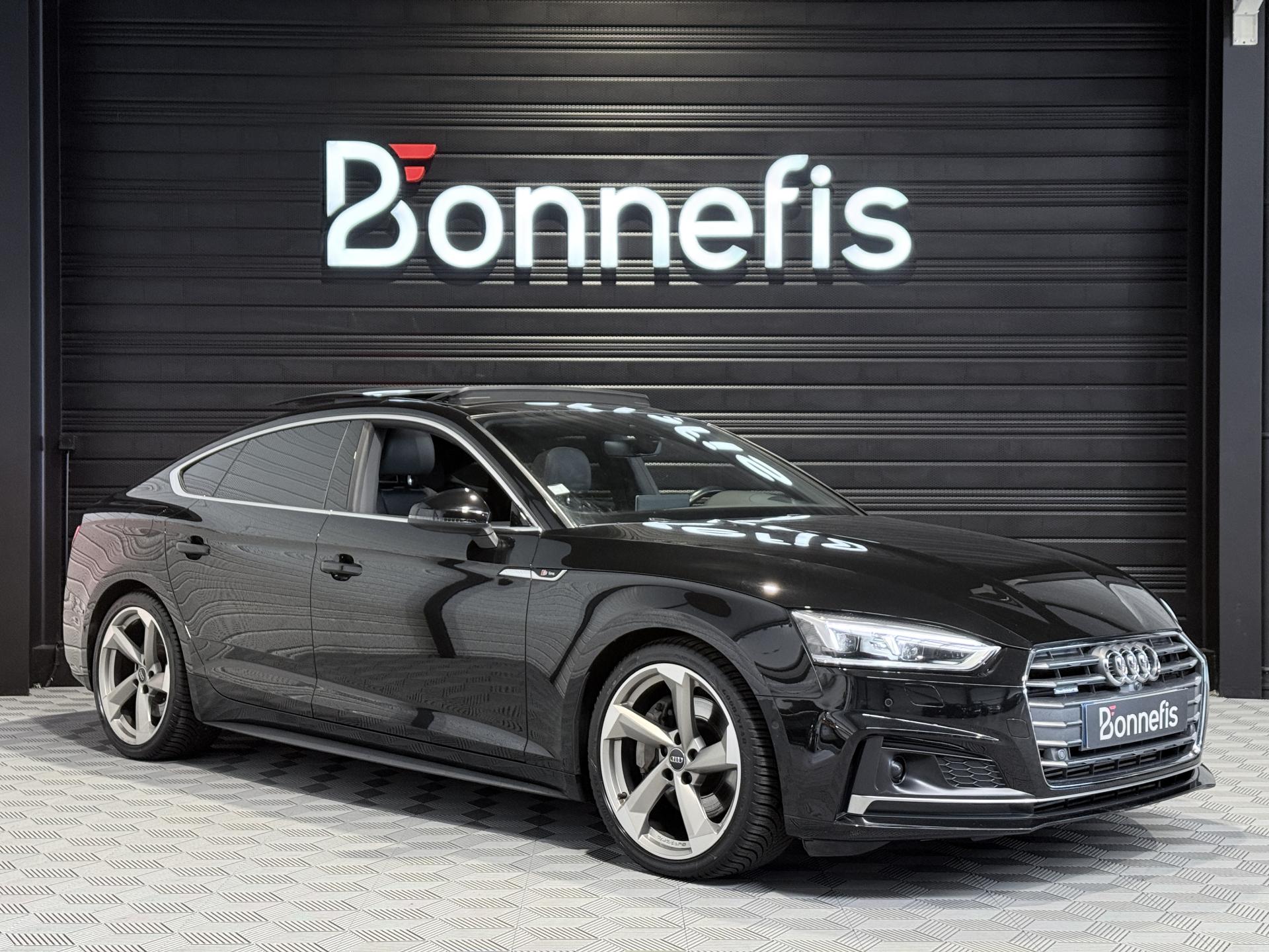 AUDI A5 SPORTBACK 3.0 V6 TDI 272Ch BVA Tiptronic 8 Quattro S Line, extérieur Noir métallisée, intérieur Sellerie Cuir/Alcantara avec logo S line ( 508 EUR ), 16 cv, 5 portes, première mise en circulation le 16/10/2017.