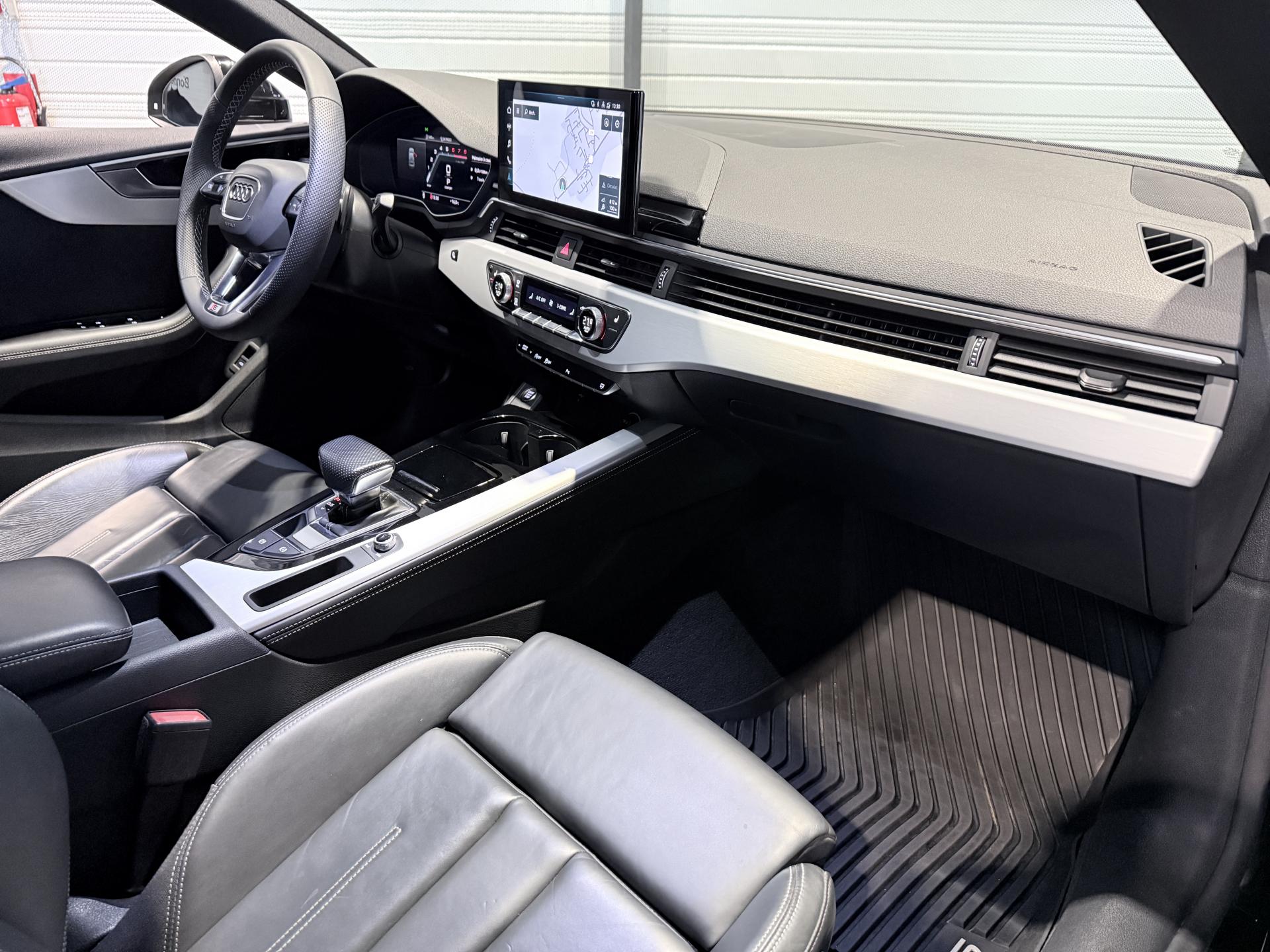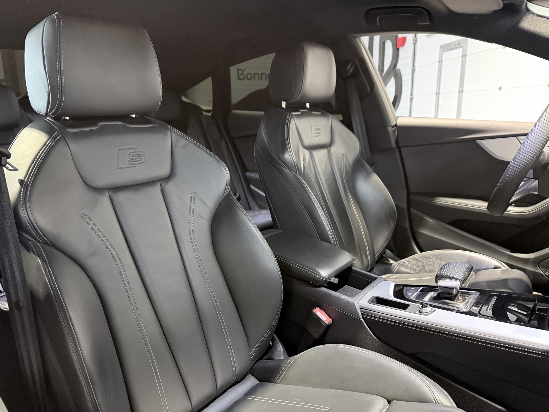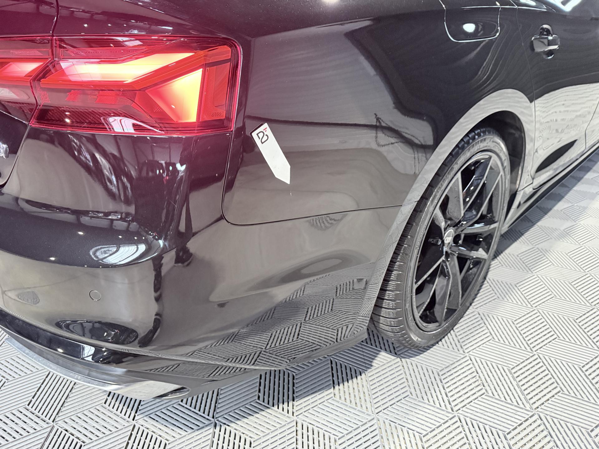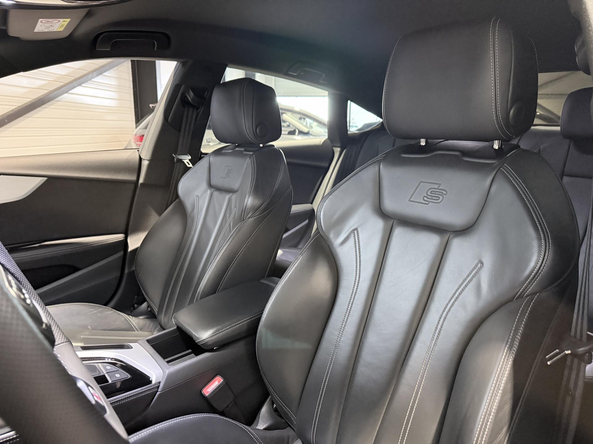 AUDI A5 Sportback 40 TFSI 204Ch BVA S tronic 7 S Line, extérieur Noir métallisée ( Noir Mythic ) ( 883 EUR ), intérieur Noir Sellerie Cuir Nappa Fin avec logo S dans le dossier des sièges AV ( 1 458 EUR ), 11 cv, 5 portes, première mise en circulation le 27/02/2023.