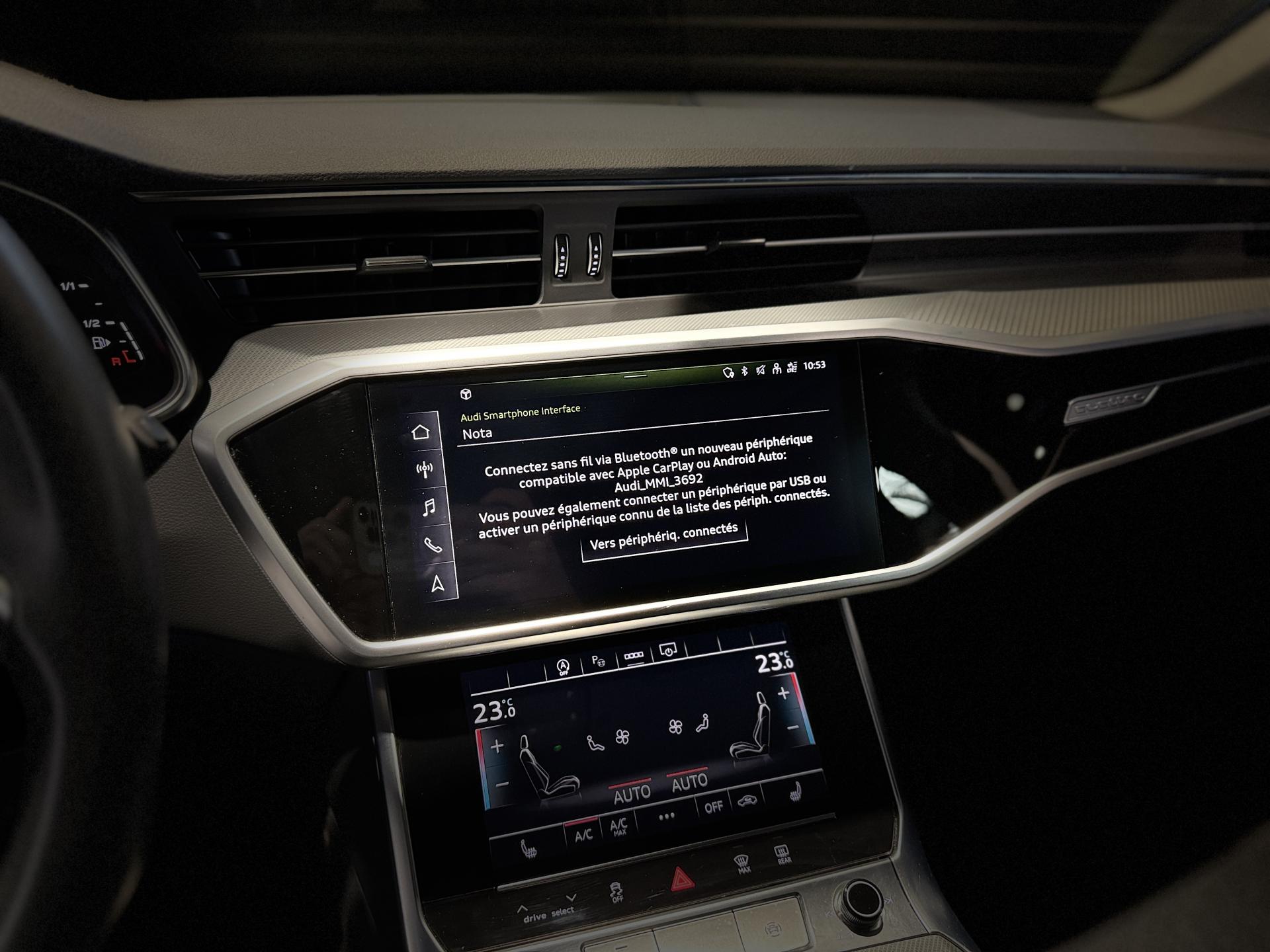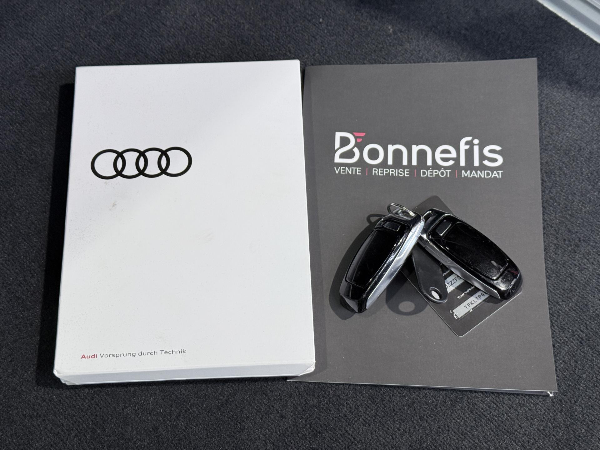 Nombreuses options : GPS, Caméra de recul, Apple Carplay, Clé confort avec déverrouillage du coffre par capteur (sans Safelock) ( 812 EUR ), Climatisation automatique confort 4 zones ( 791 EUR ), Sièges AV à réglages électriques et à mémoire pour siège conducteur ( 958 EUR ), Vitrage Privacy (vitres AR surteintées) ( 458 EUR ), Airbags latéraux AV/AR incluant système d'airbags de tête ( 437 EUR ), Sièges AV chauffants ( 375 EUR ), Essuie-glace adaptatifs avec buses de lavage intégrées, dégivrants ( 354 EUR ), Audi Virtual cockpit plus ( 250 EUR ), Rétroviseurs extérieurs réglables, dégivrants et rabattables électriquement avec fonction jour/nuit automatique des deux côtés, fonction mémoire, rabat automatique pour le rétroviseur extérieur côté passager AV ( 104 EUR ), Fixation pour sièges enfants ISOFIX pour le siège passager AV avec commande de sécurité enfant électrique sur les portières AR ( 41 EUR ), Assistant d'évitement d'urgence, Assistant d'efficience, Assistant de changement de direction, Assistant de conduite adaptatif incluant assistant de conduite en embouteillage, Assistant de conduite adaptatif incluant assistant de freinage d'urgence, Assistant de maintien de la vitesse adaptatif, Caméra de reconnaissance et lecture des panneaux de circulation, Caméra multifonction pour système d'assistance à la conduite, Pack Audi Lane Assist, Pare-brise en verre de sécurité feuilleté athermique, Rétroviseur intérieur jour/nuit automatique sans encadrement (Frameless), Vitres athermiques sur les côtés et à l'AR lunette AR dégivrante, avec minuterie, ...