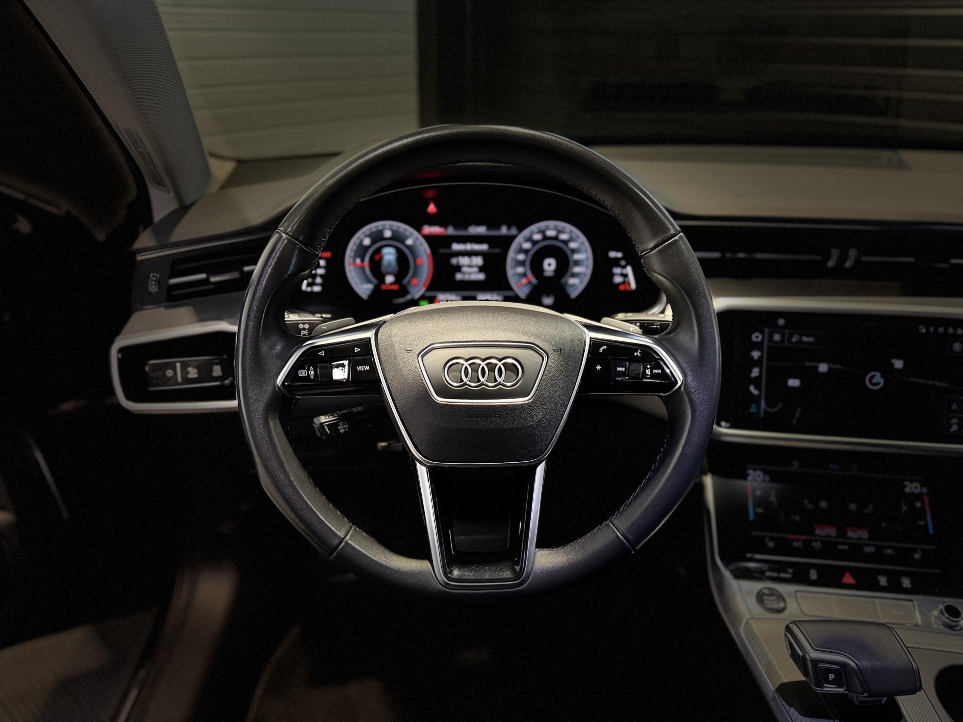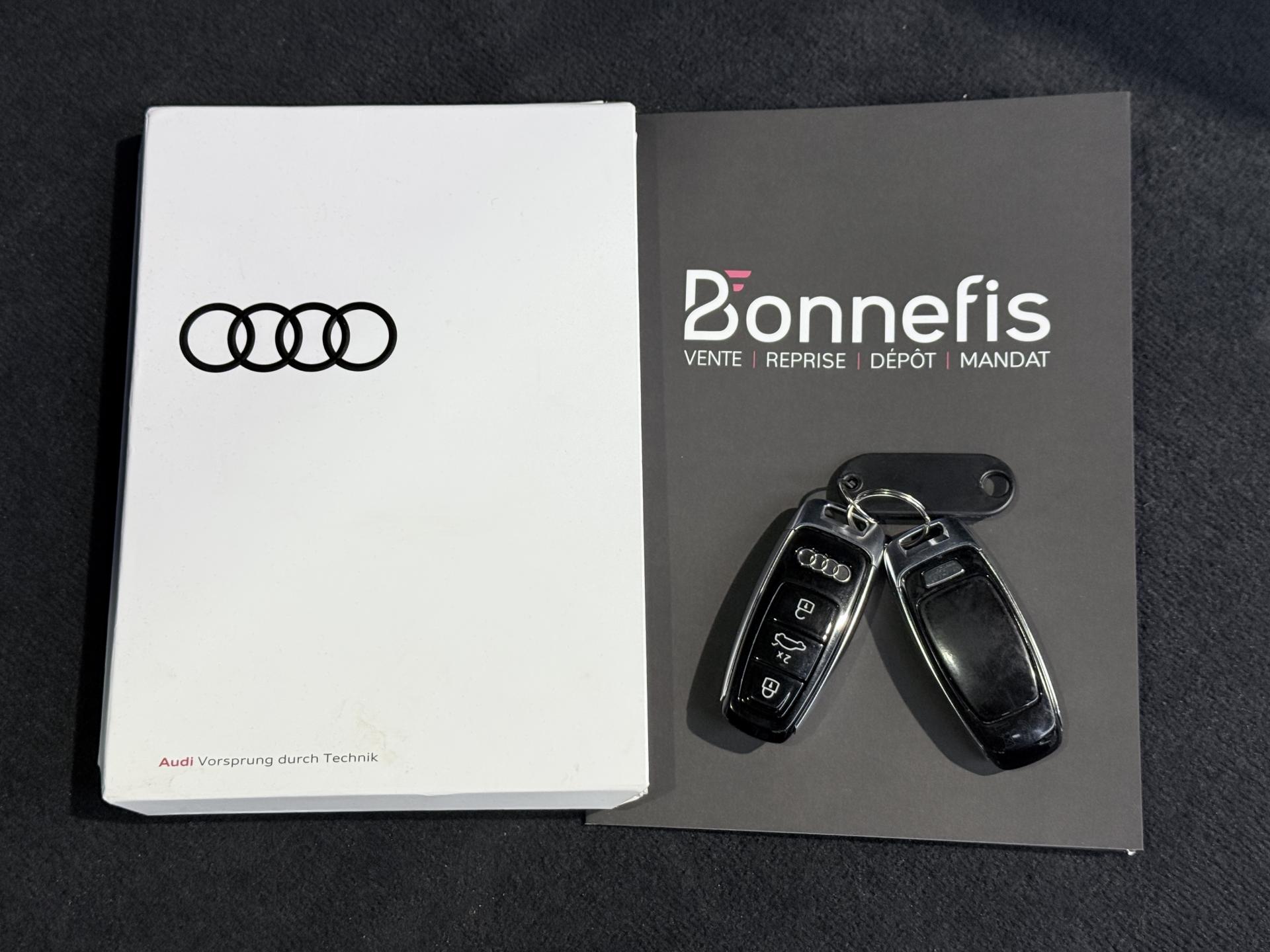 Nombreuses options : GPS, caméra de recul, Apple Carplay, radars avants et arrières de détection d'obstacles, Sièges AV à réglages électriques et à mémoire pour siège conducteur ( 958 EUR ), Clé confort avec déverrouillage du coffre par capteur (sans Safelock) ( 812 EUR ), Climatisation automatique confort 4 zones ( 791 EUR ), Vitrage Privacy (vitres AR surteintées) ( 458 EUR ), Airbags latéraux AV/AR incluant système d'airbags de tête ( 437 EUR ), Sièges AV chauffants ( 375 EUR ), Essuie-glace adaptatifs avec buses de lavage intégrées, dégivrants ( 354 EUR ), Audi Virtual cockpit plus ( 250 EUR ), Rétroviseurs extérieurs réglables, dégivrants et rabattables électriquement avec fonction jour/nuit automatique des deux côtés, fonction mémoire, rabat automatique pour le rétroviseur extérieur côté passager AV (manoeu ( 104 EUR ), Fixation pour sièges enfants ISOFIX pour le siège passager AV avec commande de sécurité enfant électrique sur les portières AR ( 41 EUR ), Assistant d'évitement d'urgence, Assistant d'efficience, Assistant de changement de direction, Assistant de conduite adaptatif incluant assistant de conduite en embouteillage, Assistant de conduite adaptatif incluant assistant de freinage d'urgence, Assistant de maintien de la vitesse adaptatif, Baguettes décoratives noires sur les vitres latérales, Calandre Singleframe Noire, Caméra de reconnaissance et lecture des panneaux de circulation, Pare-chocs AV/AR Noirs, ...