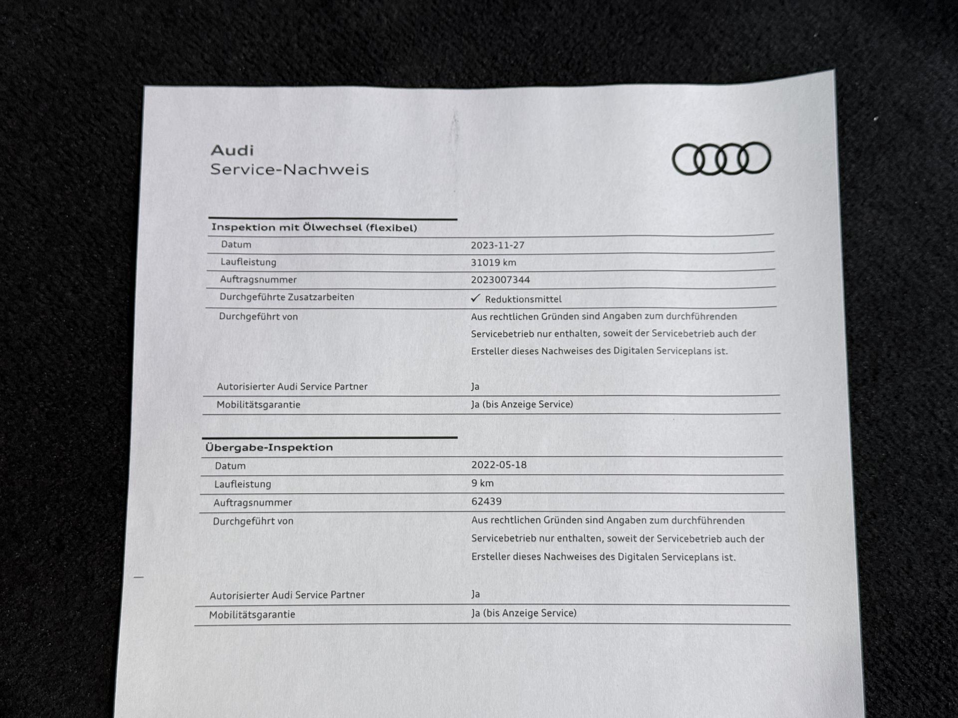 - 1er entretien fait le 18/05/2022 à 9Km chez Audi. ( Contrôle à la livraison )