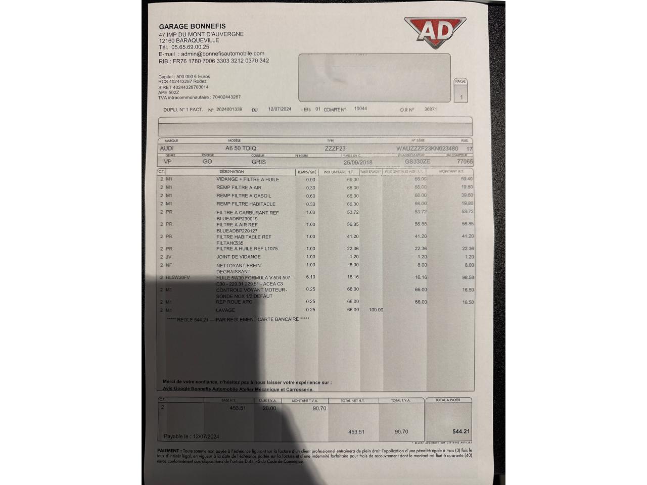 Audi A6 Avant 50 TDI 286Ch Quattro TipTronic 8 S Line, break, gris daytona ( 1 000 € ), 17 cv, 5 portes, première mise en circulation le 25/09/2018.