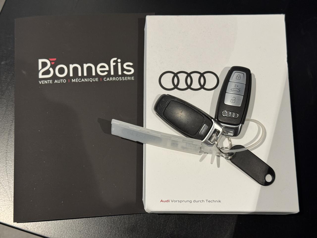 Nombreuses options : GPS, caméra de recul, Apple CarPlay, radars avants et arrières de détection d'obstacles, Jantes en aluminium coulé Audi Sport style 5 branches en "V" en étoile, finition titane mat, polies brillant ( 1 666 € ), Appuie-tête confort pour sièges AV ( 145 € ), Etriers de freins rouges, Audi Pre Sense front, Audi smartphone interface, Audi Virtual Cockpit, Avertissement de franchissement de ligne, Caméra multifonction pour système d'assistance à la conduite, Ciel de pavillon en tissu Noir, Climatisation automatique confort 4 zones, Climatisation stationnaire, Pare-brise en verre de sécurité, Régulateur/Limiteur de vitesse, Rétroviseur intérieur avec réglage jour/nuit automatique, Rétroviseurs extérieurs réglables électriquement, Sellerie mixte Alcantara Fréquence/Cuir, Vitres athermiques, hayon électrique, ...