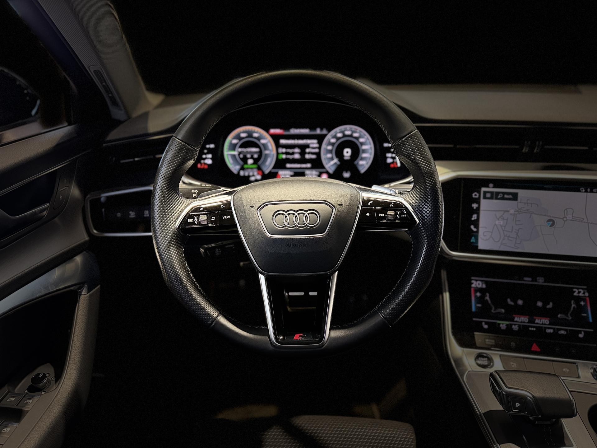 Audi A6 Avant Competition 55 TFSIe 367 Ch S Tronic 7 Quattro, extérieur gris métallisée ( Argent Fleuret )( 1 041 € ), intérieur Sellerie Sellerie mixte Alcantara Fréquence/Cuir, 16 cv, 5 portes, première mise en circulation le 16/04/2021.