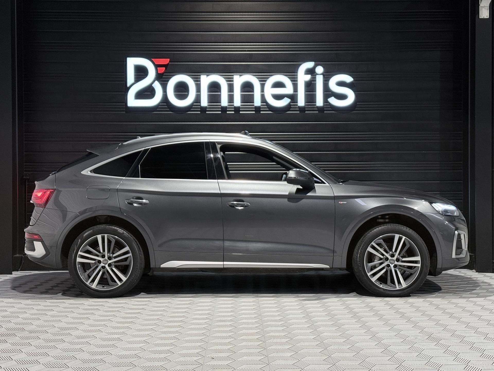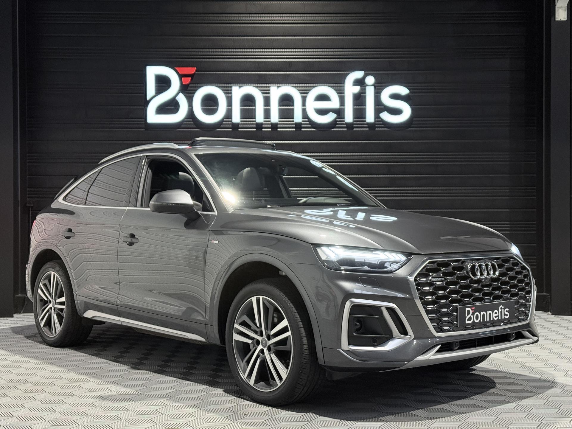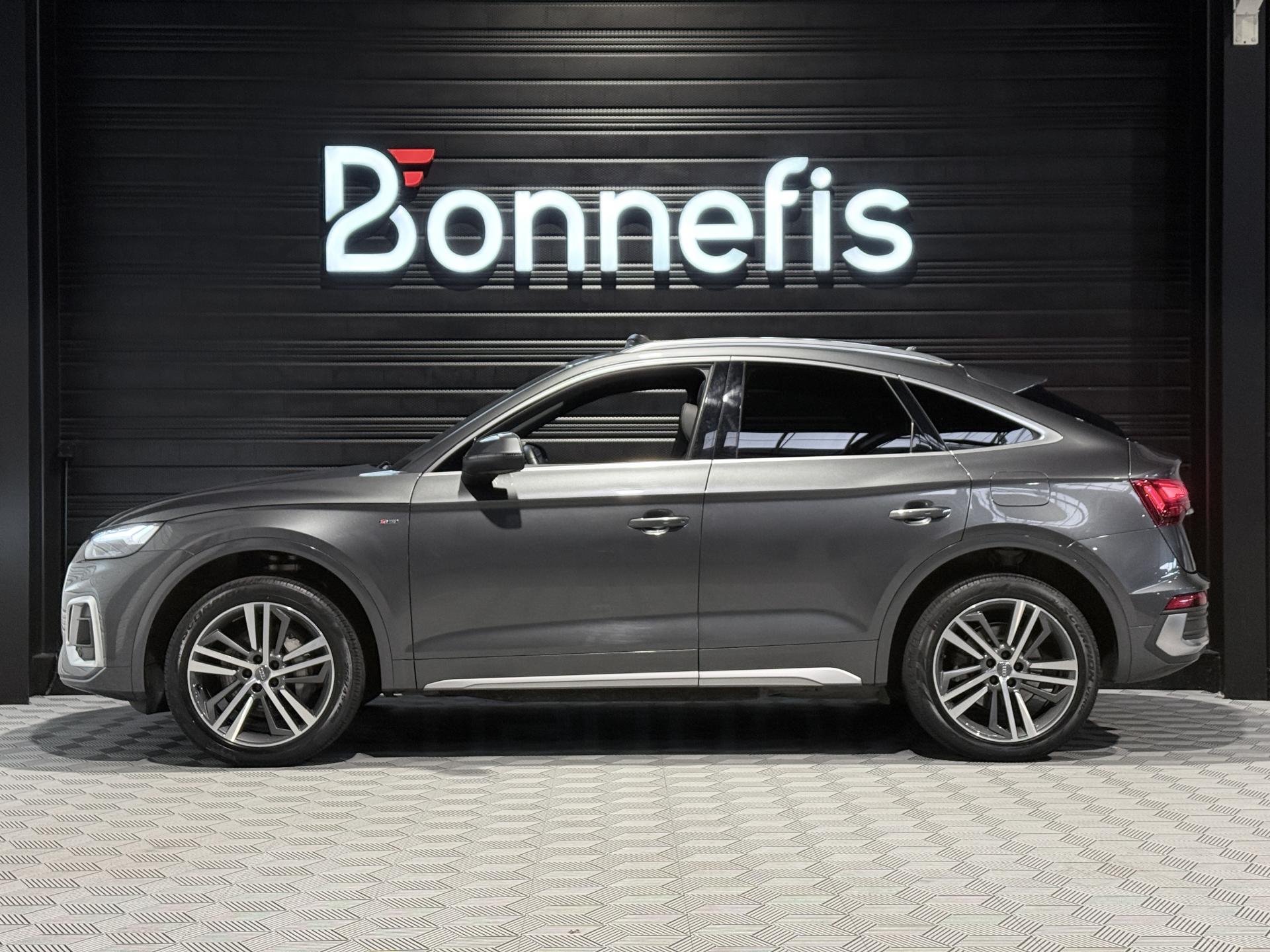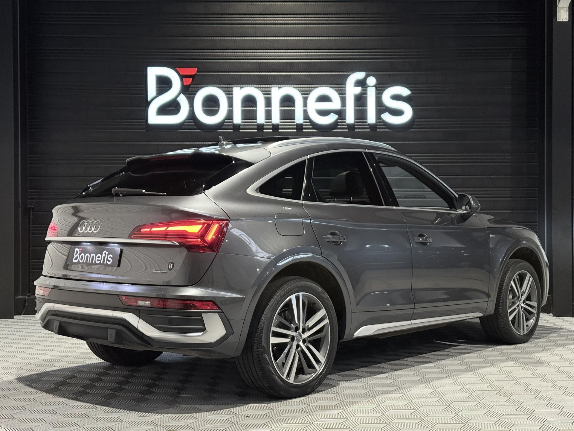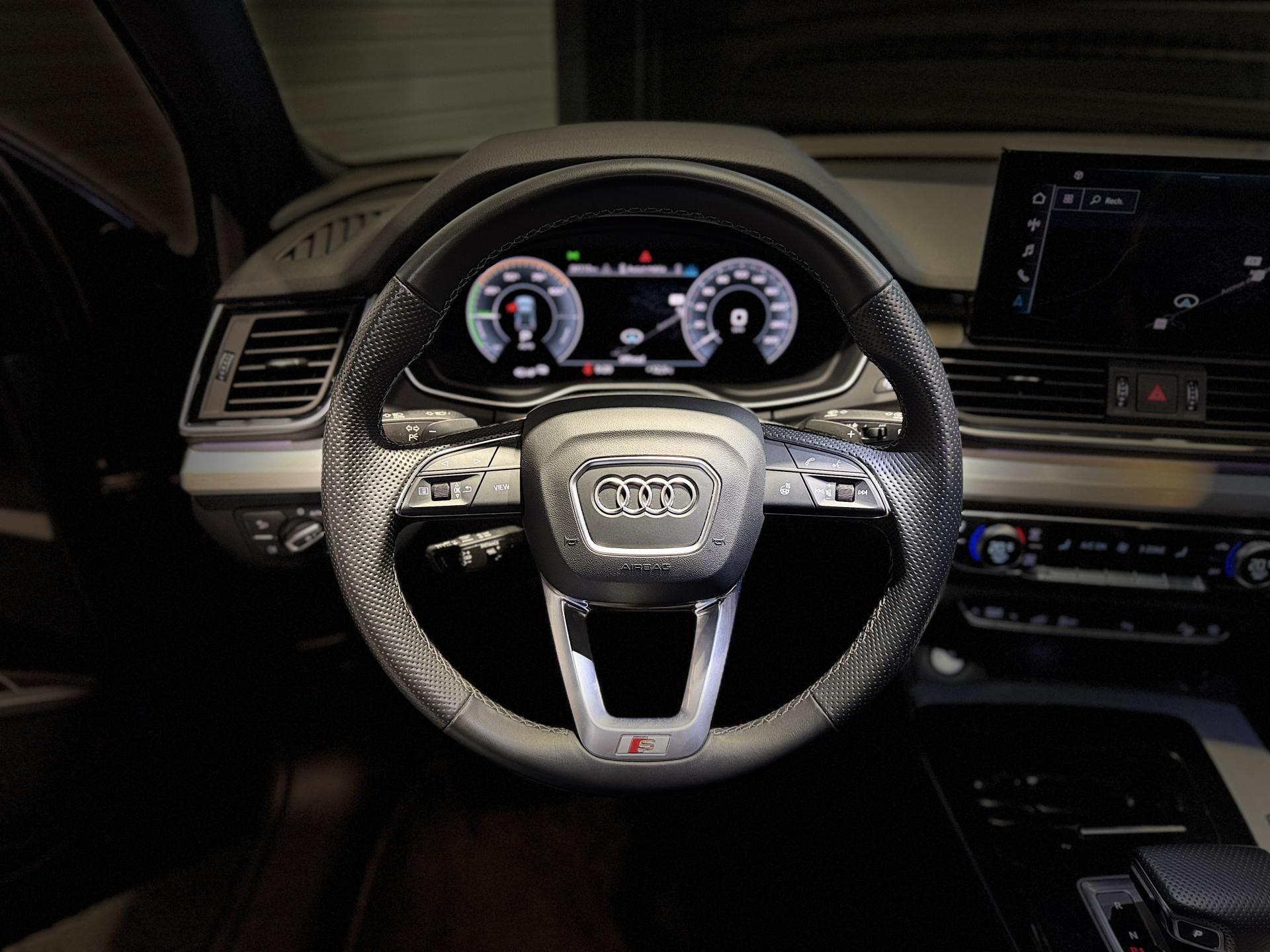 Audi Q5 Sportback 50 TFSIe 299 Ch BVA S tronic 7 Quattro S line, extérieur gris daytona, intérieur sellerie Microfibre Dinamica Fréquence/Cuir combinés ( 508 € ), 16 cv, 5 portes, première mise en circulation le 11/05/2023.