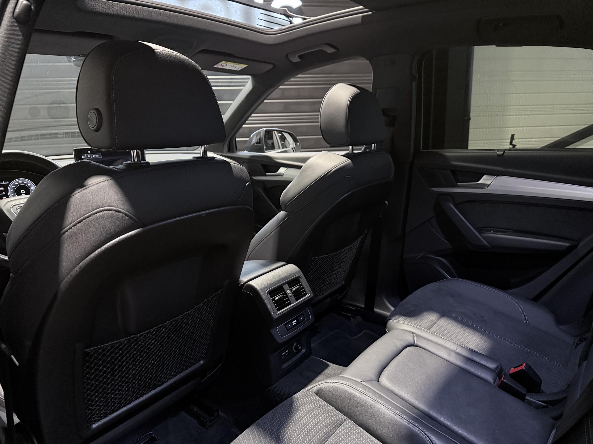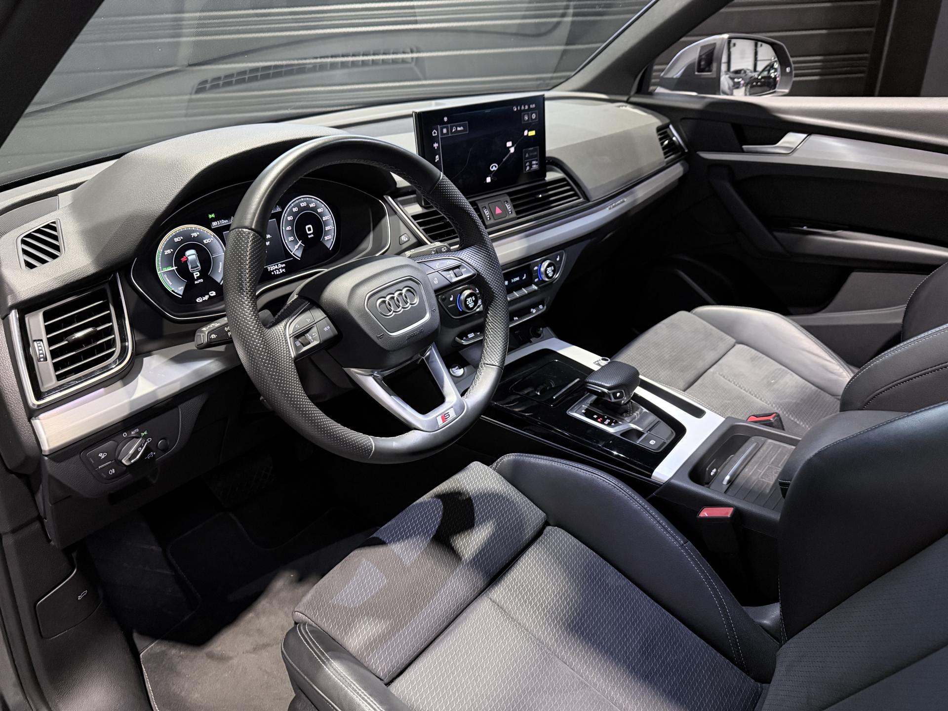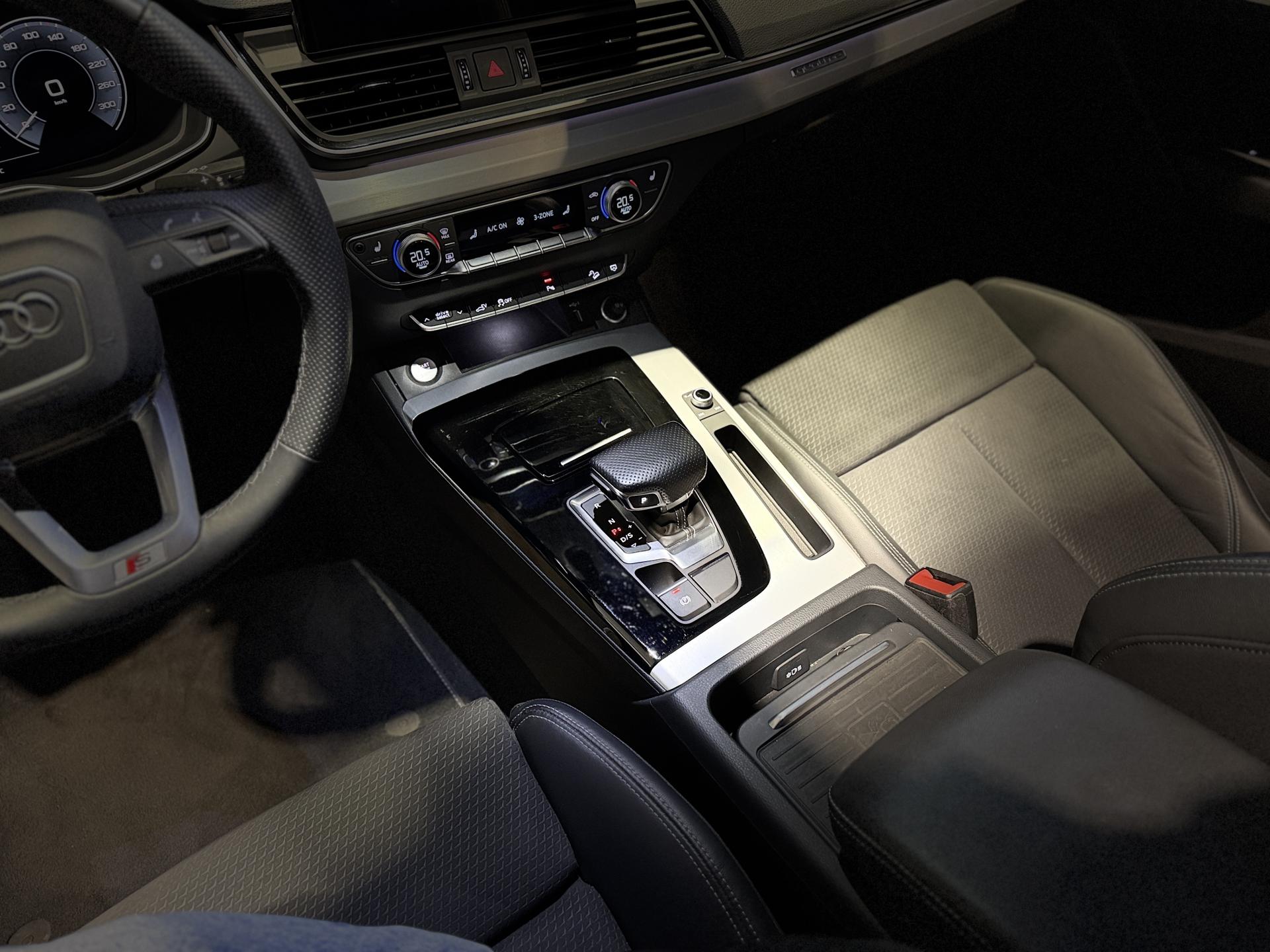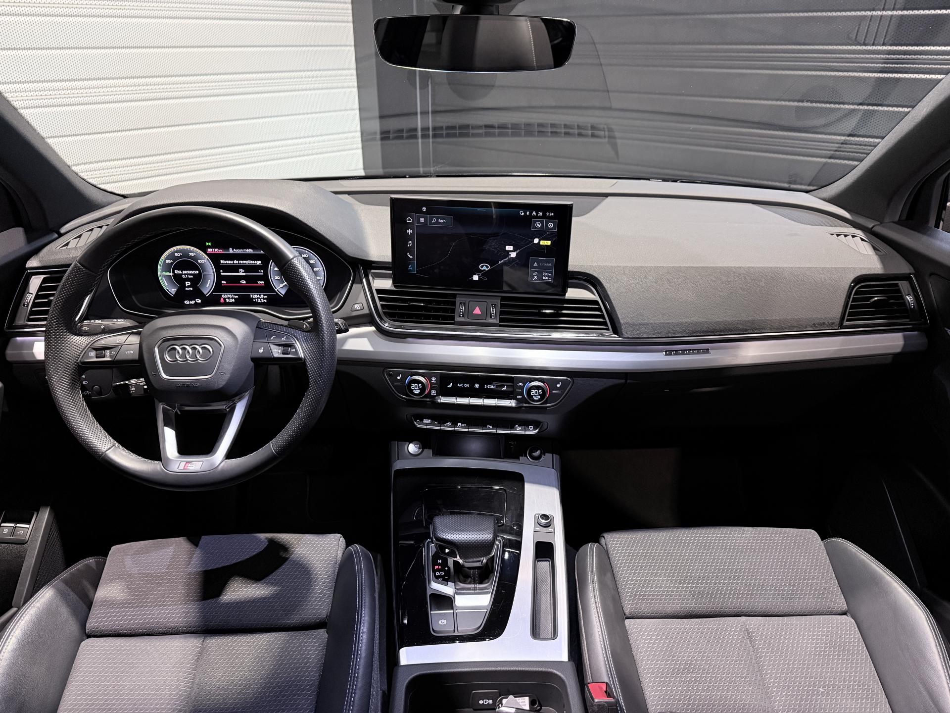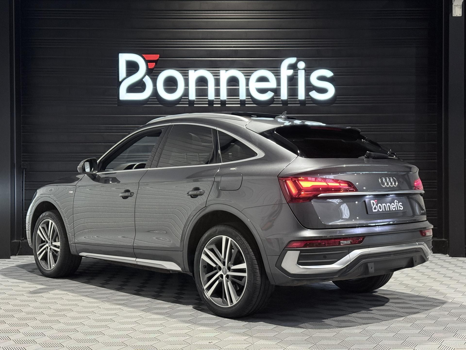 Audi Q5 Sportback 50 TFSIe 299 Ch BVA S tronic 7 Quattro S line, extérieur gris daytona, intérieur sellerie Microfibre Dinamica Fréquence/Cuir combinés ( 508 € ), 16 cv, 5 portes, première mise en circulation le 11/05/2023.