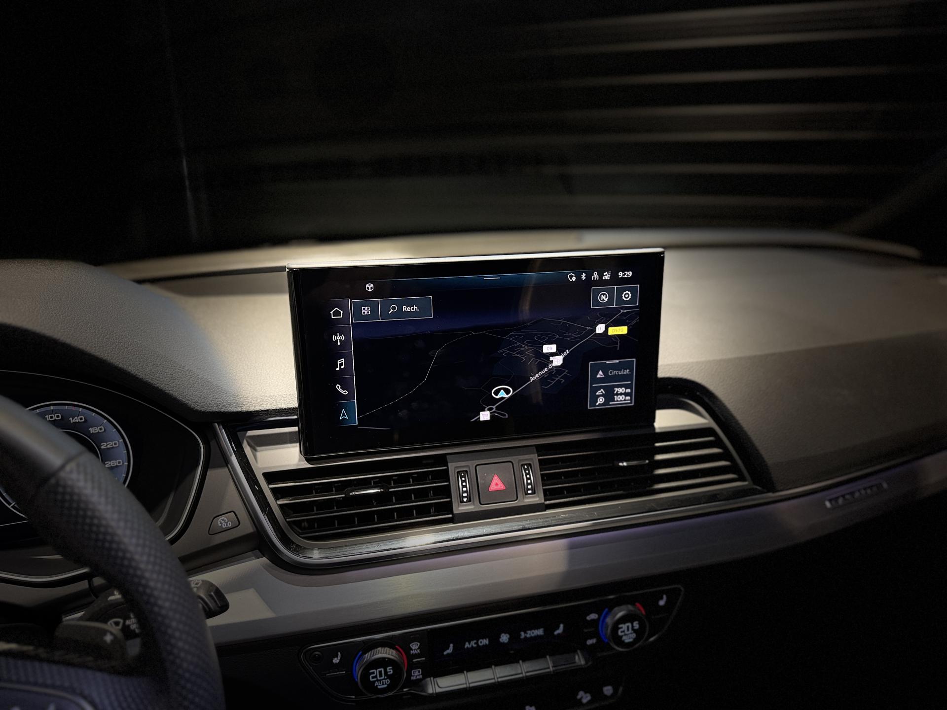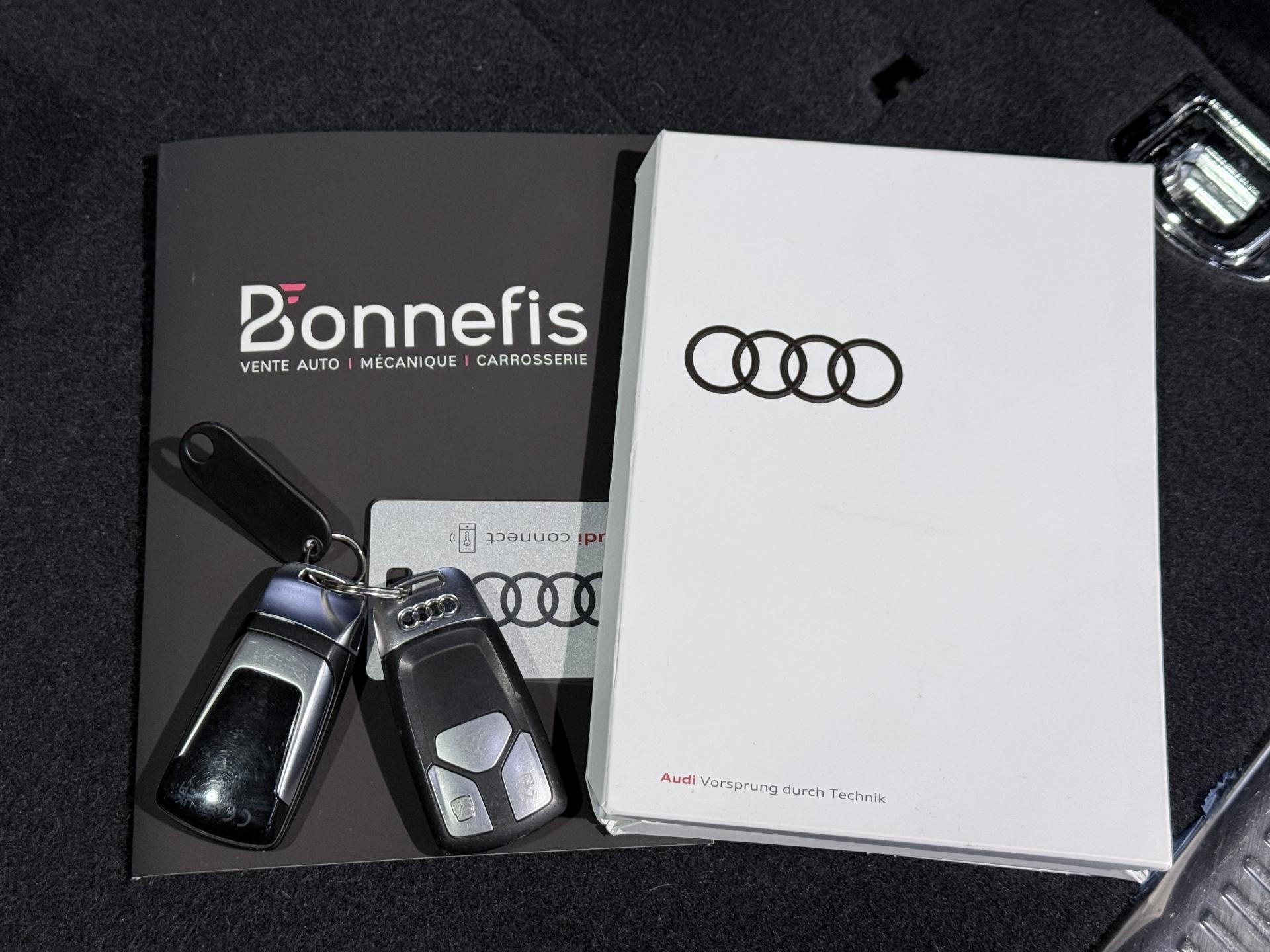 Nombreuses options : GPS, caméra de recul, Apple Carplay, radars avants et arrières de détection d'obstacles, toit panoramique en verre (en 2 parties) ( 1 558 € ), crochet d'attelage escamotable mécaniquement, avec déverrouillage électrique, col de cygne et boule en acier forgé ( 833 € ), sièges AV chauffants ( 391 € ), rampes de pavillon en aluminium anodisé ( 337 € ), stores pare-soleil manuels pour les vitres de portes AR ( 208 € ), Audi Phone Box avec charge du téléphone par induction (standard Qi) ( 208 € ), porte-boissons climatisé sur la console centrale ( 158 € ), clé Audi connect ( 125 € ), volant 3 branches multifonction plus en Cuir chauffant avec palettes de changement de vitesse ( 83 € ), fixation pour sièges enfants ISOFIX pour le siège passager AV avec commande de sécurité enfant électrique sur les portières AR et commande de désactivation de l’airbag passager AV ( 83 € ), Audi Virtual Cockpit combiné d’instruments entièrement numérique de 12.3" avec affichage haute résolution, Audi drive select, Audi side assist, Audi pre sense rear, Audi pre sense front avec Assistant d’évitement collision et Assistant de changement de direction, Audi pre sense front inclut assistant d’évitement d’urgence et assistant de changement de direction, Audi Active Lane Assist, assistant d'efficacité prédictive, assistant de feux de route, assistant de sortie de stationnement perpendiculaire en marche AR, avertisseur de sortie du véhicule, commande intérieure des portières AV/AR (blanc), éclairage d'ambiance des portières AV/AR (multicolore), éclairage d’ambiance de la colonne centrale (multicolore), application éclairée sur le tableau de bord (multicolore), application éclairée sur les portières (multicolore), 30 couleurs disponibles au choix, 3 profils de couleur prédéfinis ; un profil de couleur supplémentaire, interactif et personnalisé, système de lecture des panneaux de signalisation par caméra, phares Matrix LED, feux AR à LED, Audi Phone Box avec charge du téléphone par induction (standard Qi), ( ACC / Adaptive Cruise Control ) avec Stop&Go avec Assistant de conduite en embouteillage, ...