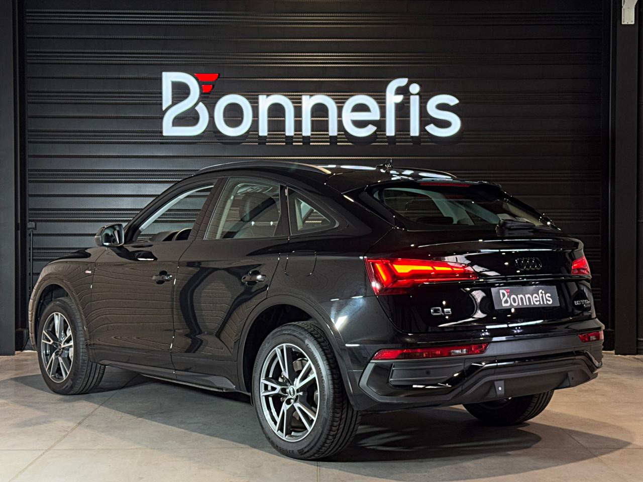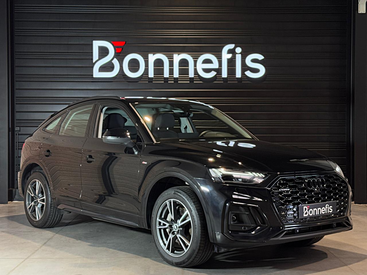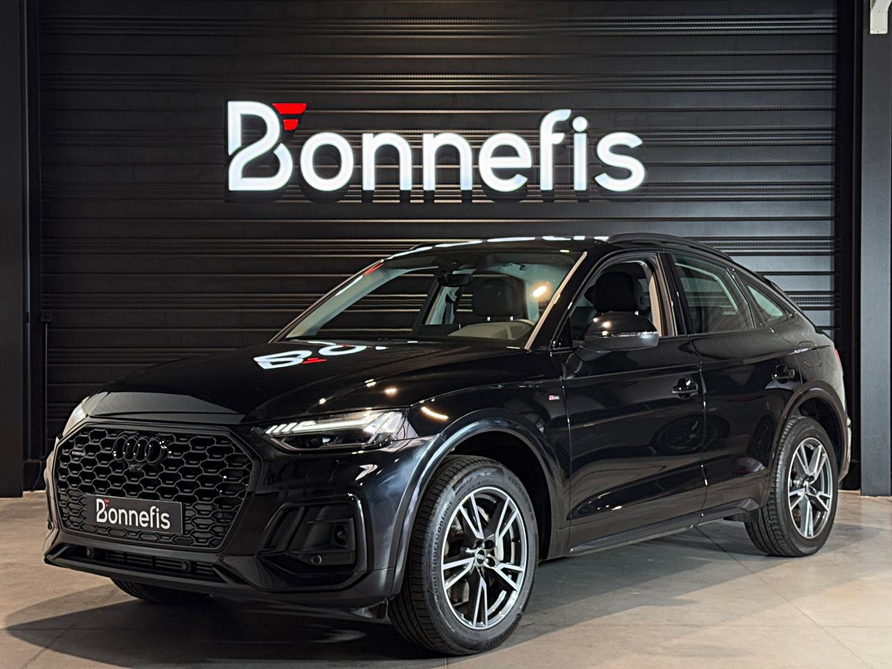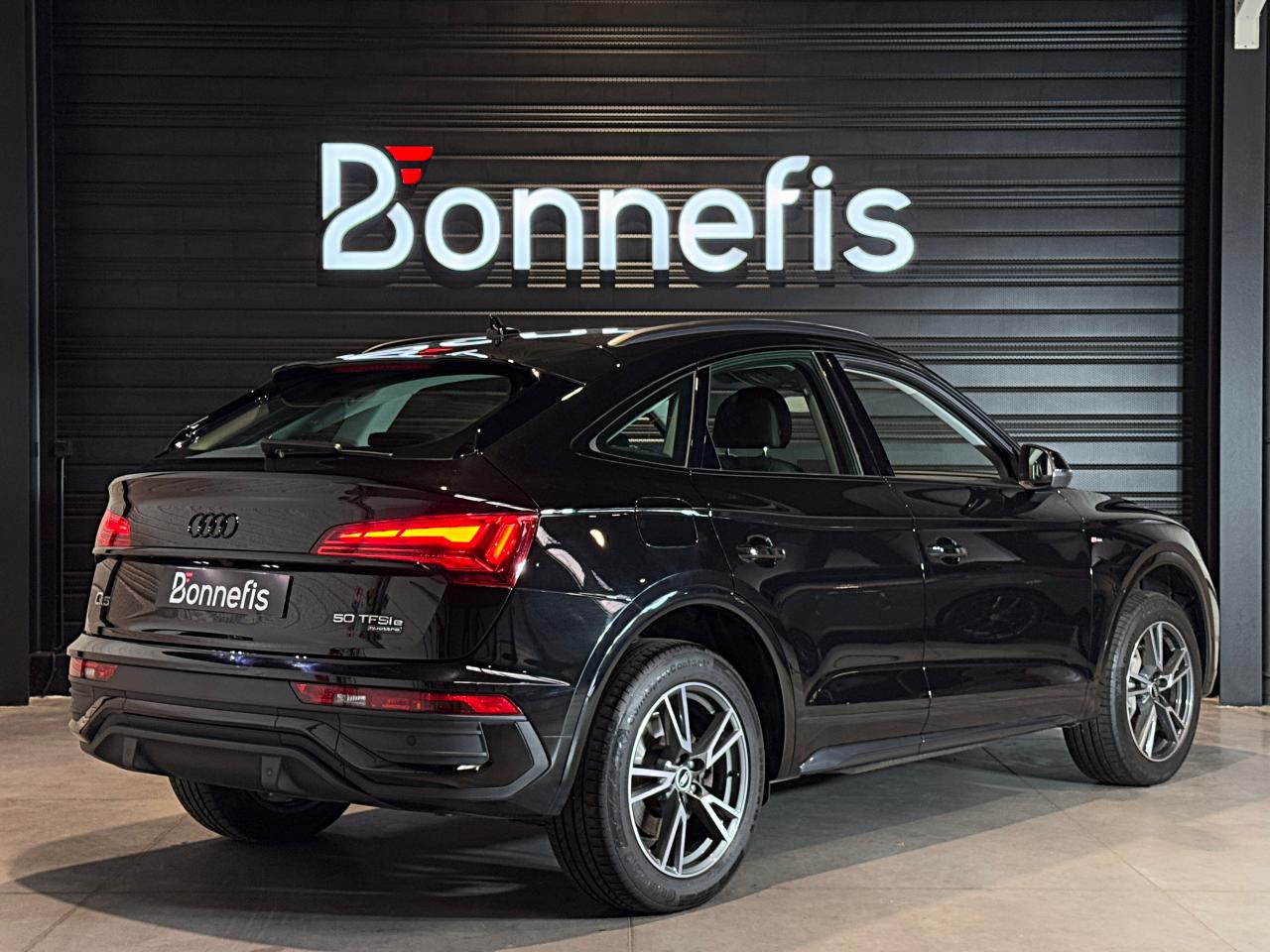 Audi Q5 Sportback 50 TFSI e 299 ch S tronic 7 Quattro S line, noir Mythic ( 933EUR ), 16 cv, 5 portes, première mise en circulation le 29/06/2021.