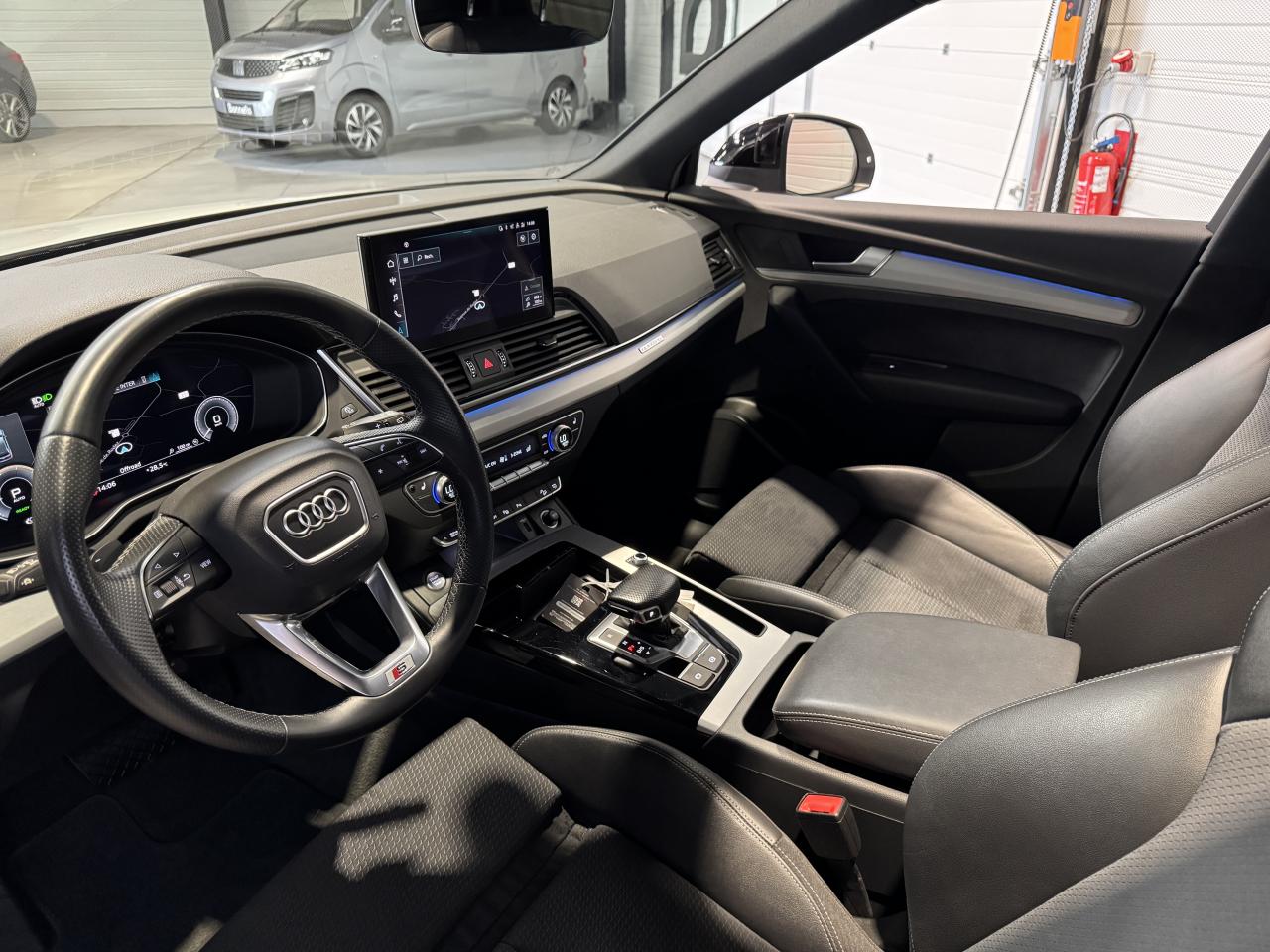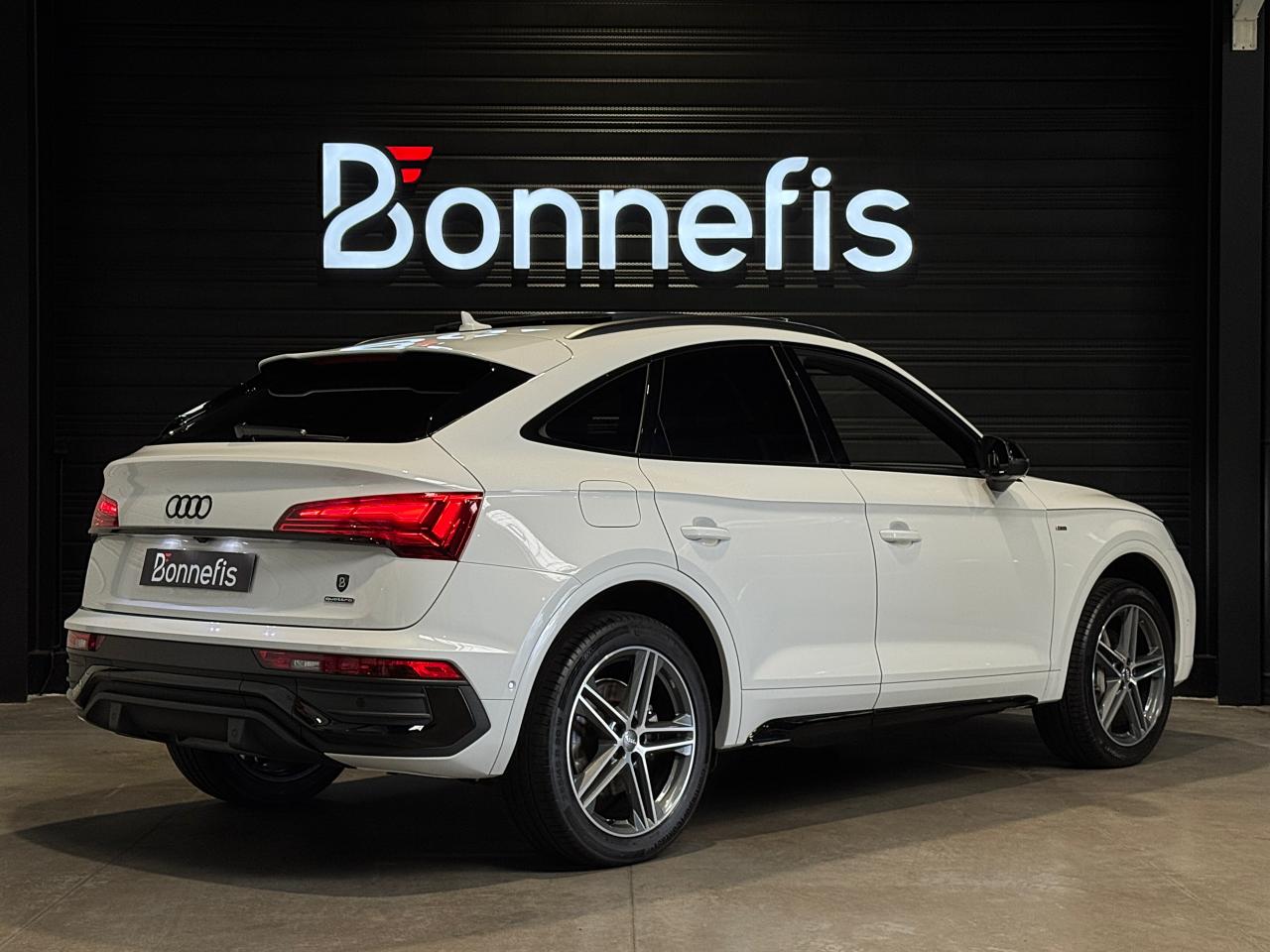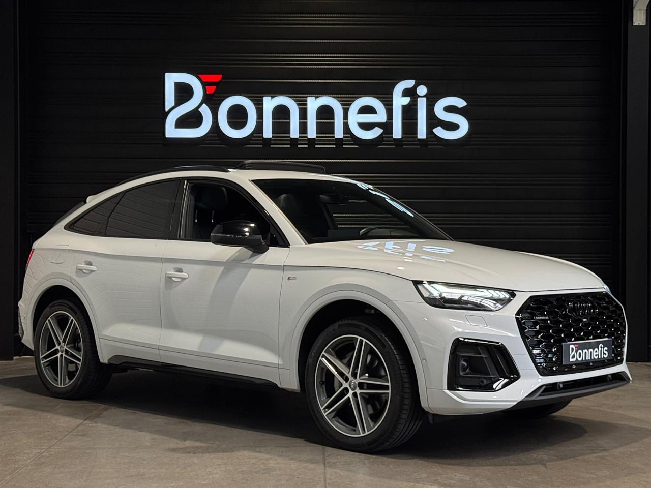 Audi Q5 Sportback 50 TFSIe 299Ch S tronic 7 Quattro S line Sline, blanc glacier métallisée ( 933 € ), 16 cv, 5 portes, première mise en circulation le 16/11/2021.