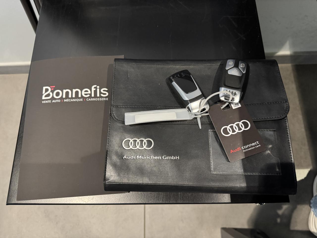 Nombreuses options : GPS, caméra de recul, radars avants et arrières de détection d'obstacles, Jantes en aluminium coulé en style Offroad à 5 bras, style Titane, tournées brillantes ( 2 208 € ), Toit panoramique en verre (en 2 parties) ( 1 558 € ), Rampes de pavillon Noires ( 337 € ), Audi Park Assist ( 291 € ), Boîtiers de rétroviseurs extérieurs en Noir brillant ( 108 € ), Sellerie Microfibre Dinamica Fréquence/Cuir combinés ( 508 € ), Sièges AV chauffants ( 391 € ), Stores pare-soleil manuels pour les vitres de portes AR ( 208 € ), Adaptive cruise control avec Stop&Go avec Assistant de conduite en embouteillage ( ACC / Active Cruise Control ), Audi Active Lane Assist, Audi Parking System Plus: Système accoustique et visuel d'aide au stationnement AV et AR, Audi pre sense AR incluant Audi pre sense basic, Audi pre sense basic, Audi pre sense front avec Assistant d'évitement collision et Assistant de changement de direction, Audi pre sense rear, Audi side assist, Pack Audi side assist, Avertisseur de sortie du véhicule, Phares Matrix LED avec clignotants dynamiques à l'AR, Système de lecture des panneaux de signalisation par caméra, Assistant d'efficacité prédictive, Assistant de feux de route, Assistant de sortie de stationnement perpendiculaire en marche AR, Climatisation automatique Confort 3 zones, Application éclairée sur le tableau de bord (multicolore), Application éclairée sur les portières (multicolore), Eclairage d'ambiance des portières AV/AR (multicolore), Eclairage d’ambiance de la colonne centrale (multicolore), Commande intérieure des portières AV/AR (blanc), Pack Eclairage, Volant 3 branches multifonction plus en cuir chauffant, Calandre Singleframe noire, Baguettes décoratives sur les vitres latérales laquées en noir, Baguettes de portières et du pare-chocs AV/AR...