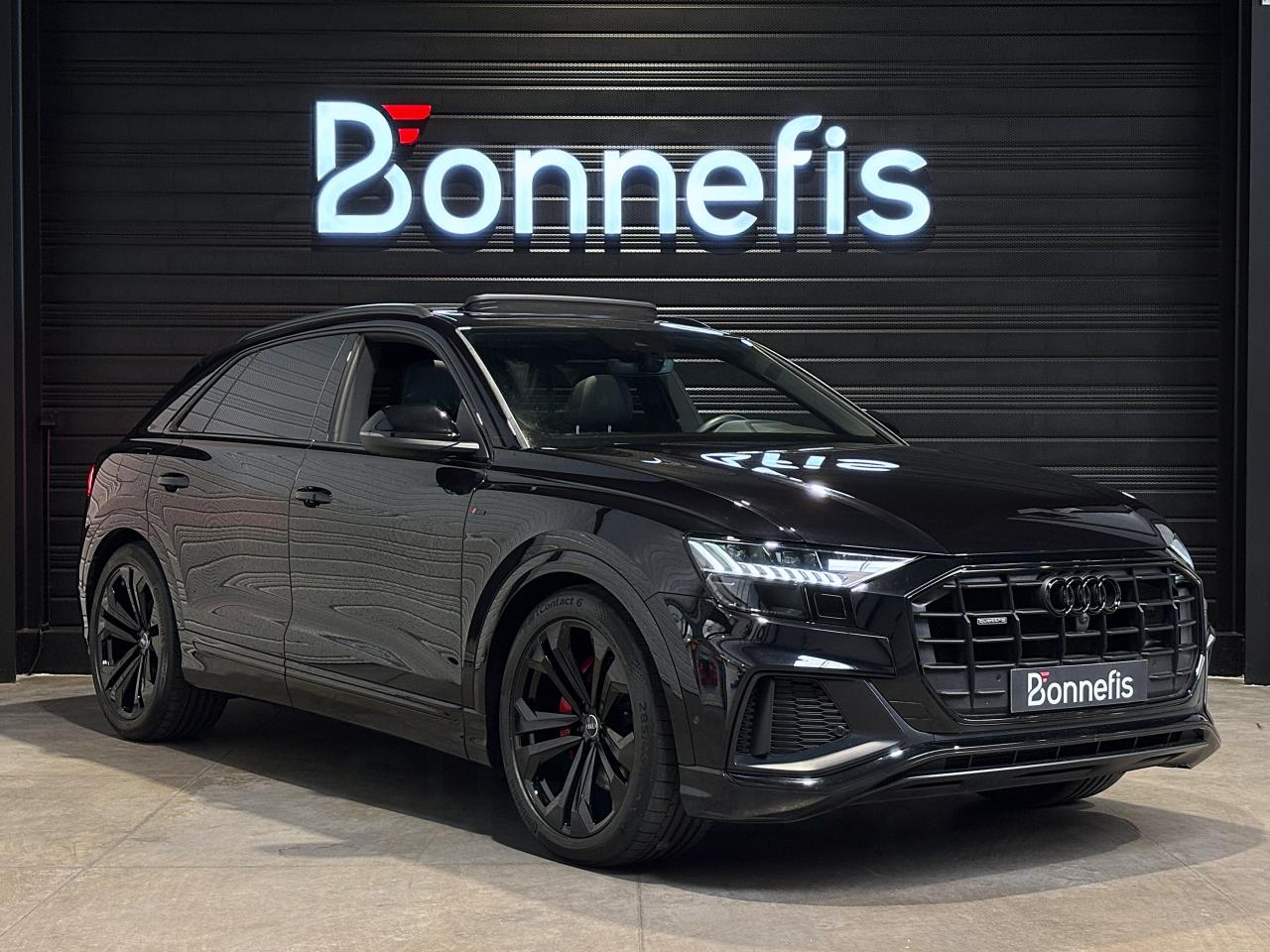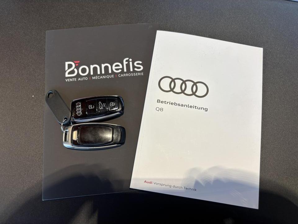 Audi Q8 50 TDI 286 Ch Quattro S line Sline, noir Orca métallisée ( 1 075 € ), 18 cv, 5 portes, première mise en circulation le 11/07/2019.