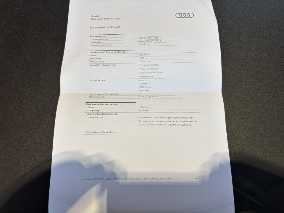 Dernier entretien fait le 24/02/2025 à 52 573Km chez Audi. ( Vidange moteur + filtre à carburant + filtre à poussière et pollen + liquide de frein )