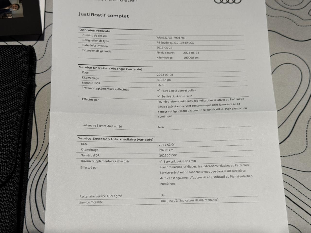 Justificatif d'entretien exclusif Audi disponible.