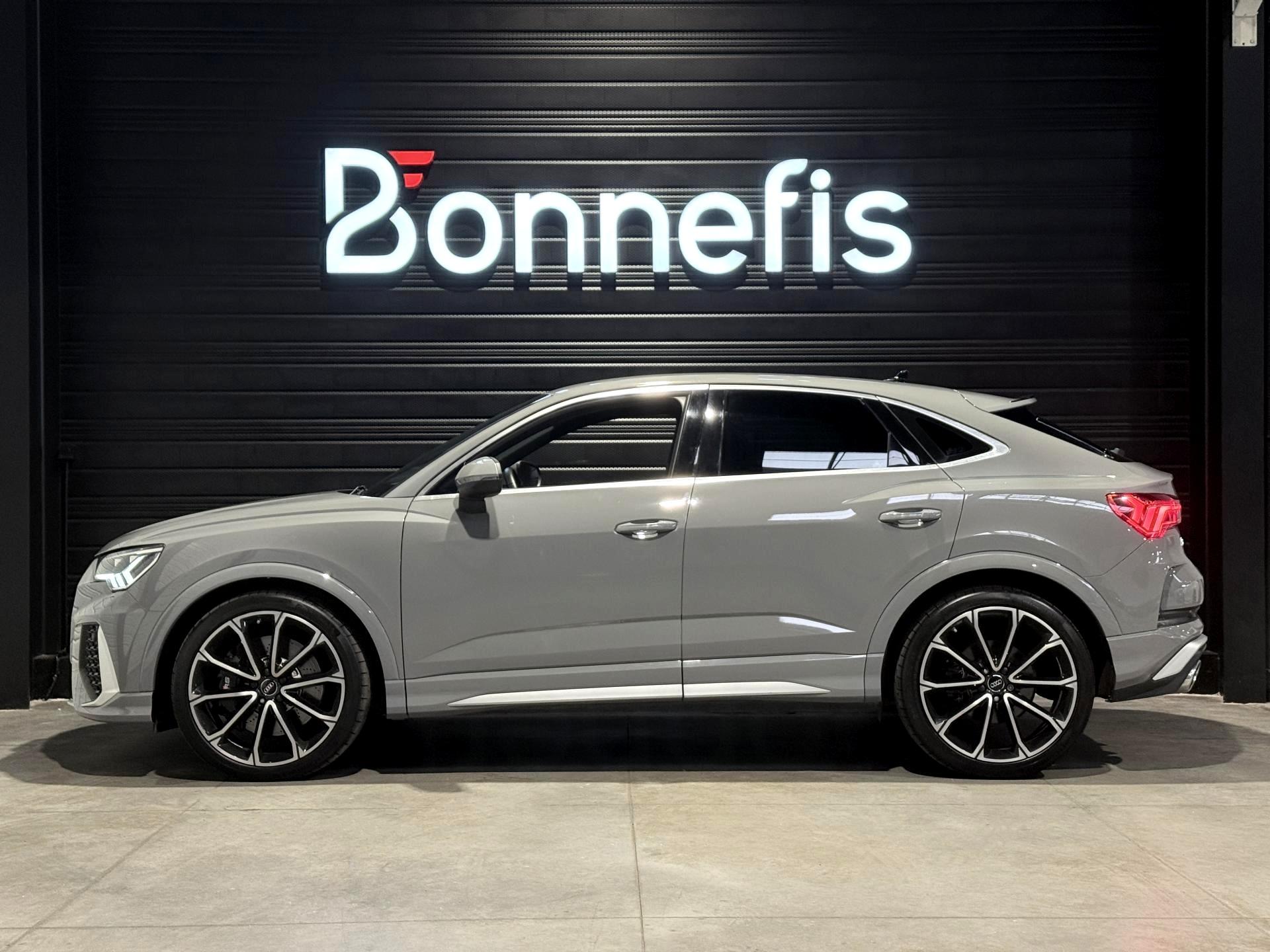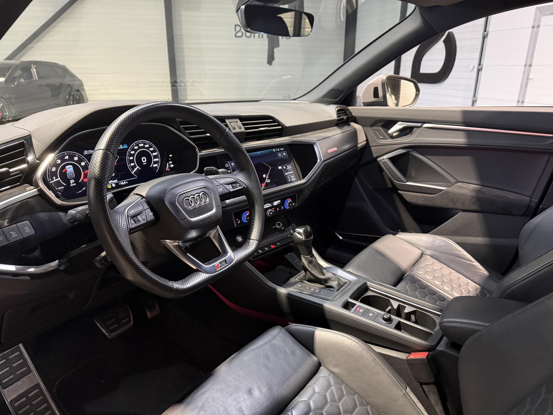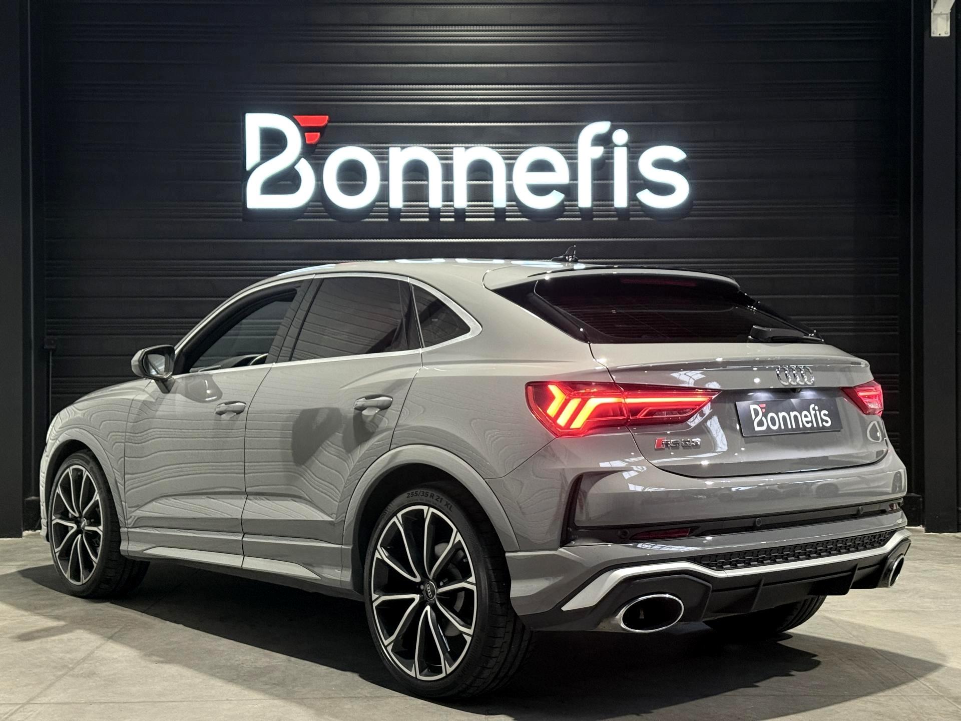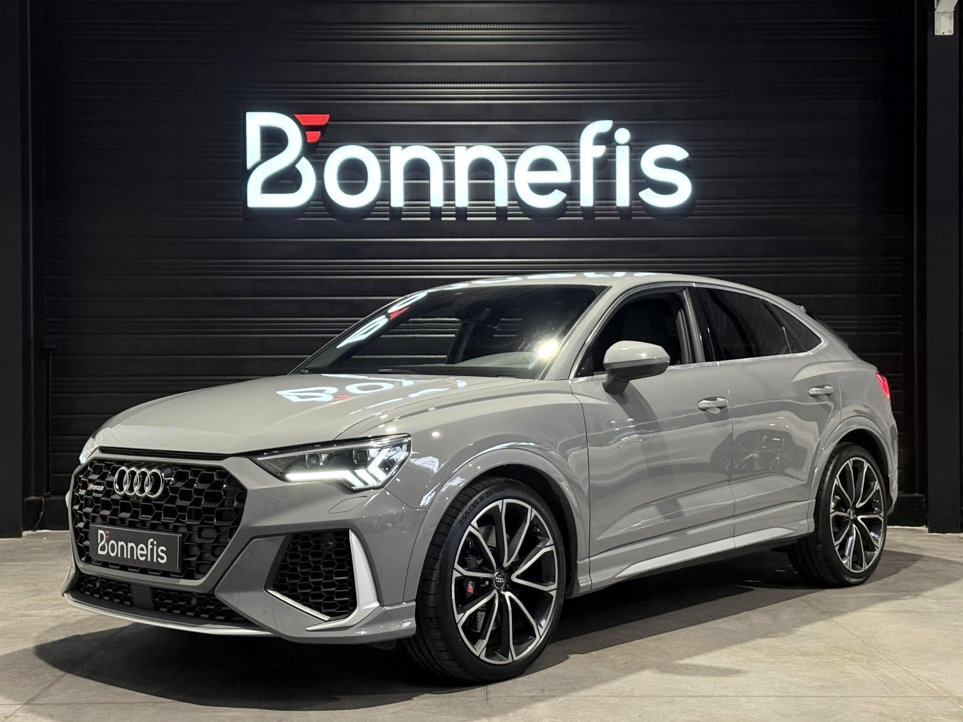 Audi RS Q3 Sportback 2.5 TFSI 400 Ch BVA S Tronic 7 quattro, extérieur gris Nardo, intérieur Sièges Sport cuir Nappa fin avec surpiqures alvéolées ( 1 500 € ), 29 cv, 5 portes, première mise en circulation le 13/12/2019.