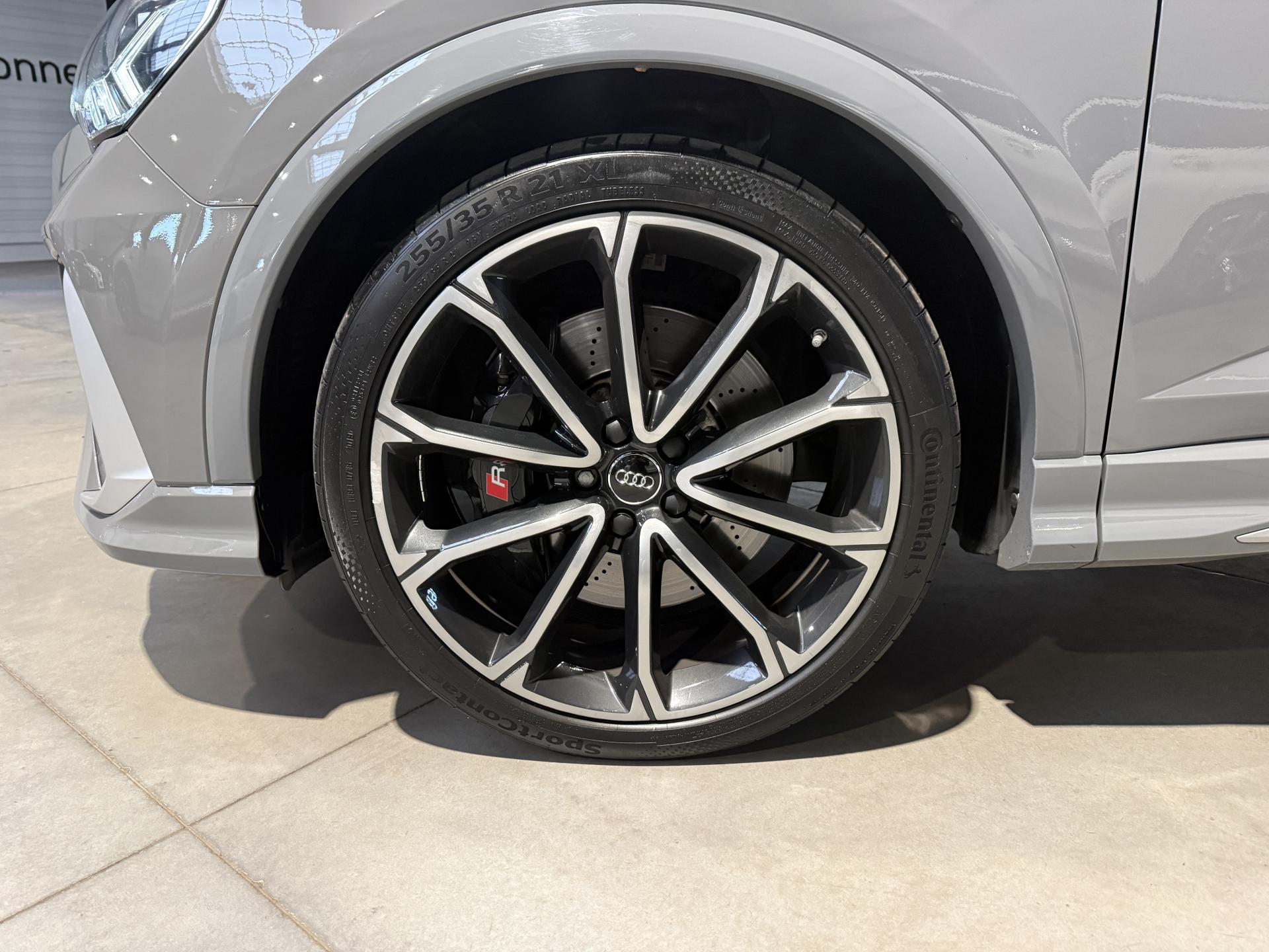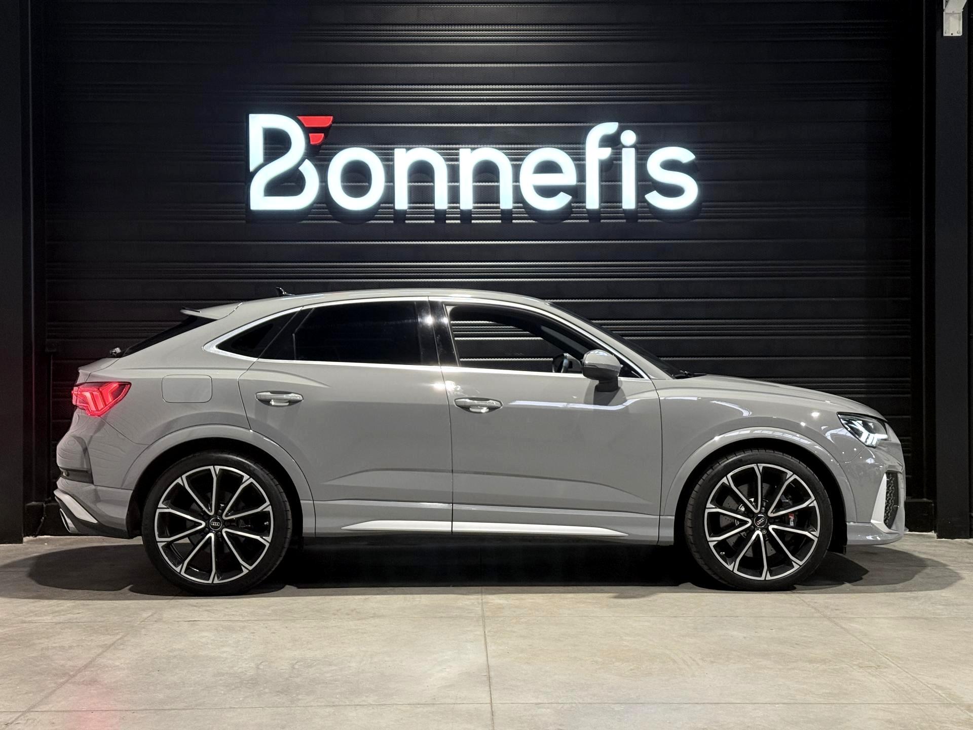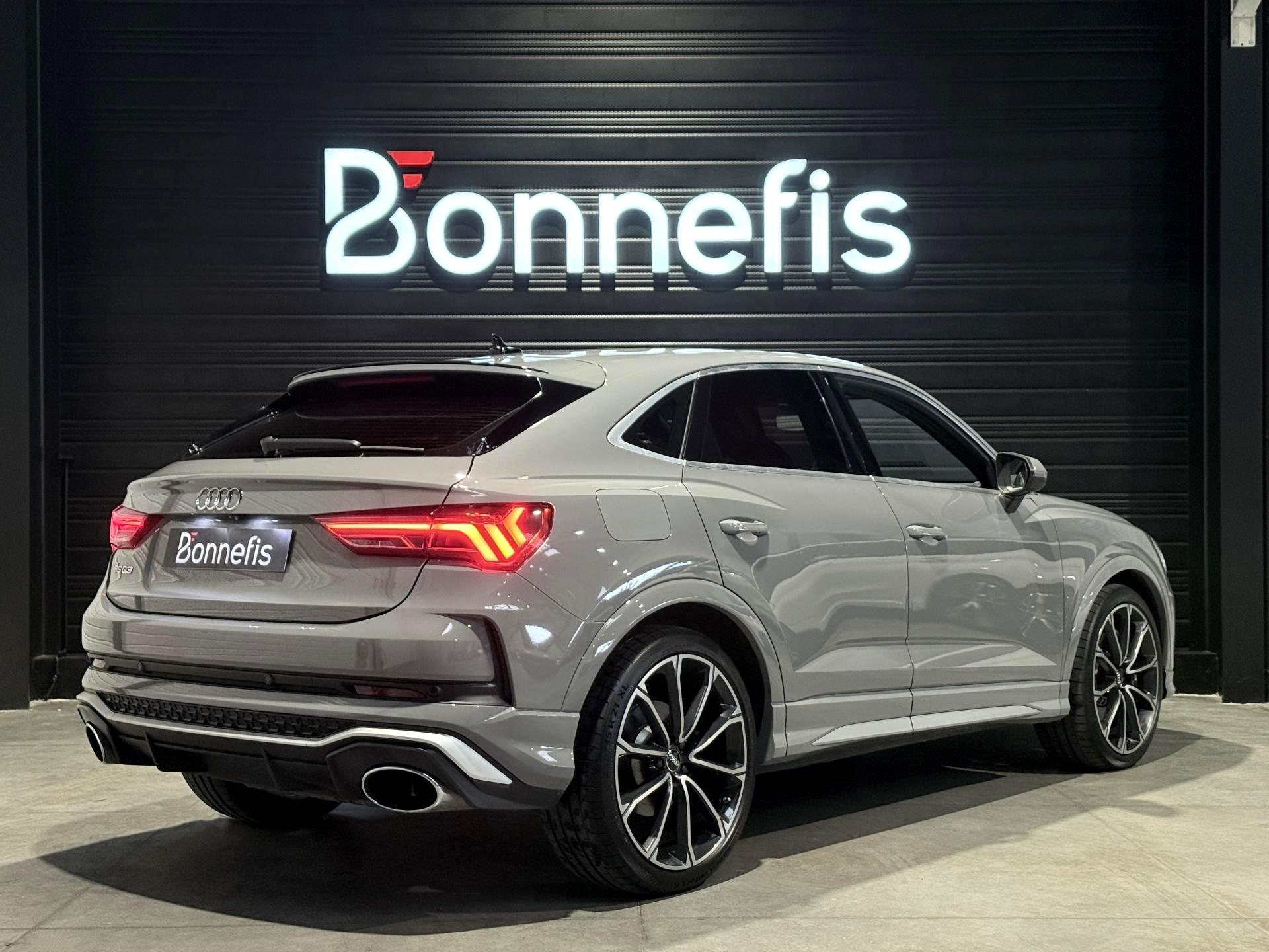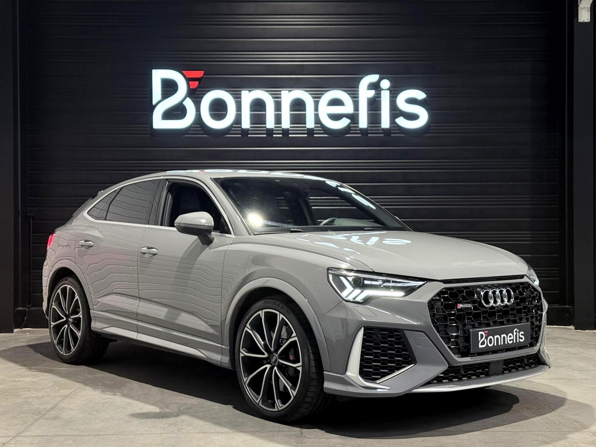 Audi RS Q3 Sportback 2.5 TFSI 400 Ch BVA S Tronic 7 quattro, extérieur gris Nardo, intérieur Sièges Sport cuir Nappa fin avec surpiqures alvéolées ( 1 500 € ), 29 cv, 5 portes, première mise en circulation le 13/12/2019.
