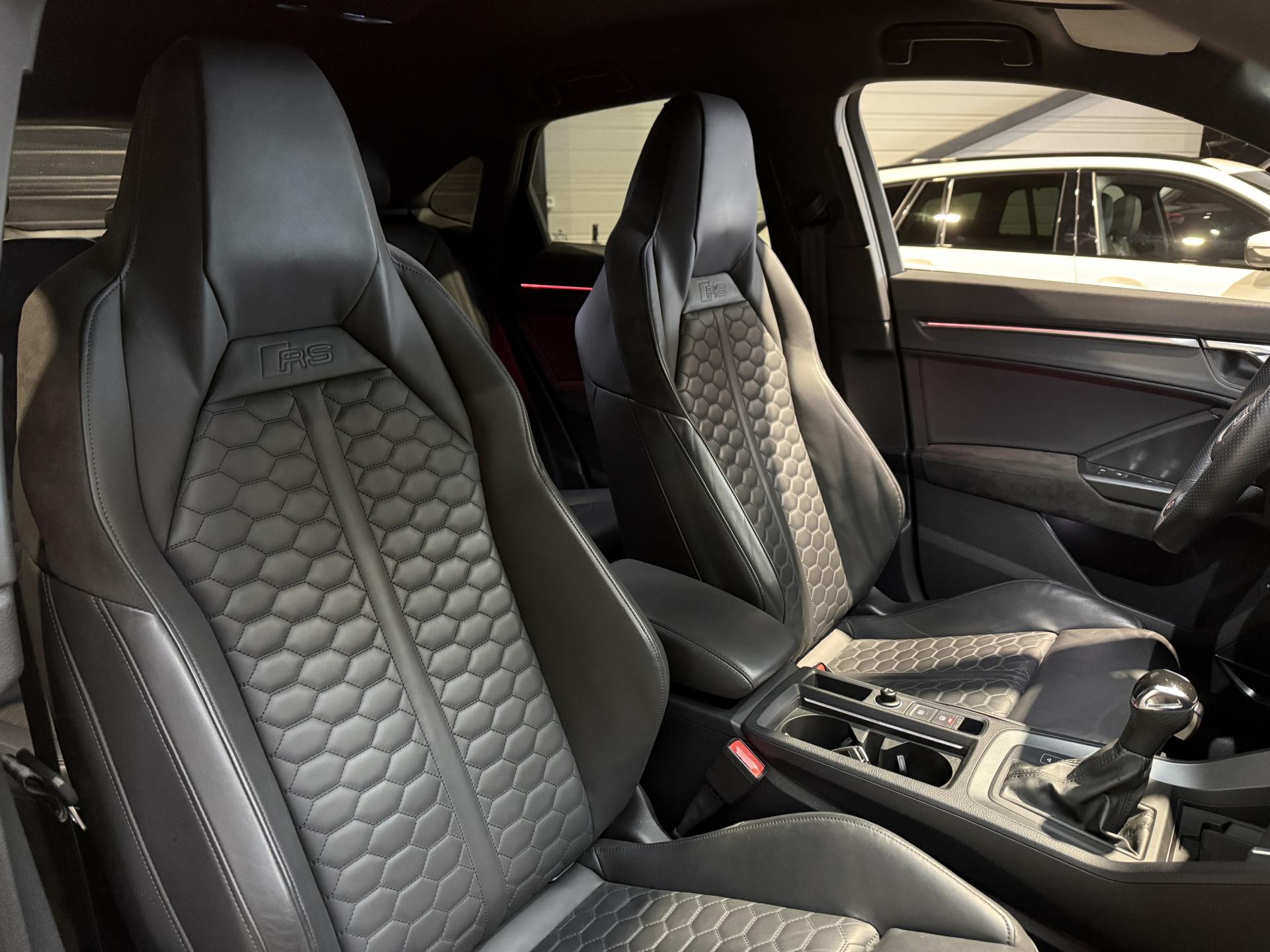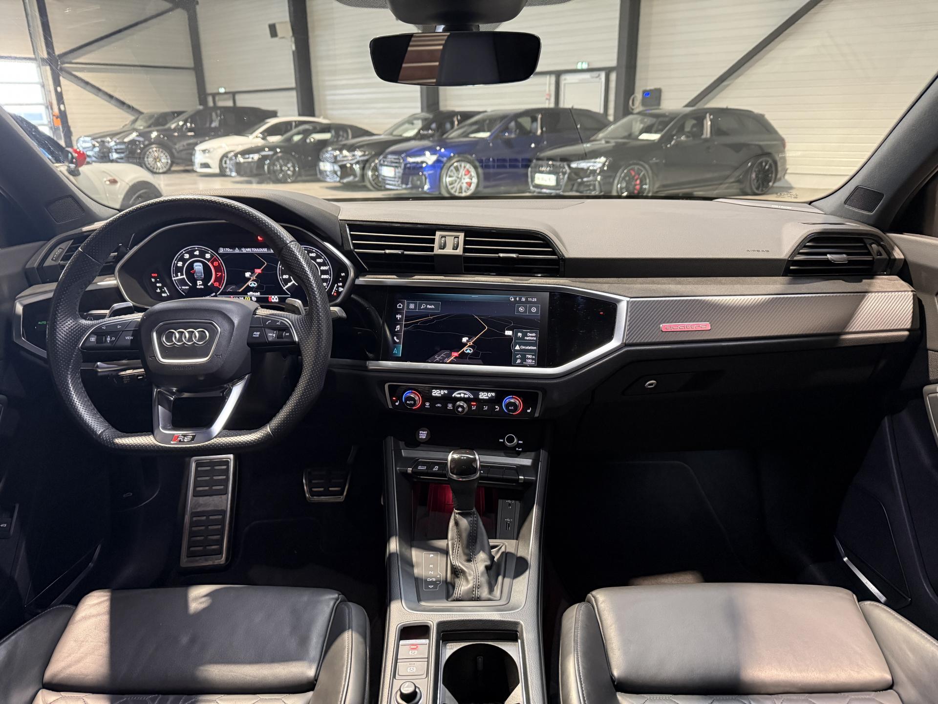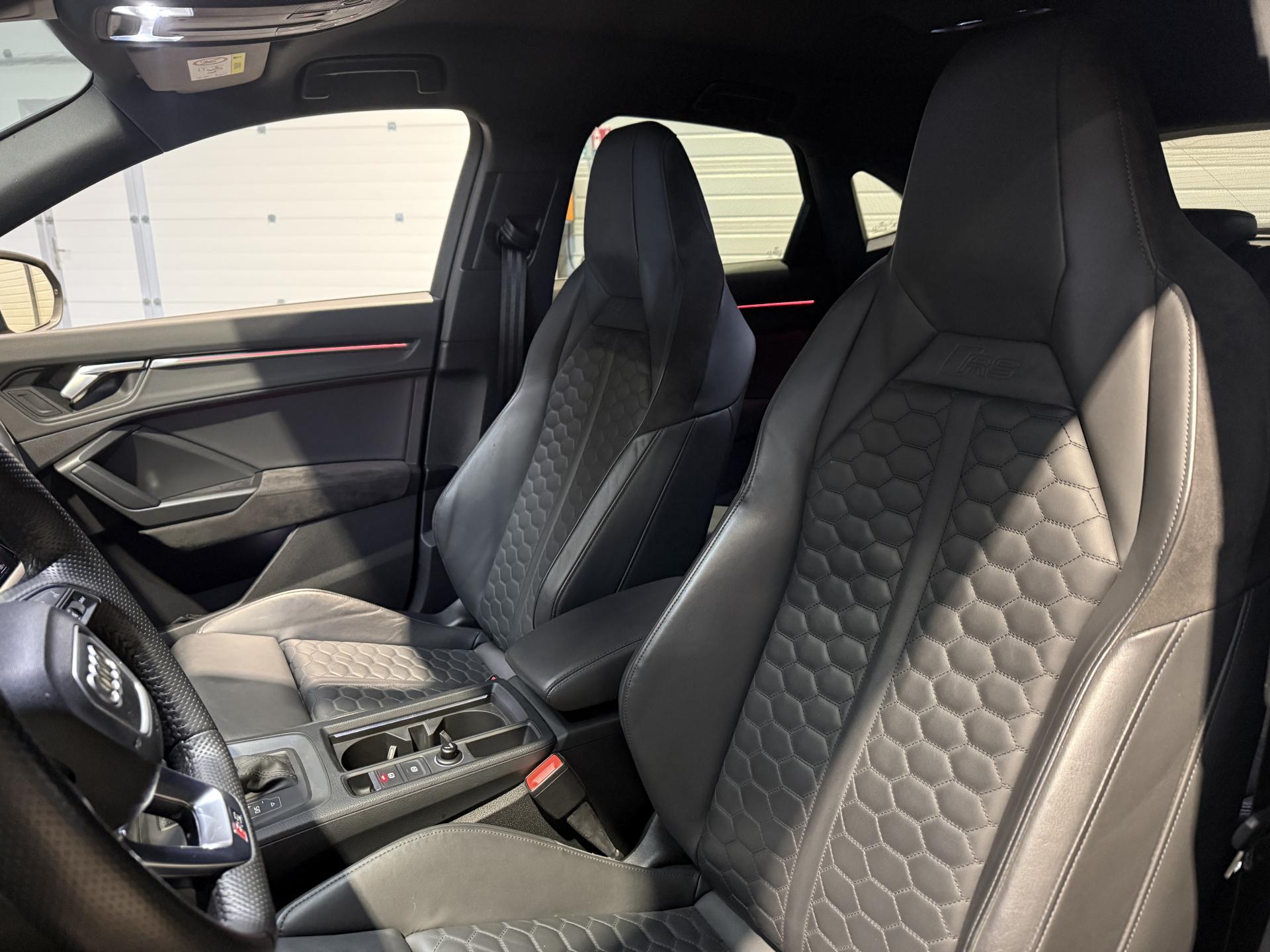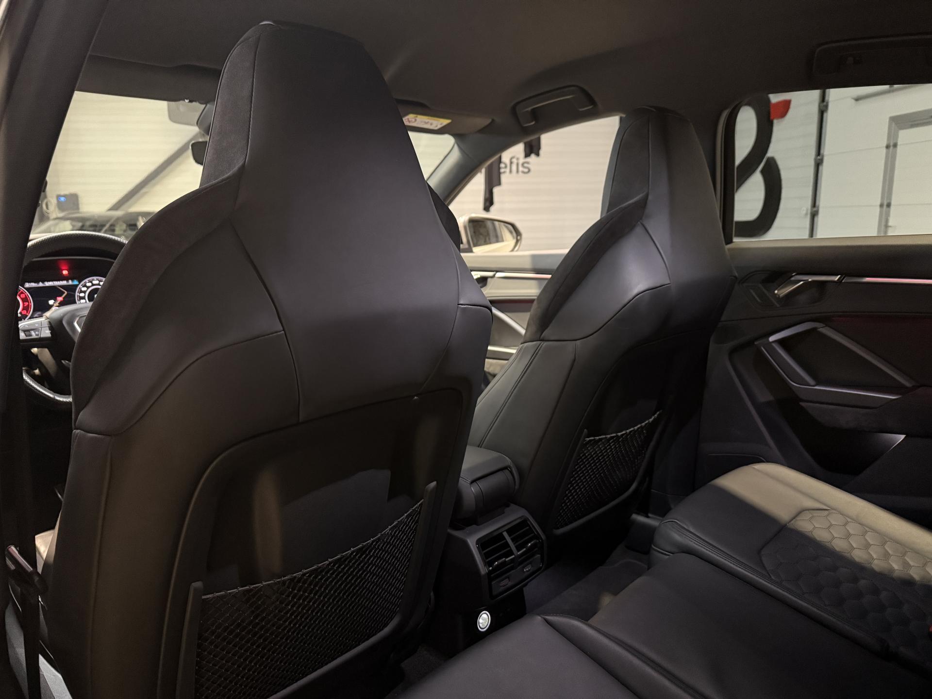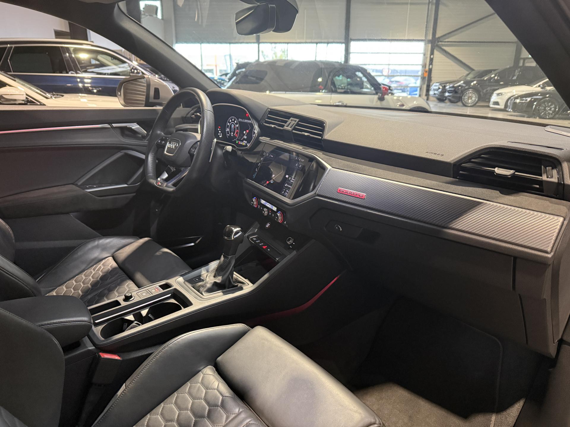 Audi RS Q3 Sportback 2.5 TFSI 400 Ch BVA S Tronic 7 quattro, extérieur gris Nardo, intérieur Sièges Sport cuir Nappa fin avec surpiqures alvéolées ( 1 500 € ), 29 cv, 5 portes, première mise en circulation le 13/12/2019.