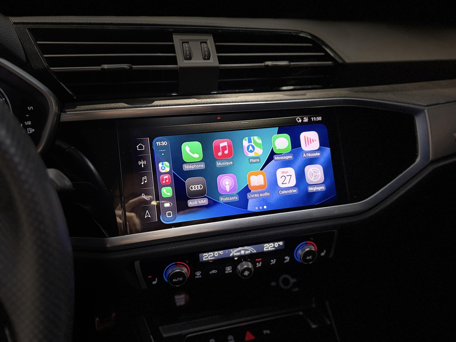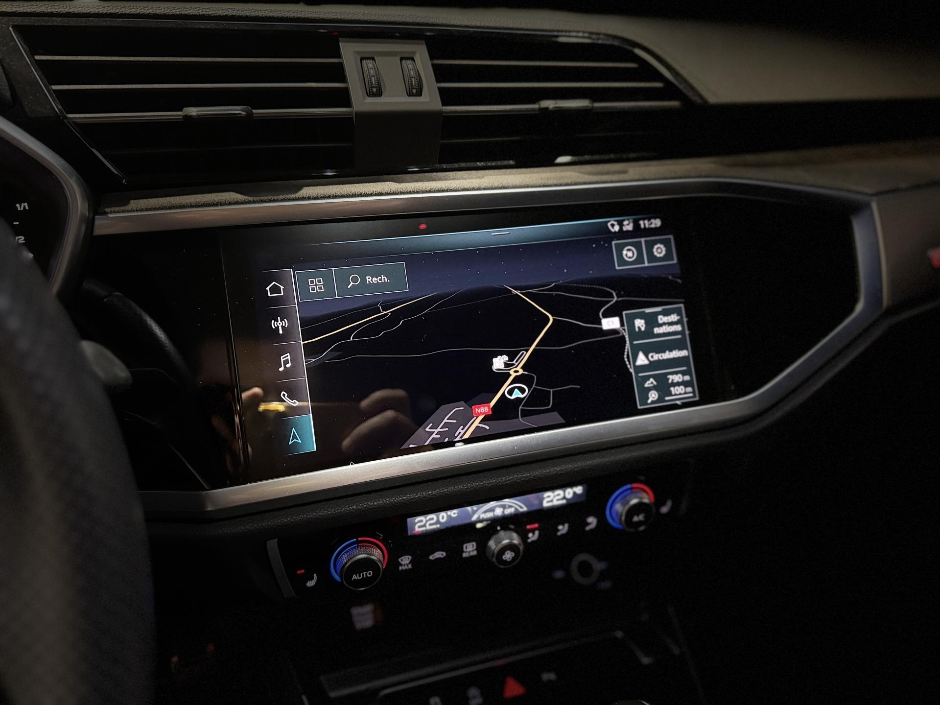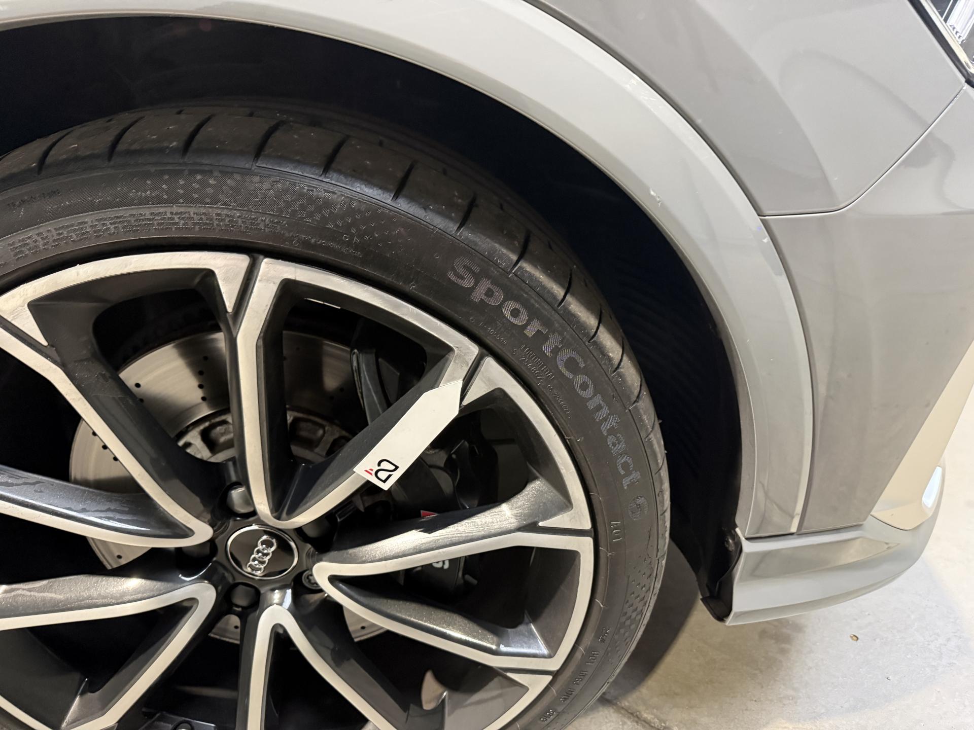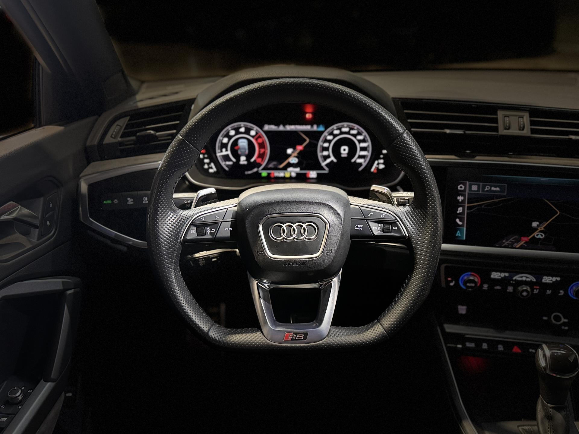 Audi RS Q3 Sportback 2.5 TFSI 400 Ch BVA S Tronic 7 quattro, extérieur gris Nardo, intérieur Sièges Sport cuir Nappa fin avec surpiqures alvéolées ( 1 500 € ), 29 cv, 5 portes, première mise en circulation le 13/12/2019.