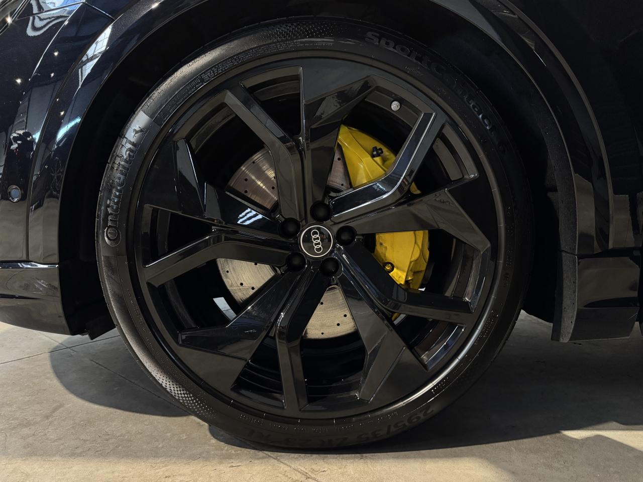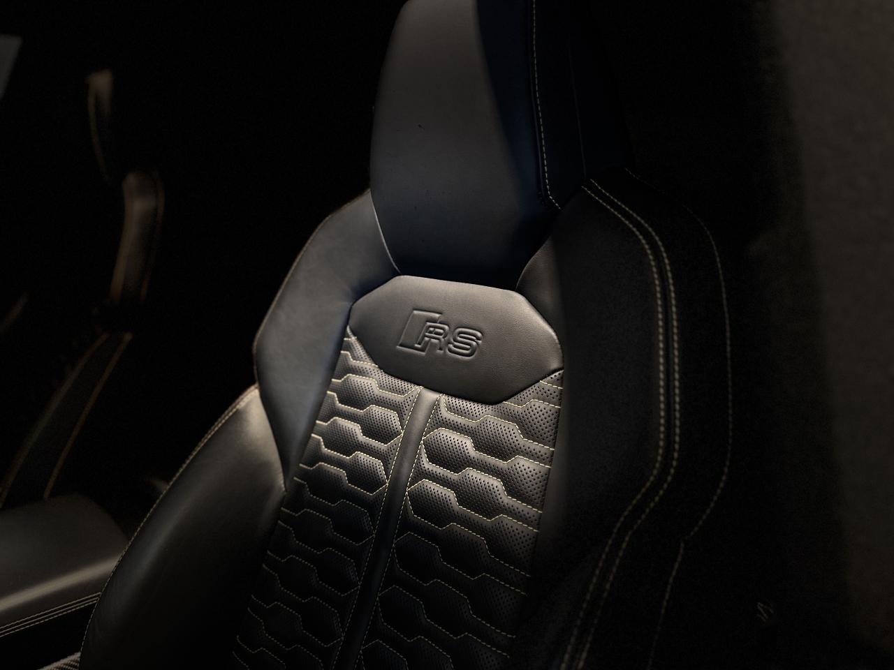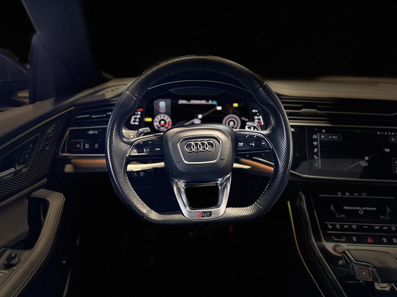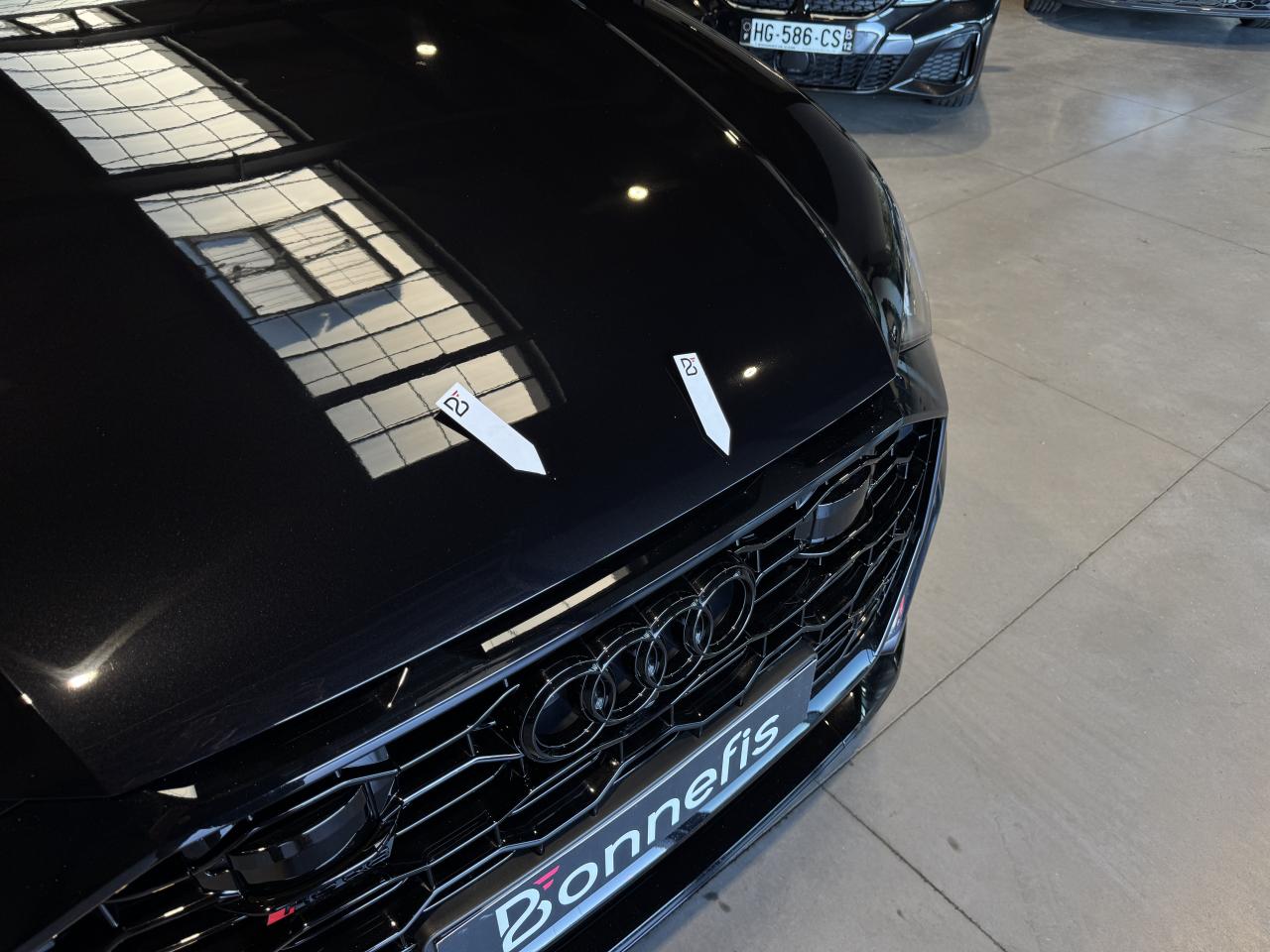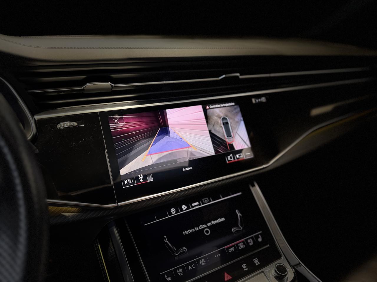 Nombreuses options : GPS, caméras périphériques à 360°, Apple Carplay, radars avants et arrières de détection d'obstacles, jantes 23'' en alliage léger, style 5 branches en "Y" design en hélice, finition Noir Anthracite, polies brillant ( 2 291 € ), application décorative Carbone "Twill" mat (tableau de bord, contre-portes et console centrale) ( 1 000 € ), éléments de l’habitacle inférieurs en cuir Audi exclusive ( 958 € ), crochet d'attelage électrique ( 666 € ), peinture intégrale unie + design extérieur carrosserie "RS" ( 541 € ), rampes de pavillon Noires ( 416 € ), sièges AV/AR chauffants ( 395 € ), logo Audi (anneaux) et inscriptions laqués en noir brillant ( 333 € ), système de rails avec kit de fixation pour coffre ( 291 € ), sellerie en cuir Valcona avec surpiqûres alvéolées spécifiques "RS", sièges Sport "RS", suspension adaptative pneumatique Sport "RS", Bang & Olufsen Premium Sound System avec son en 3D, Audi Virtual Cockpit, projecteurs Audi Matrix LED, assistant de conduite adaptatif incluant assistant de conduite en embouteillage, assistant de maintien de la vitesse adaptatif, assistant d'efficience prédictive, assistant d'évitement d'urgence, assistant de changement de direction, avertissement de franchissement de ligne incluant assistant de freinage d'urgence, Audi pre sense front, Audi drive select, Audi hold assist : maintien le véhicule à l'arrêt en côte comme en descente, système avancé de contrôle de pression des pneus, rétroviseurs extérieurs avec clignotants à LED intégrés, avec fonction jour/nuit automatique des deux côtés et mémoire, rétroviseur intérieur jour/nuit automatique sans encadrement (Frameless), pare-brise en verre de sécurité feuilleté athermique, lave-phares haute pression, toit panoramique en verre, ventilation des sièges AV, vitres AR surteintées (Vitrage Privacy), touches de commande façon verre en noir avec réponse haptique incluant style aluminium étendu, volant réglable électriquement, volant Sport 3 branches multifonction en cuir avec méplat et palette de changement de vitesses, repose-pied et pédalier en acier inoxydable, appel d'urgence avec service Audi connect + commande de véhicule, logo extérieurs "RS", ...