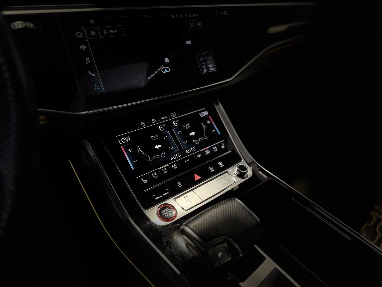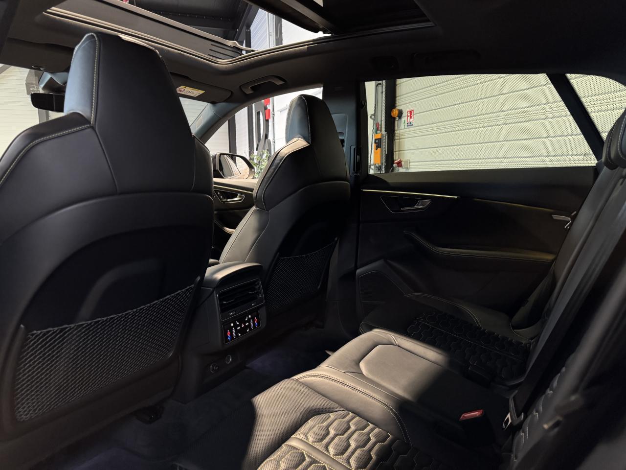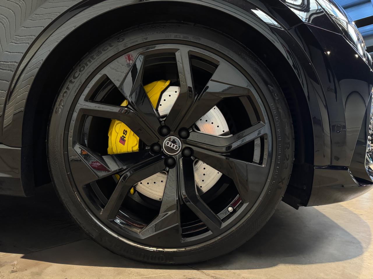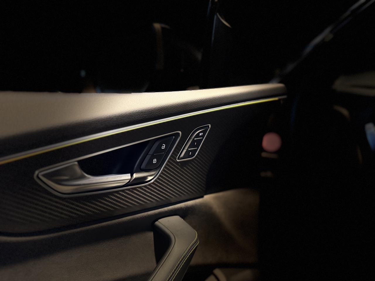 Nombreuses options : GPS, caméras périphériques à 360°, Apple Carplay, radars avants et arrières de détection d'obstacles, jantes 23'' en alliage léger, style 5 branches en "Y" design en hélice, finition Noir Anthracite, polies brillant ( 2 291 € ), application décorative Carbone "Twill" mat (tableau de bord, contre-portes et console centrale) ( 1 000 € ), éléments de l’habitacle inférieurs en cuir Audi exclusive ( 958 € ), crochet d'attelage électrique ( 666 € ), peinture intégrale unie + design extérieur carrosserie "RS" ( 541 € ), rampes de pavillon Noires ( 416 € ), sièges AV/AR chauffants ( 395 € ), logo Audi (anneaux) et inscriptions laqués en noir brillant ( 333 € ), système de rails avec kit de fixation pour coffre ( 291 € ), sellerie en cuir Valcona avec surpiqûres alvéolées spécifiques "RS", sièges Sport "RS", suspension adaptative pneumatique Sport "RS", Bang & Olufsen Premium Sound System avec son en 3D, Audi Virtual Cockpit, projecteurs Audi Matrix LED, assistant de conduite adaptatif incluant assistant de conduite en embouteillage, assistant de maintien de la vitesse adaptatif, assistant d'efficience prédictive, assistant d'évitement d'urgence, assistant de changement de direction, avertissement de franchissement de ligne incluant assistant de freinage d'urgence, Audi pre sense front, Audi drive select, Audi hold assist : maintien le véhicule à l'arrêt en côte comme en descente, système avancé de contrôle de pression des pneus, rétroviseurs extérieurs avec clignotants à LED intégrés, avec fonction jour/nuit automatique des deux côtés et mémoire, rétroviseur intérieur jour/nuit automatique sans encadrement (Frameless), pare-brise en verre de sécurité feuilleté athermique, lave-phares haute pression, toit panoramique en verre, ventilation des sièges AV, vitres AR surteintées (Vitrage Privacy), touches de commande façon verre en noir avec réponse haptique incluant style aluminium étendu, volant réglable électriquement, volant Sport 3 branches multifonction en cuir avec méplat et palette de changement de vitesses, repose-pied et pédalier en acier inoxydable, appel d'urgence avec service Audi connect + commande de véhicule, logo extérieurs "RS", ...