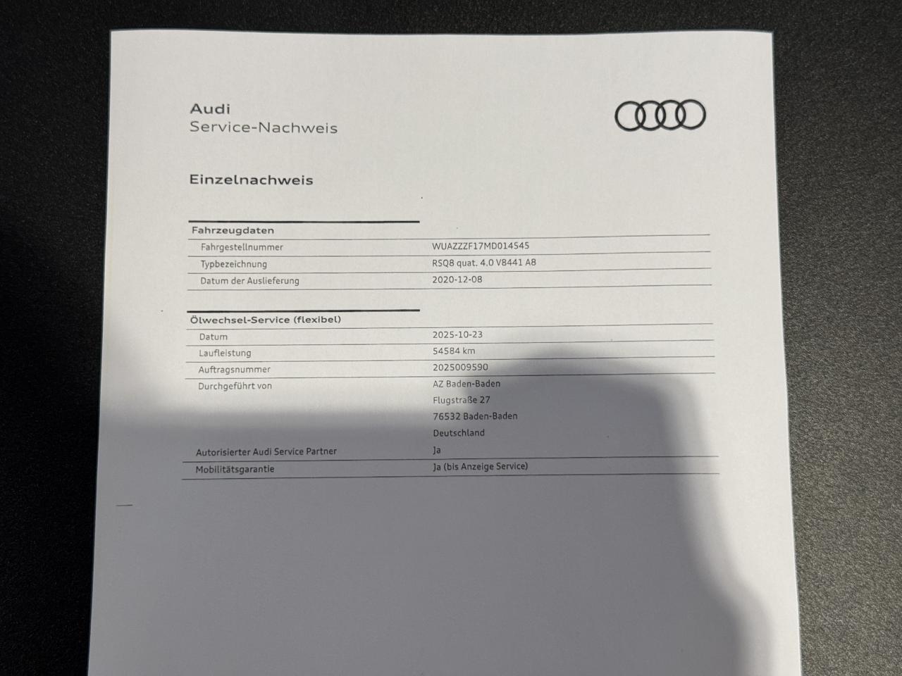 - 6ème entretien fait le 23/10/2025 à 54 584Km chez Audi. ( Vidange moteur )