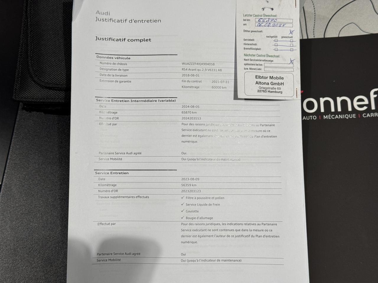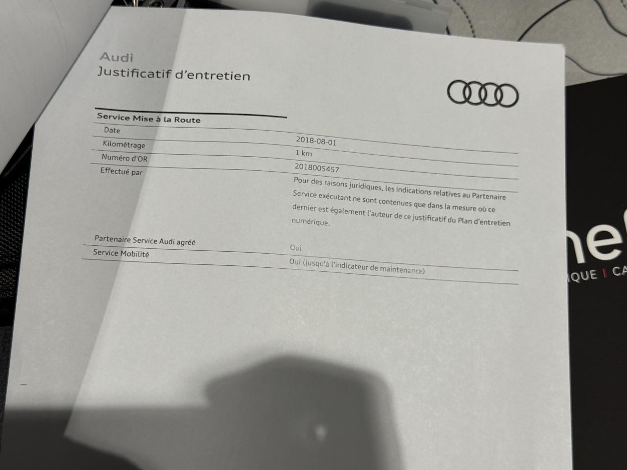 - 1er entretien fait le 01/08/2018 à 1Km chez Audi. ( Contrôle à la livraison )