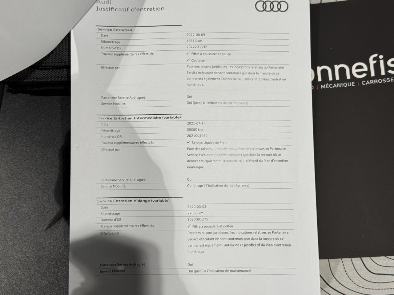 Justificatif d'entretien Audi disponible :