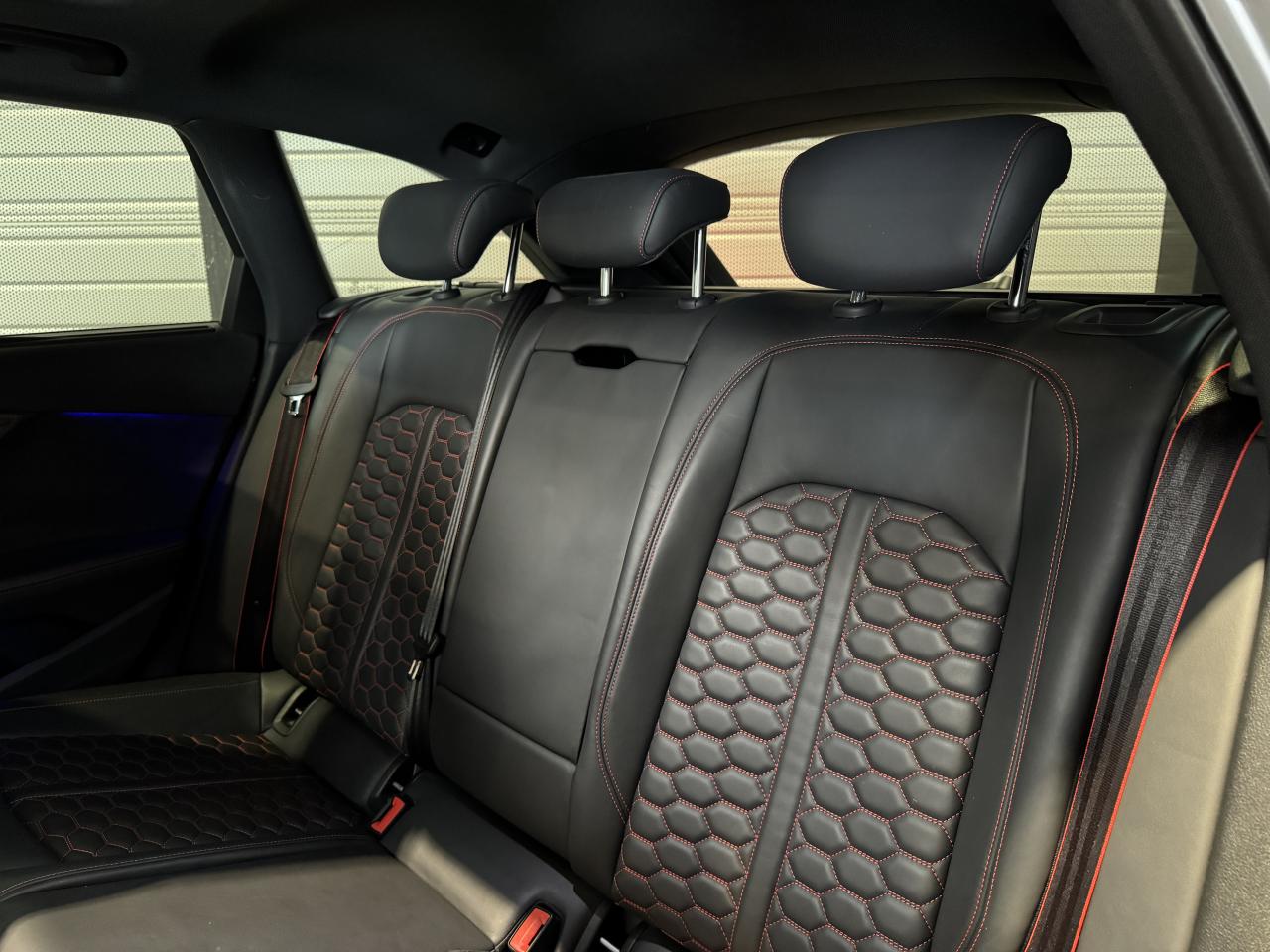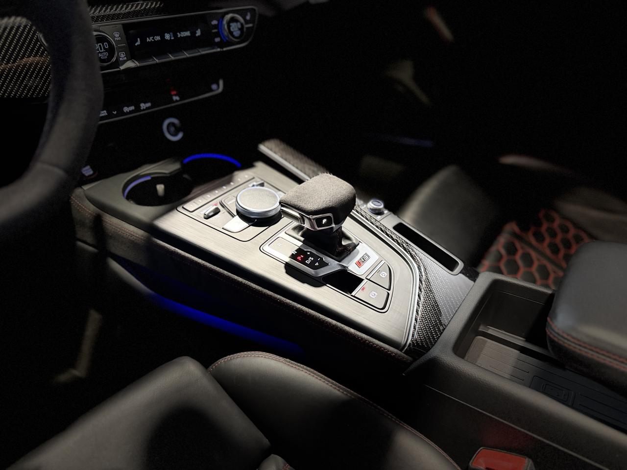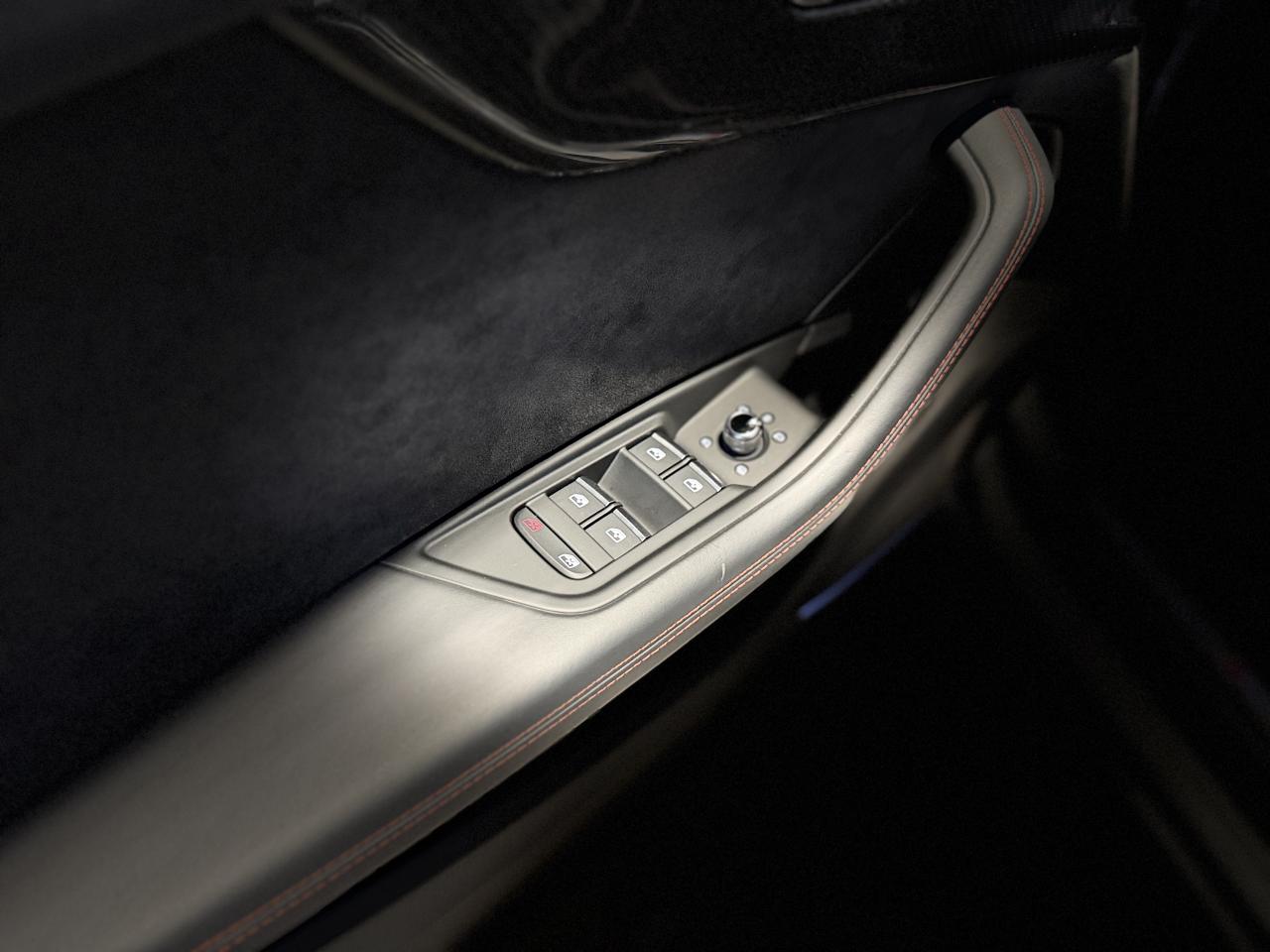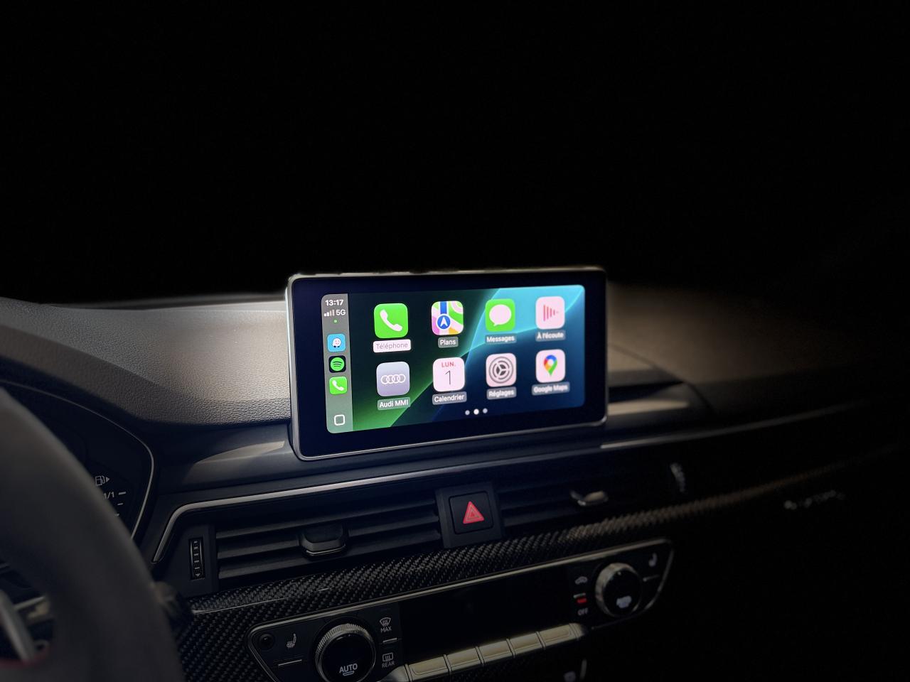 Nombreuses options : GPS, caméra de recul, radars avants et arrières de détection d'obstacles, Jantes aluminium forgé, 5 branches doubles Edge noir anthracite brillant, fraisées brillant, 20" ( 2 308 € ), Châssis Sport RS plus avec Dynamic Ride Control (DRC) réglable sur 3 niveaux: comfort, auto, dynamic ( 2 000 € ), Vitesse maximale relevée à 280km/h ( 1 500 € ), Toit panoramique ( 1 458 € ), Différentiel Quattro Sport, répartition dynamique de couple droite/gauche sur l'essieu AR ( 1 358 € ), Echappement Sport RS incluant sonorité encore plus travaillée et sorties d'échappement noires ( 1 250 € ), Applications décoratives en Carbone ( 1 000 € ), Affichage tête haute ( 991 € ), Sellerie en cuir Nappa fin ( 875 € ), Bang & Olufsen Sound System avec son en 3D ( 858 € ), Vitres surteintées (Privacy glass) : vitrage acoustique pour les vitres de portières AV, ainsi que vitres latérales AR et lunette AR surteintées ( 483 € ), Clé confort + Alarme antivol avec fonction safelock ( 483 € ), Etriers de frein laqués rouge brillant avec inscription RS à l'AV et à l'AR ( 400 € ), Réception radio numérique (DAB) ajoute à l'offre de radios analogiques la réception de stations numériques selon le standard DAB, incluant DAB+ et DMB Audio ( 341 € ), Sièges AV et AR chauffants (chauffe la partie centrale des assises et des dossiers, ainsi que les bourrelets latéraux) ( 333 € ), Système de contrôle de pression des pneus : les pressions et températures de chaque roue peuvent s’afficher sur l'Audi virtual cockpit ( 250 € ), Commande d'ouverture de porte de garage (HomeLink) ( 237 € ), Coffre : système de glissières avec kit de fixation et barre télescopique, sangle de maintien et 4 oeilletons de fixation ( 208 € ), Coques de rétroviseurs extérieurs en couleur carrosserie ( 108 € ), Audi Hold Assist maintient le véhicule à l'arrêt aussi bien en côte qu’en descente au sein de la circulation routière, sans limite de temps ( 83 € ), Rideaux pare-soleil manuels pour les vitres latérales AR ( 54 € ), Adaptive Cruise Control Stop & Go avec assistant embouteillage ( ACC / Active Cruise Control ), Assistant de conduite efficiente, Audi Pre Sense Front avec Assistant d'évitement collision et Assistant changement direction, Augmentation de la vitesse de pointe à 280 km/h, Becquet AV, encadrement de la calandre, baguettes décoratives sur les vitres latérales, diffuseur AR en noir brillant, Boîte à gants verrouillable, Direction Dynamique, Filet dans le logement gauche et sangles de serrage à gauche et à droite (dans le coffre), Filet de coffre, Filet de rangement au dos des sièges AV, Pack Audi Lane Assist, Phares Audi Matrix LED, Porte-boissons dans l'accoudoir central AR, Quattro avec différentiel Sport, Rampes de pavillon Noires, Système de lecture des panneaux de signalisation par caméra, Vide-poches côté conducteur...