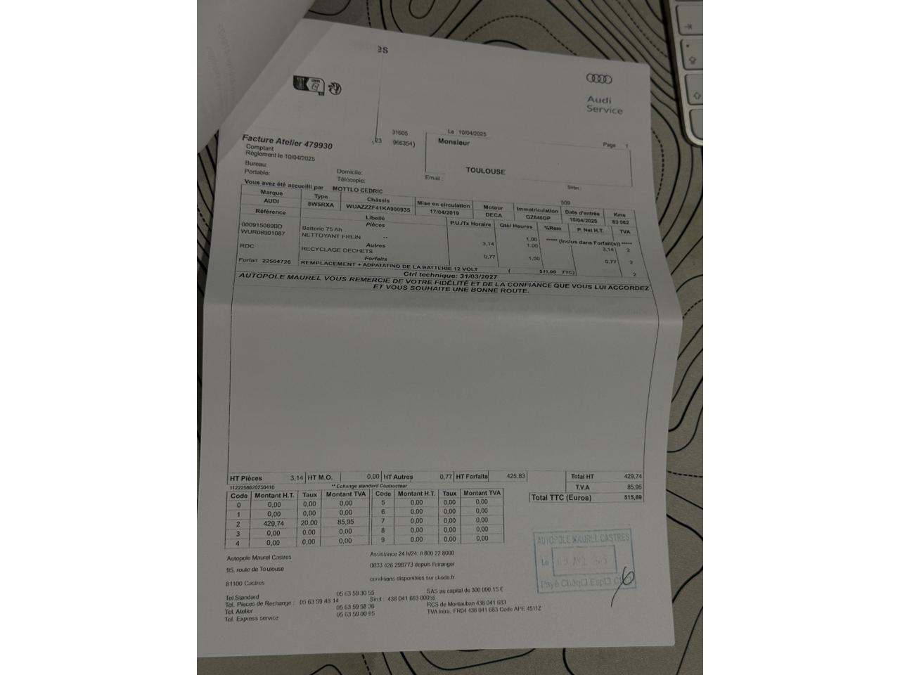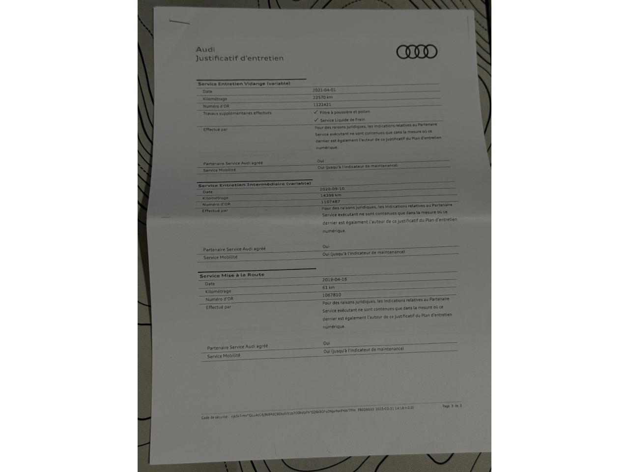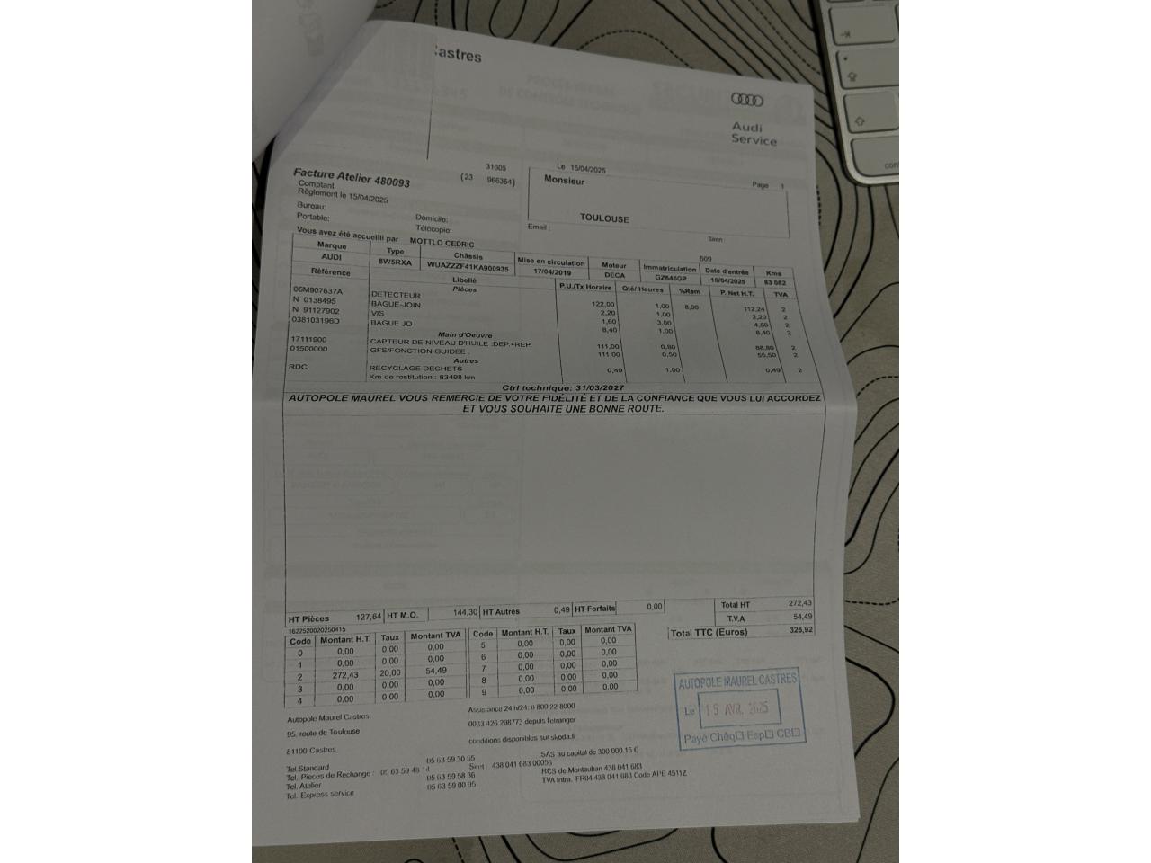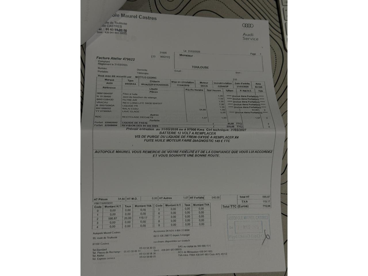 Dernier entretien fait le 31/03/2025 à 82 025Km chez Audi Castres. ( Vidange moteur + liquide de frein + filtre à air )