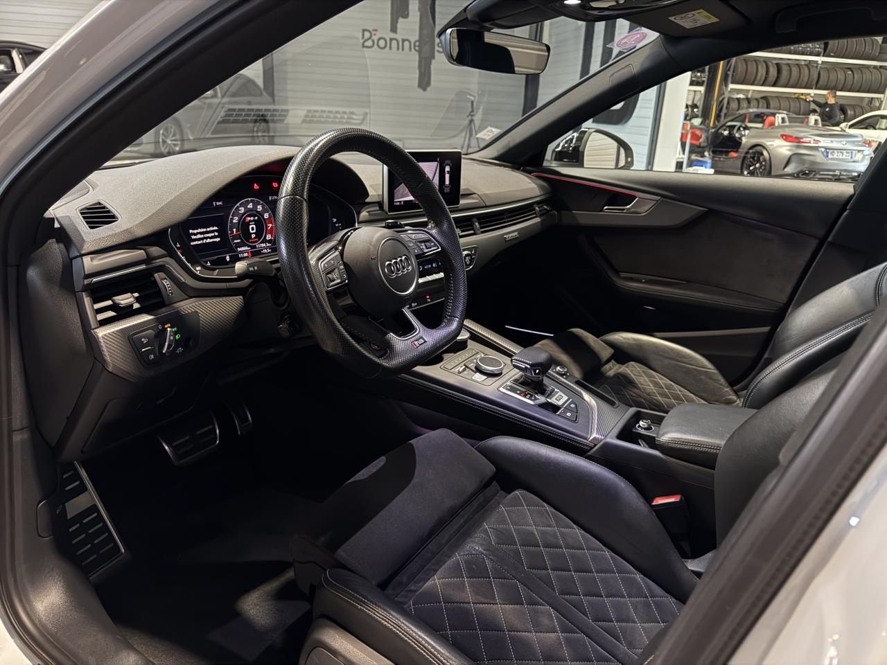 Nombreuses options : GPS, caméra de recul, Apple Carplay, radars avants et arrières de détection d'obstacles, échappement Sport RS incluant sonorité encore plus travaillée et sorties d’échappement noires ( 1 250 € ), Bang & Olufsen Sound System avec son en 3D ( 858 € ), clé confort et alarme antivol avec fonction safelock ( 483 € ), applications décoratives en Aluminium Racing anthracite ( 350 € ), assistant de feux de route avec activation et désactivation automatique des feux de route ( 158 € ), roue de secours temporaire pour vitesse maximale 80 km/h ( 125 € ), coques de rétroviseurs extérieurs en Noir brillant ( 108 € ), Audi Hold Assist maintient le véhicule à l’arrêt aussi bien en côte qu’en descente ( 83 € ), Audi Pre Sense AR incluant Audi Pre Sense Basic, Audi Side Assist, avertisseur de sortie du véhicule, Parking System Plus AV/AR, sellerie cuir/Alcantara avec surpiqûres contrastées et embossé RS, rampes de pavillon Noires, becquet AV, encadrement de la calandre, baguettes décoratives sur les vitres latérales et diffuseur AR en noir brillant, boîte à gants verrouillable, filet dans le logement gauche et sangles de serrage dans le coffre, filet de coffre, filet de rangement au dos des sièges AV, porte-boissons dans l’accoudoir central AR, vide-poches côté conducteur, ...